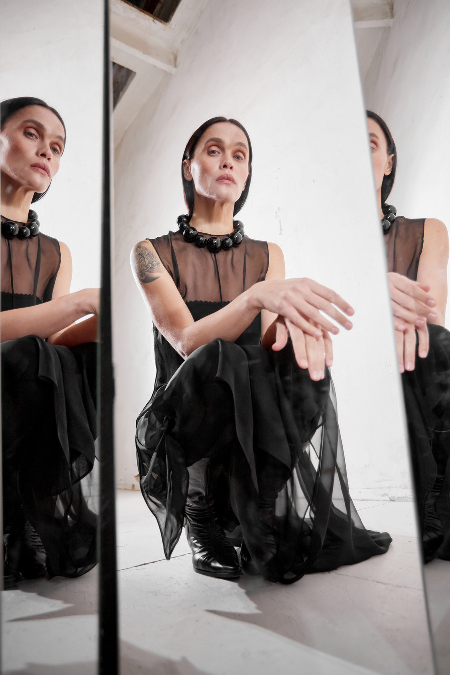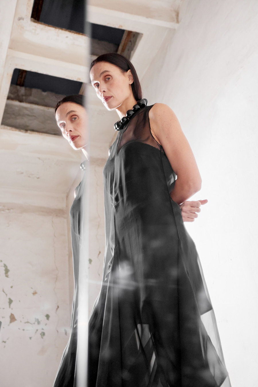 With grace and resilience at its core, TAMAR KEBURIA’s latest offering, “Reflections,” for the A/W 2425 season emerges as a powerful homage to the strength of contemporary Ukrainian women navigating turbulent times. In a landscape where hope intertwines with adversity, this collection resonates deeply, celebrating the unyielding spirit and empowerment of women striving for a brighter future.