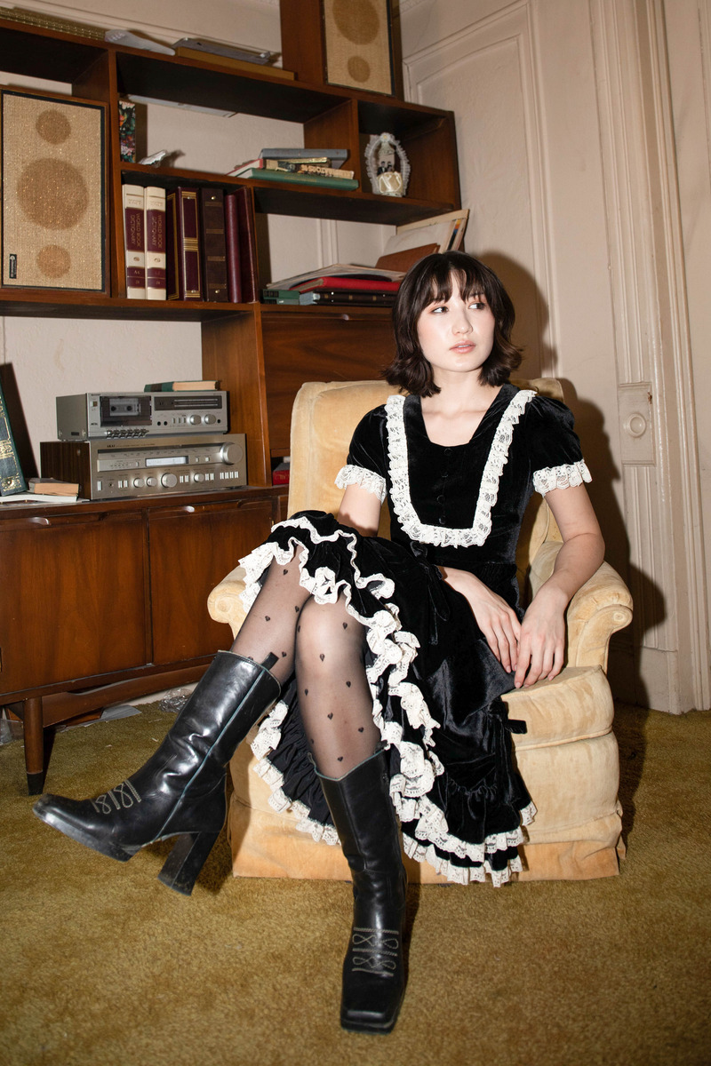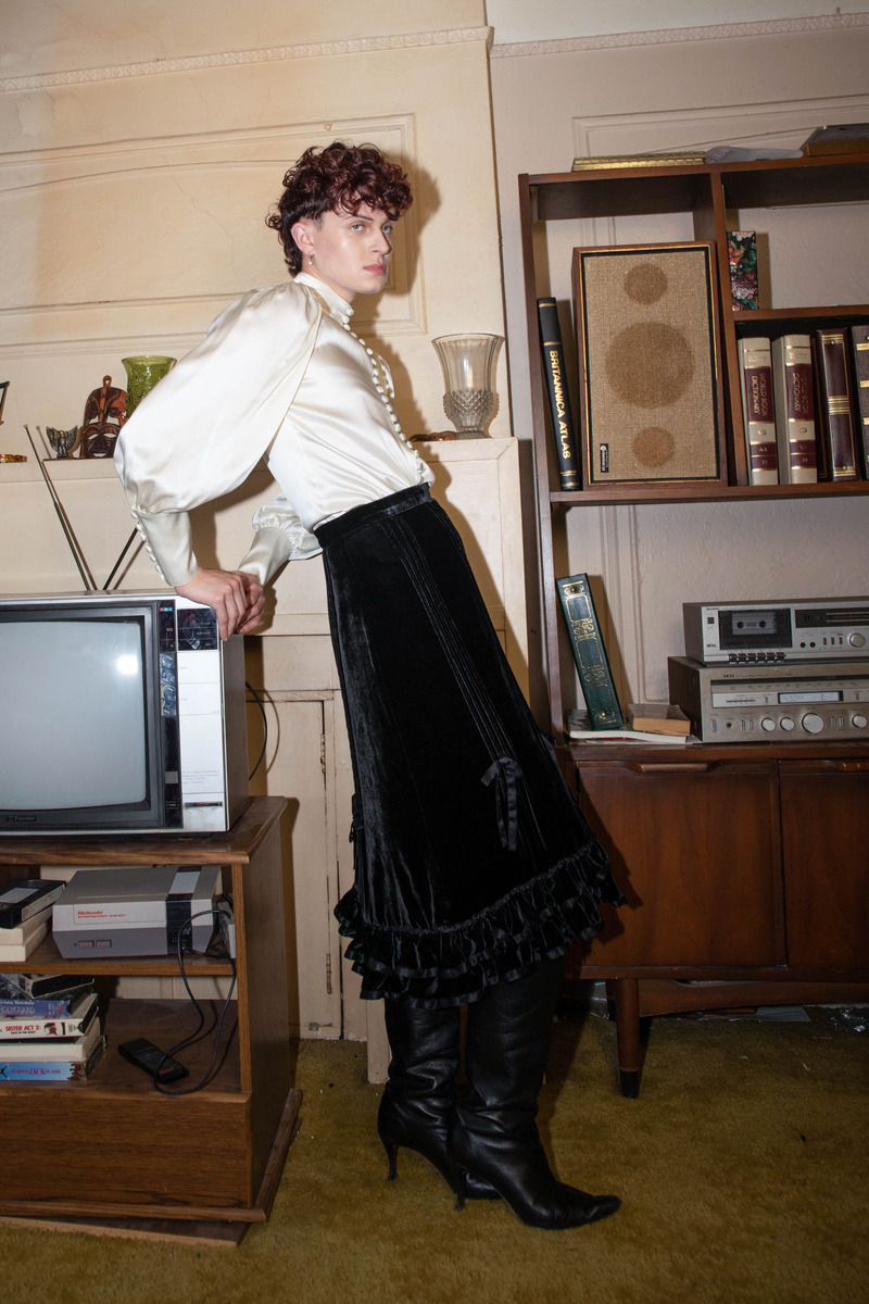 Always finding inspiration in nostalgia, Tanner Richie and Fletcher Kasell – the design duo behind the label, looked to two seemingly hard-to-juxtapose eras when creating the latest offering, seamlessly blending nods to the bold and daring styles of 90’s punk with the soft, beguiling aesthetics of the Victorian era.