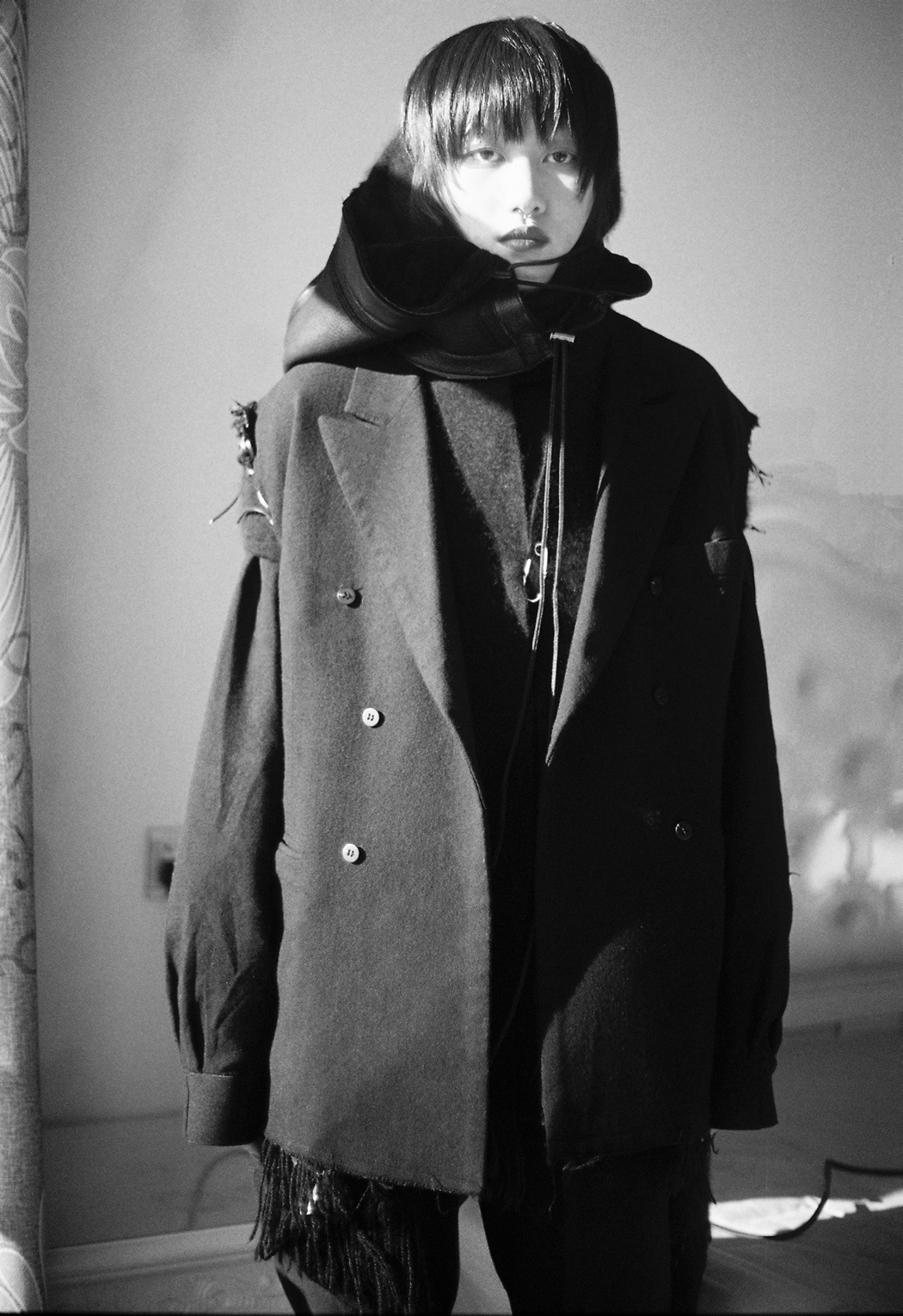 Shearling Jacket by Number (N)ine, pants by Yohji Yamamoto, boots by Saint Laurent, shearling tasseled hood by Object Occult. Calf skin bag by Object Occult Hat by Yohji Yamamoto, belt stylist’s own, jacket by Object Occult Hat by Yohji Yamamoto .”Heavy ballista” shearling/ wool coat by Object Occult, boots by Saint Laurent Full look by Object Occult, boots by Saint Laurent – Full look by Object Occult Shearling tasseled hood by Object Occult, wool hood by Object Occult Shearling jacket by Object Occult, Layered skirts by Yohji Yamamoto, boots by Saint Laurent