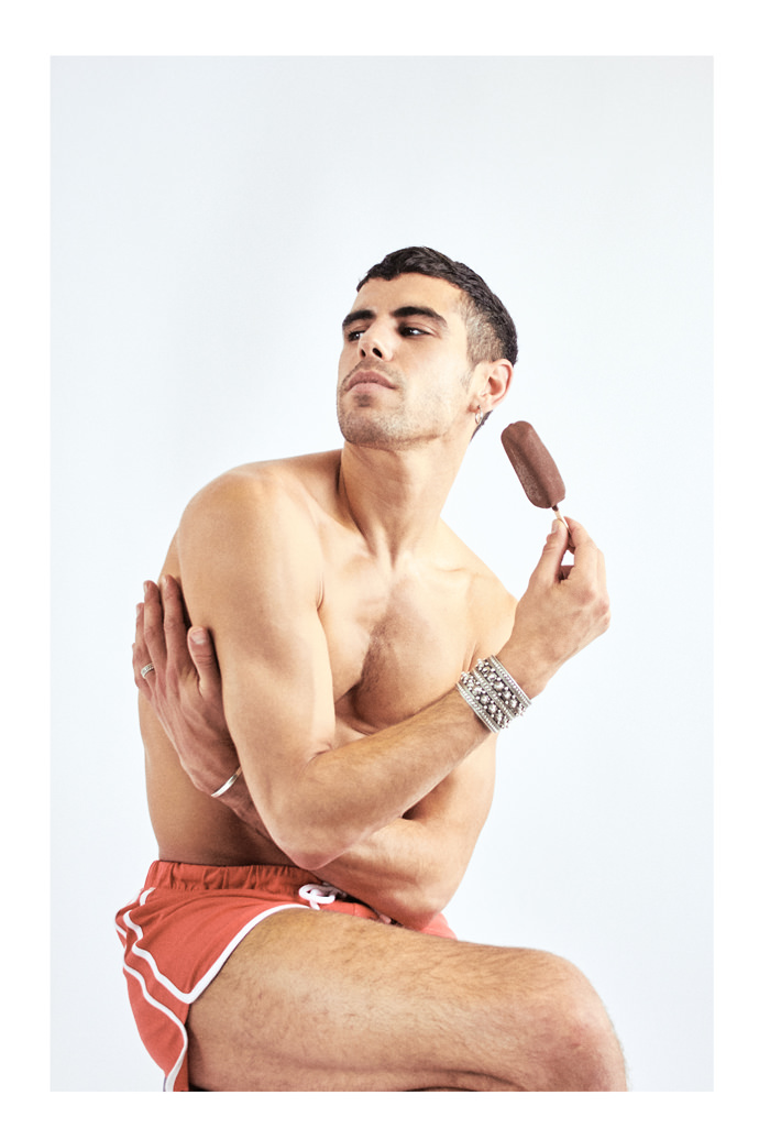 A KALTBLUT exclusive. This project is all about life : food, colors and skin. Issa Tall saw years ago a cover of Wad Magazine with a model’s butt edited into real cake. And for years, he just kept thinking about that picture and I wanted to do something like it and magnify the human body with food. All Tall could think about was model Valentin Seguin for this one. His body didn’t need any editing, and he just did justice to everything that was on her mind : colorful, sexy and raw. Tall teamed up with set designer Andreas Giesen and make-up artist Miguel Vaio.