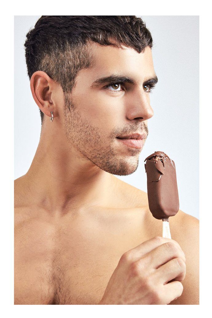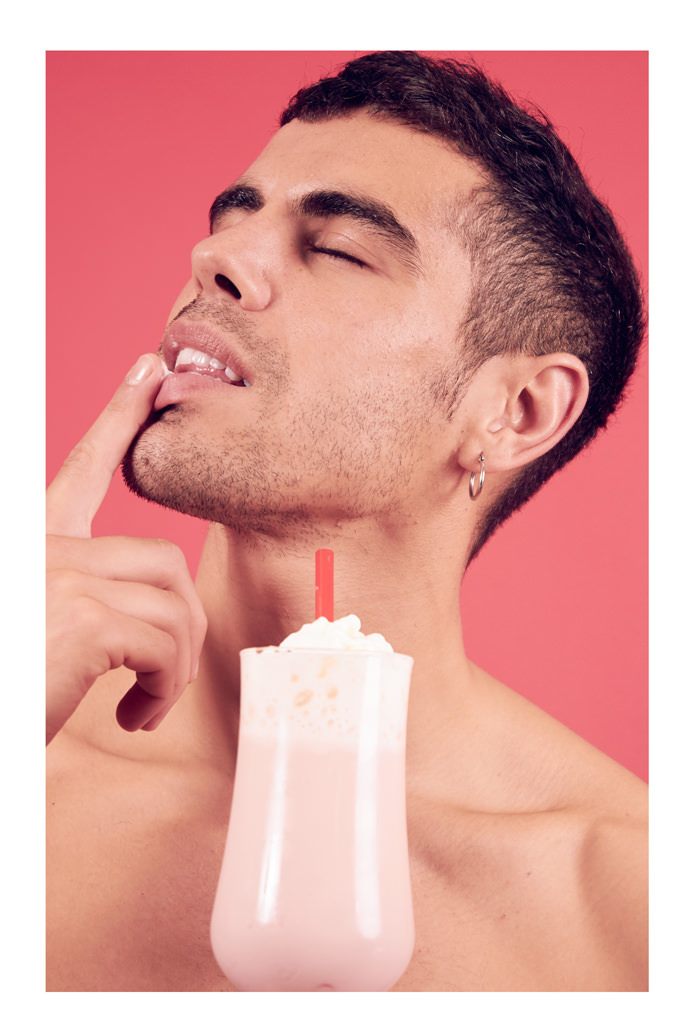 A KALTBLUT exclusive. This project is all about life : food, colors and skin. Issa Tall saw years ago a cover of Wad Magazine with a model’s butt edited into real cake. And for years, he just kept thinking about that picture and I wanted to do something like it and magnify the human body with food. All Tall could think about was model Valentin Seguin for this one. His body didn’t need any editing, and he just did justice to everything that was on her mind : colorful, sexy and raw. Tall teamed up with set designer Andreas Giesen and make-up artist Miguel Vaio.