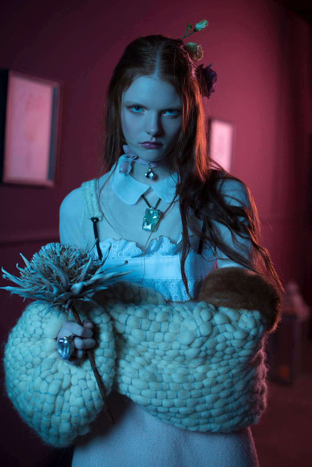 A KALTBLUT exclusive womenswear editorial. Photography and retouch by Ammy Berent. Styling and hair and make up by Simone Breu. Models are Sarah R. signed at Agency Talents Models GmbH and Mona signed at Most Wanted Models Munich. “The red walls, the beautiful red-haired fragile model, inspired us to transform her into a Red Light Diva. Our Editorial „Tell me that you love me“ is the story that, everybody wants to be loved by somebody. But… Love is a bitch!”