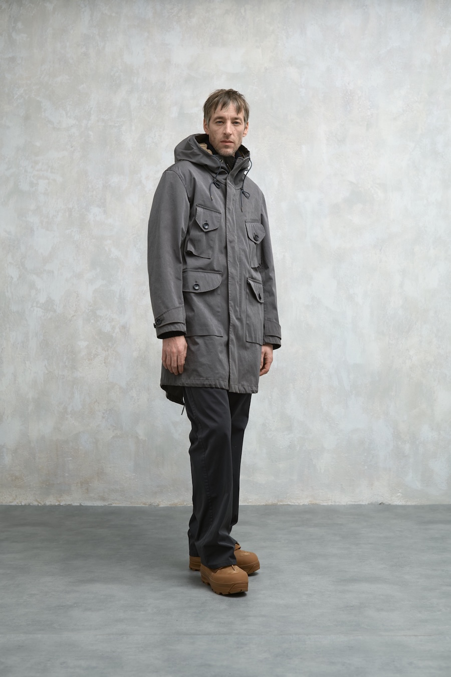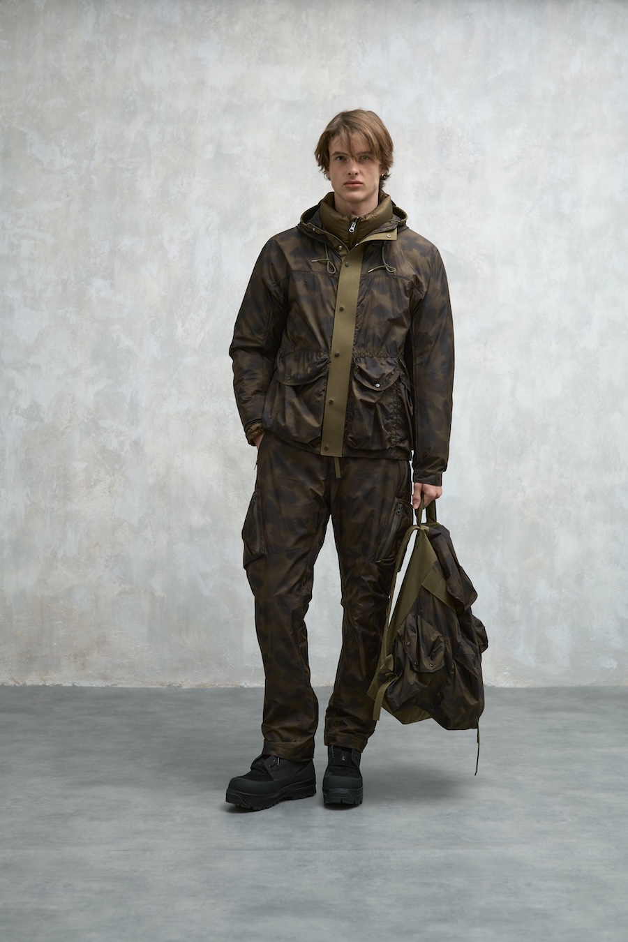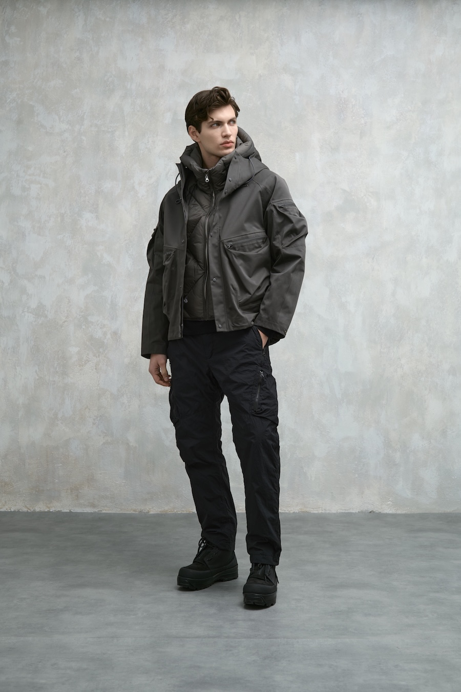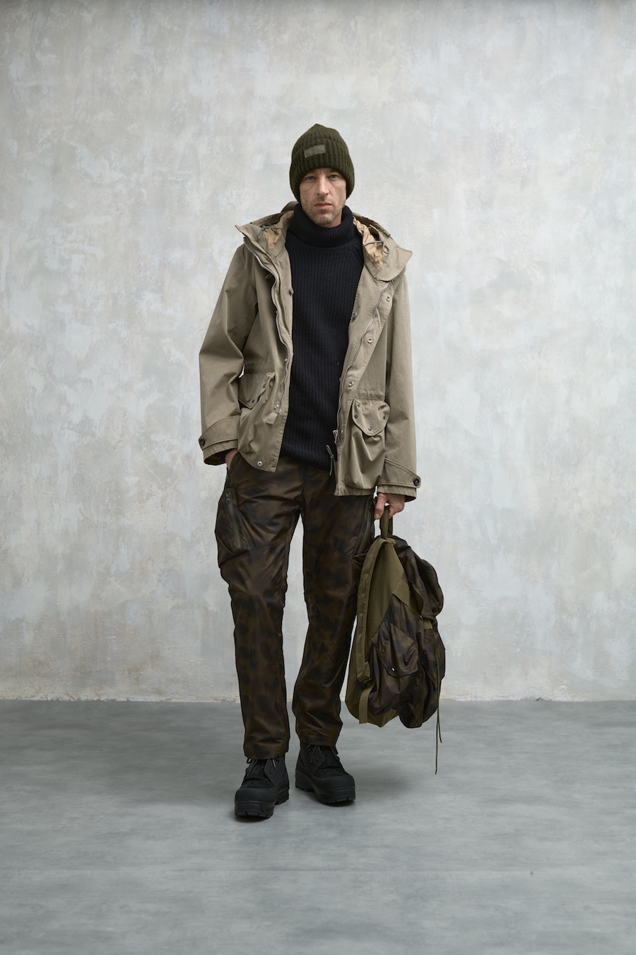 Returning as the signature piece is the Skye Ten Anorak, a symbol of the fusion between military tradition and urban interpretation. The new variants lean into technical fabrics, Primaloft insulation, and patterns inspired by urban structures, flooring, and architectural surfaces.