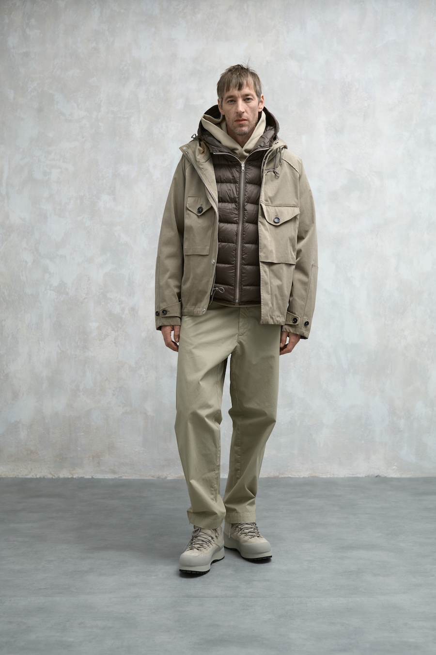 Under the title Urban Explorer, a fresh narrative emerges with colour stories featuring Bright White, Desert Sage, Asphalt Grey, and Matt Black—tones for those who wish to traverse the city quietly while uncovering its hidden spaces. Outerwear, mid-layers, trousers, and accessories mark the transition from technical heritage to urban present, where function becomes aesthetics, and materials find their own language through cut and colour. Two new puffer models in Nylon Crinkle Combo OJJ and piece-dyed Nylon Tactel have been developed specifically for this urban explorer line.