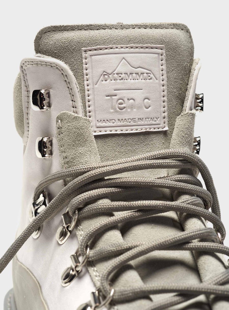 The partnership features a blend of materials and colourways true to the DNA of both brands. The tone-on-tone colour palette ranges from neutral shades of chalk and black to military green. Ten C’s OJJ fabric and a solid rubber edge make these hiking boots water-repellent and suitable for both city sidewalks and mountain terrain.