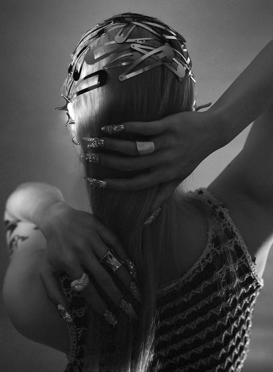 A KALTBLUT exclusive. Photography by Amanda Sheik. Creative Direction, Styling and Modelling by Talia Voon. Makeup by Aminat Bolaji. Nails by KiraKira Nails. Brands used are [‘nju]: The Sophist, Helmut Lang, GUMDesignStore and Amber Pickup. Beauty and Hair brands used are Charlotte Tilbury, Huda Beauty, Danessa Myricks and Indola UK.