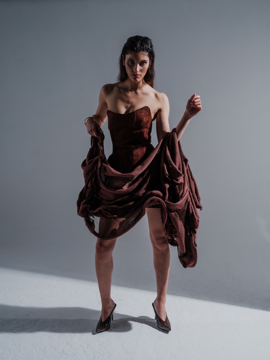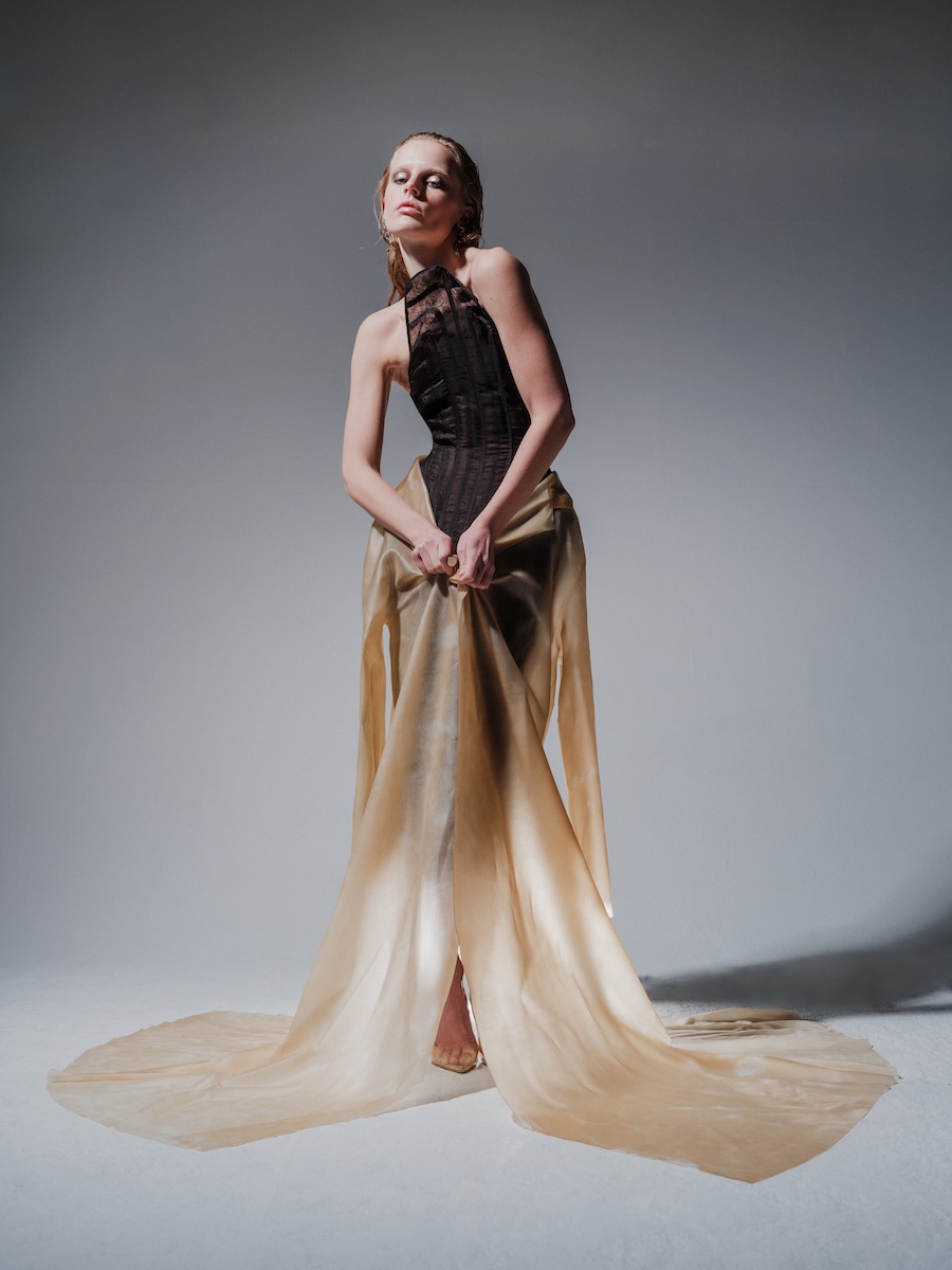 Yannik Mantel is a Berlin-based fashion designer. Having recently obtained his bachelor’s degree, his work focuses on structured garments rooted in tailoring and corsetry. By combining these with unconventional materials, he creates contemporary pieces defined by sculptural silhouettes. Through an ongoing exploration of techniques and craftsmanship, he translates conceptual ideas into material-driven forms.