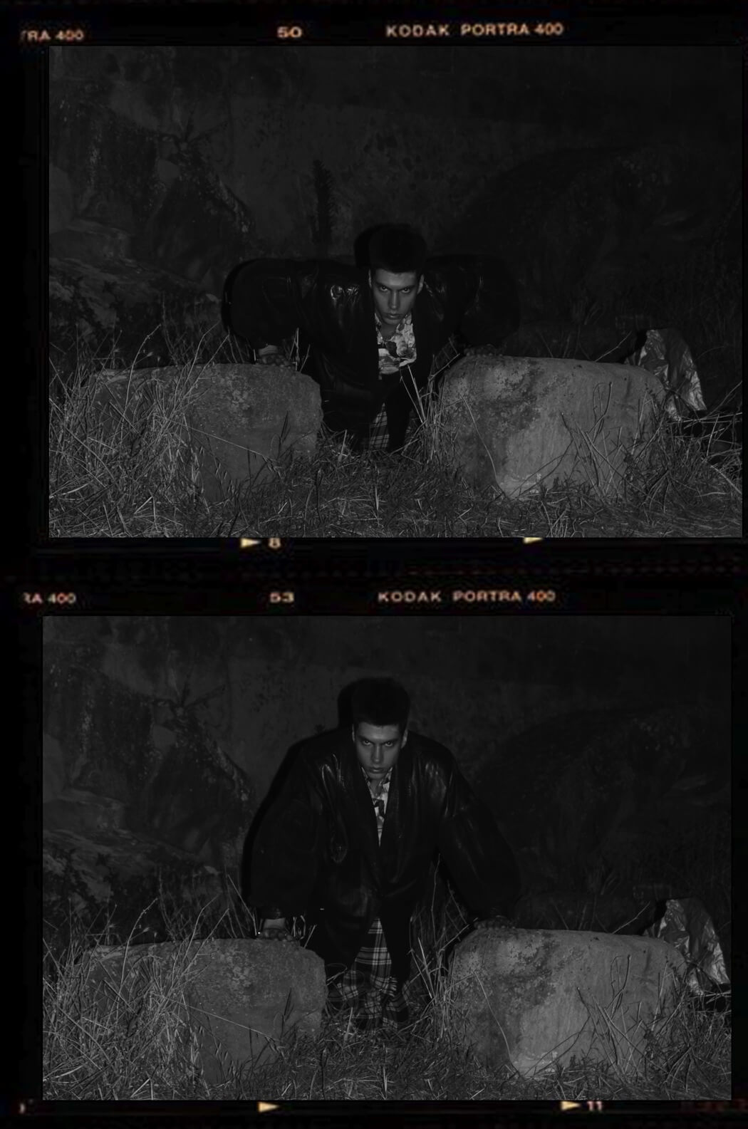 A KALTBLUT exclusive. Photographer Vitalija Baranukova captured Sebastian Palacios Ganoza. Styling by Elena Mustafina. “I’m model and photographer from Czech Republic. Currently I live in Rome in Italy. It’s my 5th project in this year, and this time I wanted to use a lot of green in this editorial and use amazing forests, which there are a lot in Rome. Together with Alena Mustafina and Sebastian Palacios we combined vintage fashion and currant designers for completing the atmosphere of 80s.” says Vitalija Baranukova.