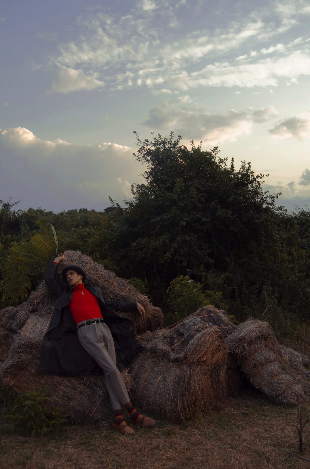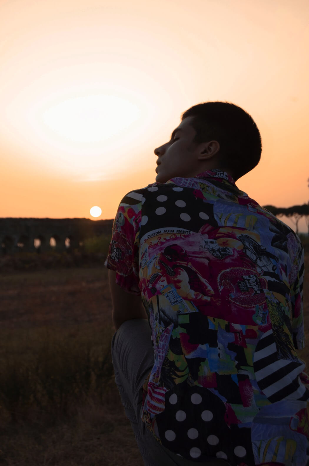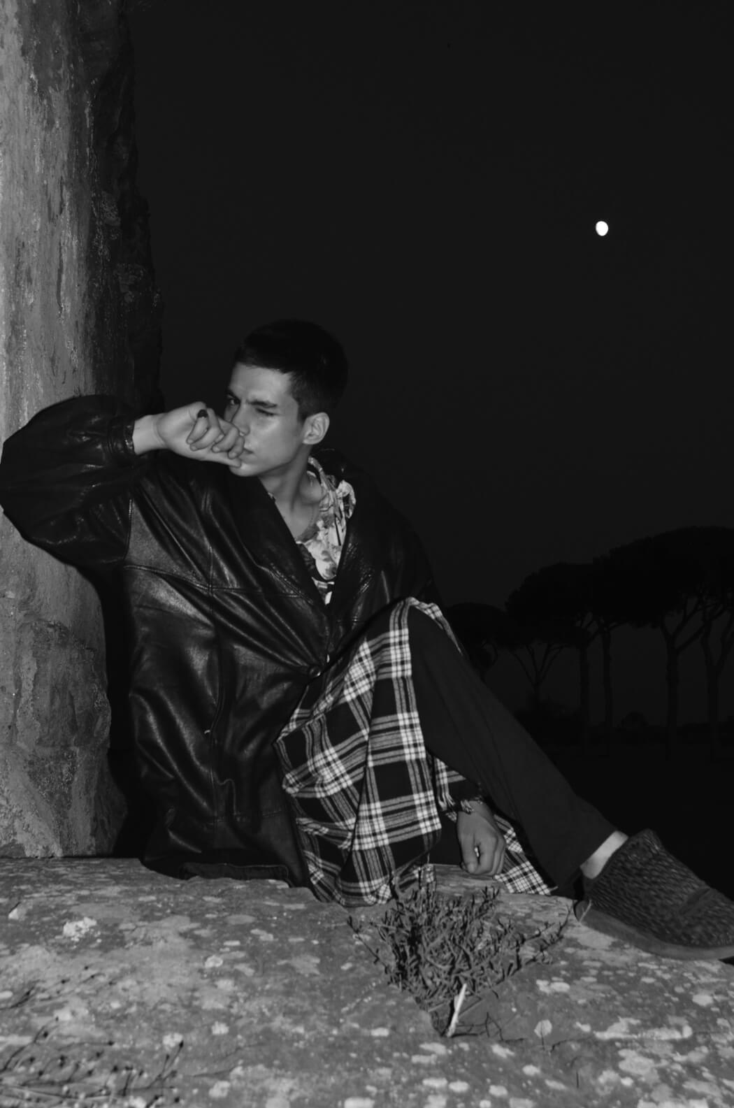 A KALTBLUT exclusive. Photographer Vitalija Baranukova captured Sebastian Palacios Ganoza. Styling by Elena Mustafina. “I’m model and photographer from Czech Republic. Currently I live in Rome in Italy. It’s my 5th project in this year, and this time I wanted to use a lot of green in this editorial and use amazing forests, which there are a lot in Rome. Together with Alena Mustafina and Sebastian Palacios we combined vintage fashion and currant designers for completing the atmosphere of 80s.” says Vitalija Baranukova.