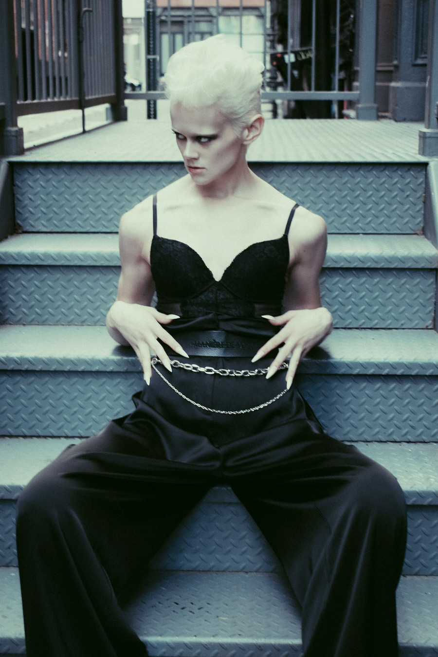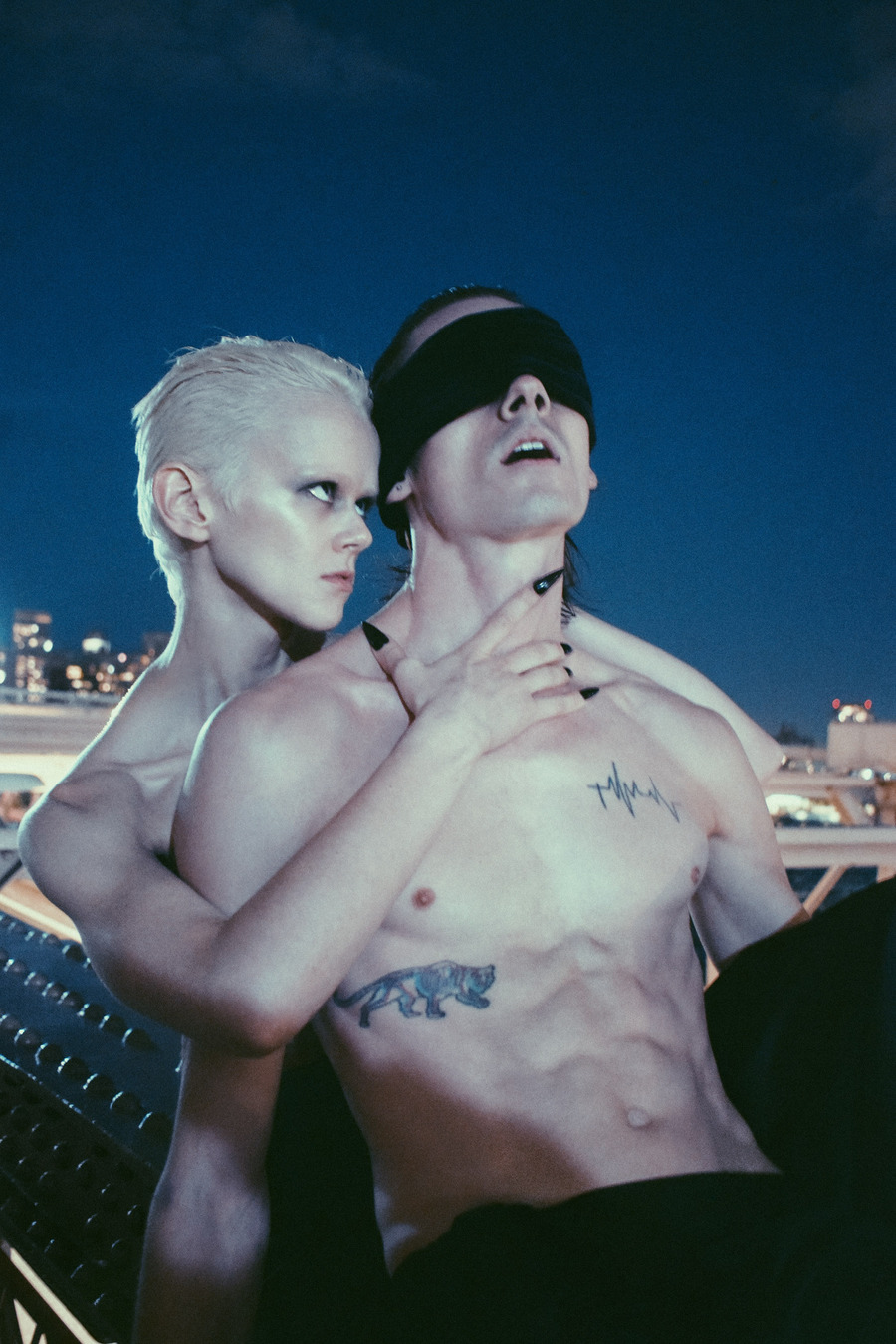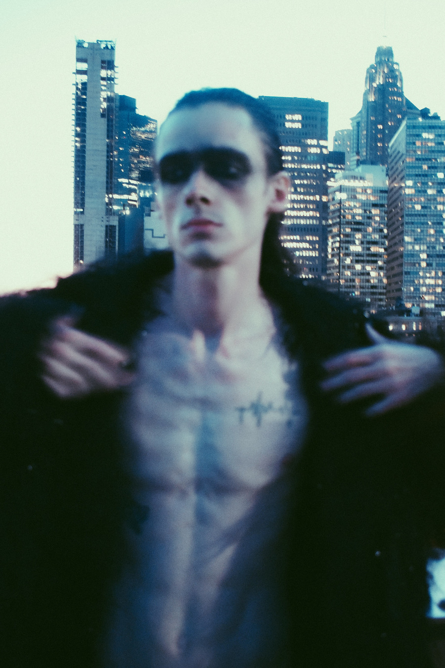 A KALTBLUT exclusive. Photography by Elys Berroteran. Models are Evan Slack and Rio. It is well known that Gotham City is inspired by New York City, so for this season, we have brought the story of a real Young Batman touring the city together with Catwoman, giving it a realistic and dark twist. Rio and Evans show us the connection and the love-hate relationship that these characters have in the comics.