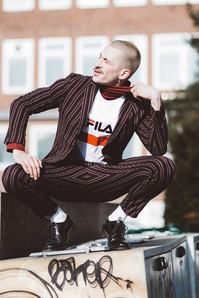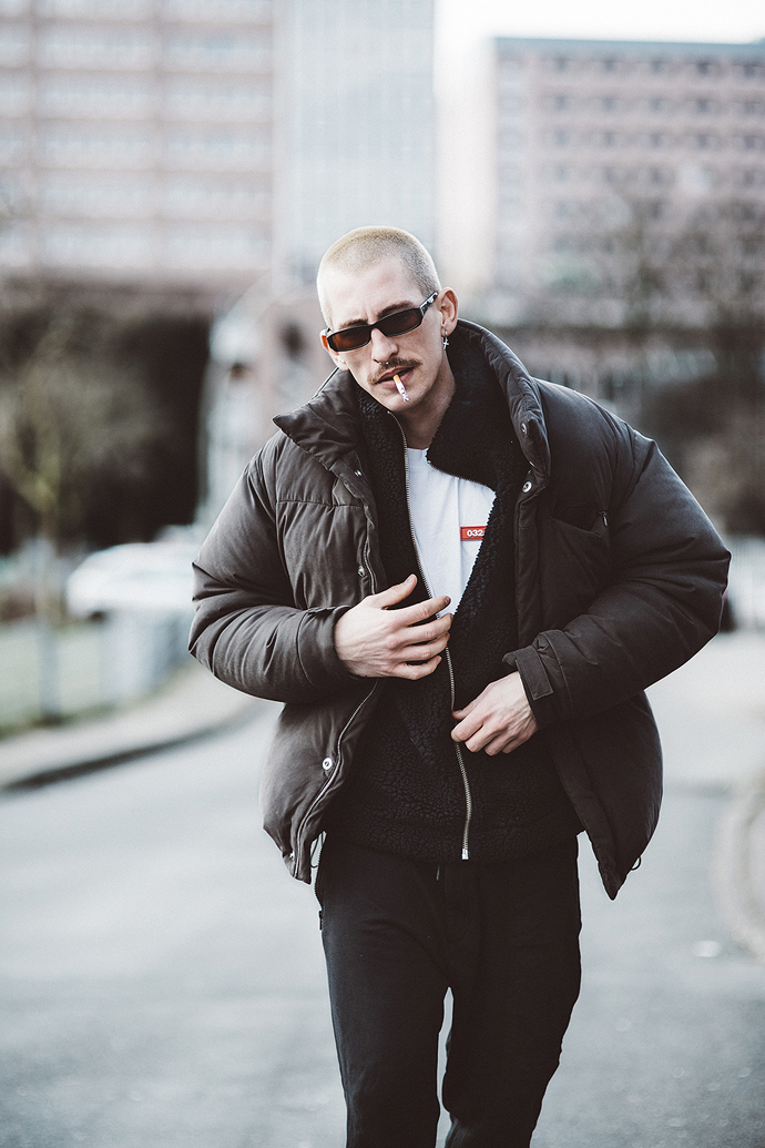 A KALTBLUT exclusive menswear editorial. Photography by Jennifer Harnack. Male model is Jannik Scharmweber signed to M4Models. THE BOY NEXT DOOR is styled by Martina Wrobel. Fashion by Weekday, Fila, Zara, Supreme, Acne Studios, 032c, COS just to name a few.