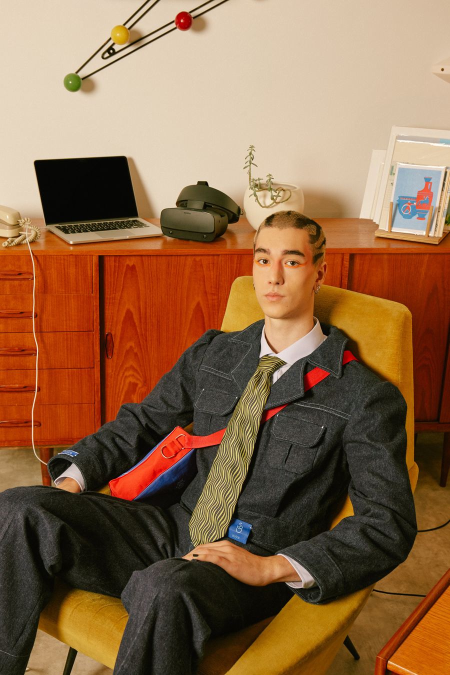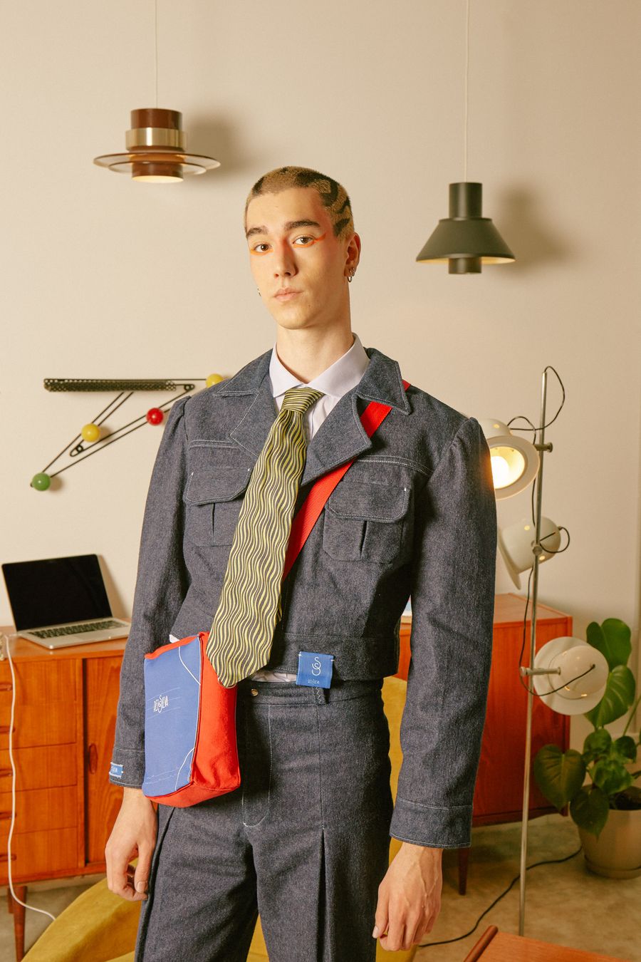 This particular collection is inspired by the pockets of the military uniform and the office uniform and seeks to represent from a sarcastic point of view the telework that many people have had to do from home during the pandemic.