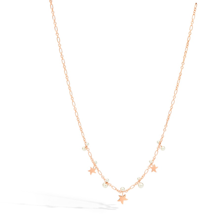 All the jewellery pieces in the collection, made of 9-karat rose gold, play with delicate crystal beads, thin chains and iconic asterisks, focused on a determined and sympathetic without abandoning its feminine and romantic style, Stellina interprets the classic pearls in a more contemporary and fashionable context and in a typically DoDo way.