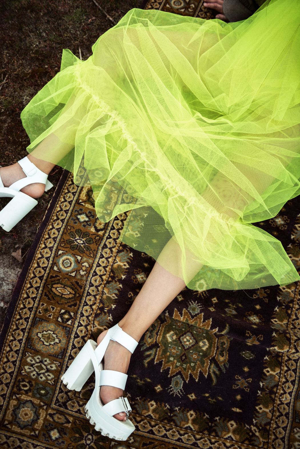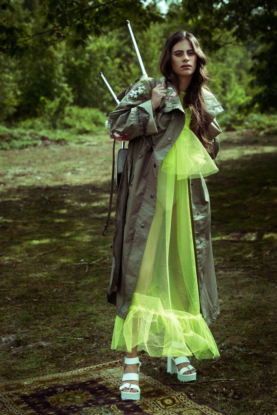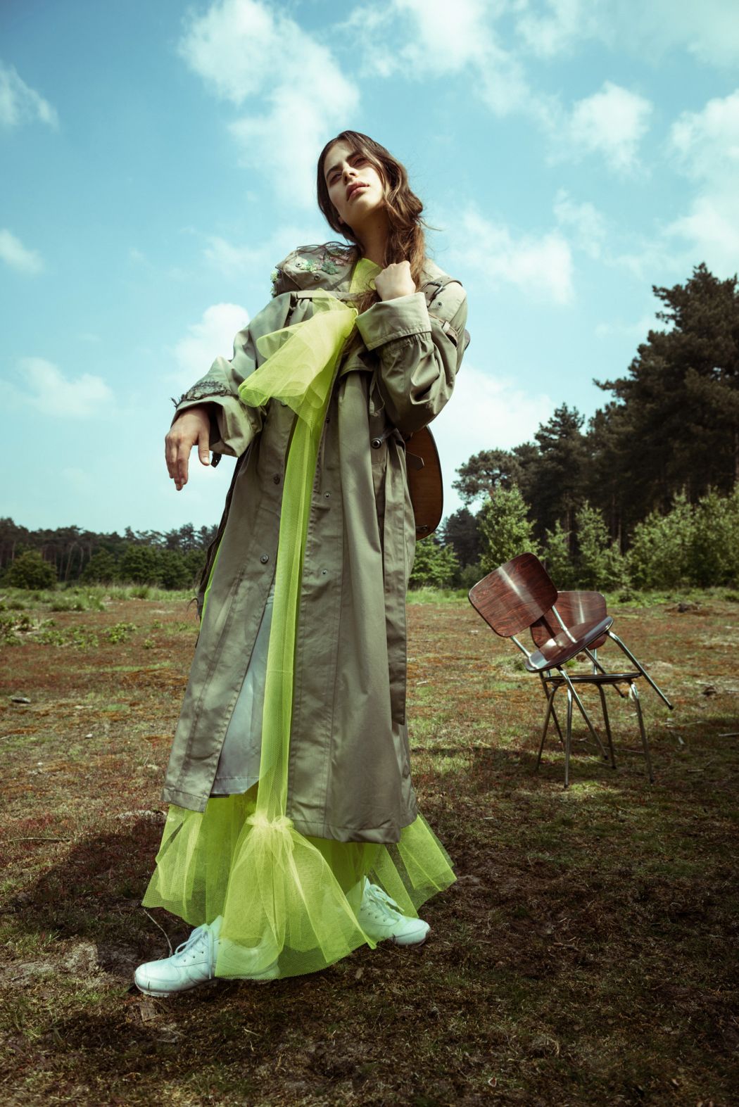A KALTBLUT exclusive womenswear editorial. Photography by Lieven Gouwy. Model is Sara Goelen signed at The Agent. Make up by Dorothy Vandemaele. Styling by Julie Vanelderen. Dress by Atelier Covered 2nd hand coat customized by Atelier Covered. Shoes by New Look.