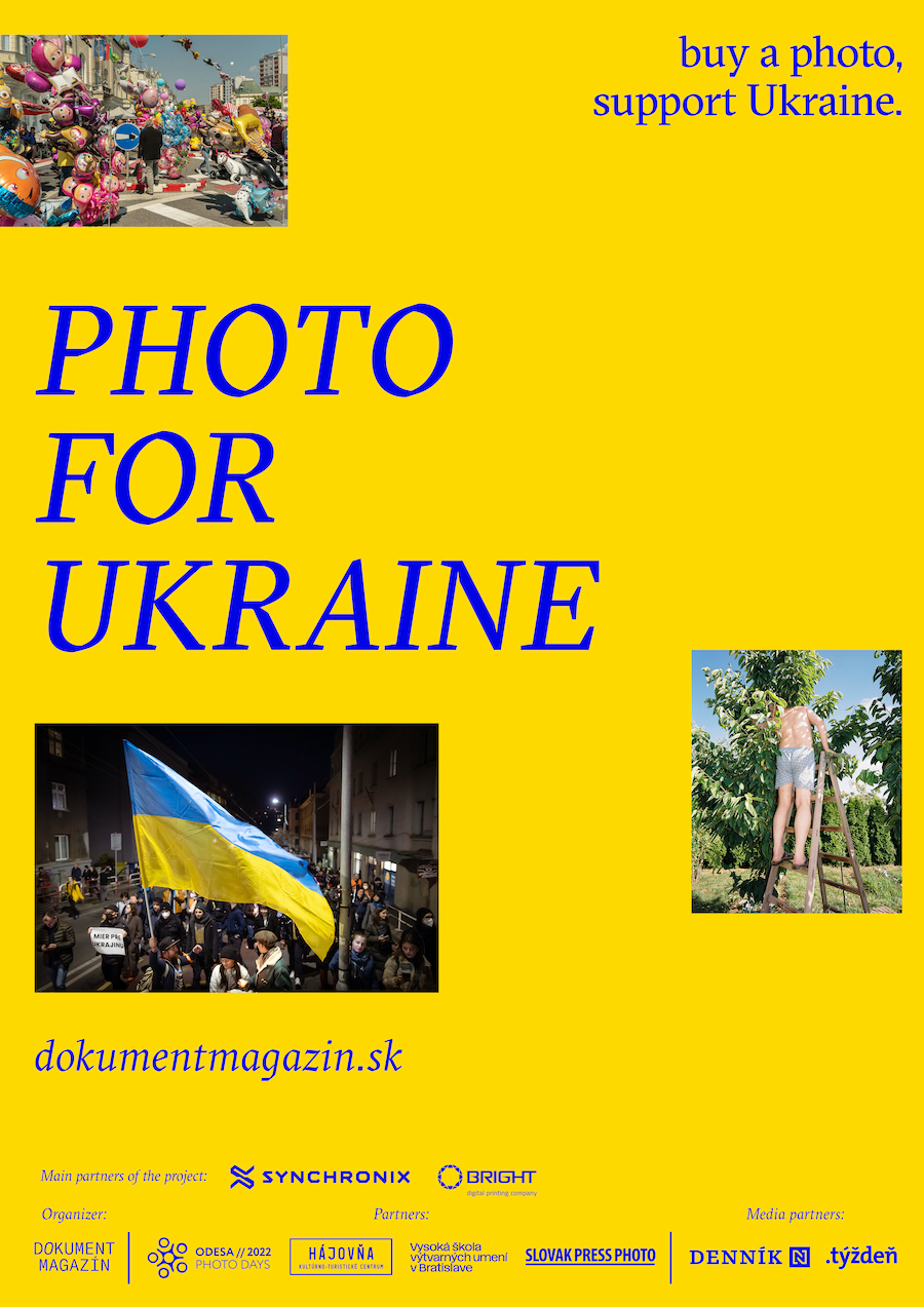 The charity sale of Slovak and Ukrainian photography ”Photo for Ukraine” continues online until May 1, 2022. The Slovak online magazine Dokument in cooperation with the international festival of contemporary photography Odesa Photo Days has started the project ”Photography for Ukraine” — the charity sale of Slovak and Ukrainian photography. The project is mainly aimed at supporting photographers, artists and the cultural scene in Ukraine. More than 30 artists from Slovakia and Ukraine participated and provided their photographs for sale.