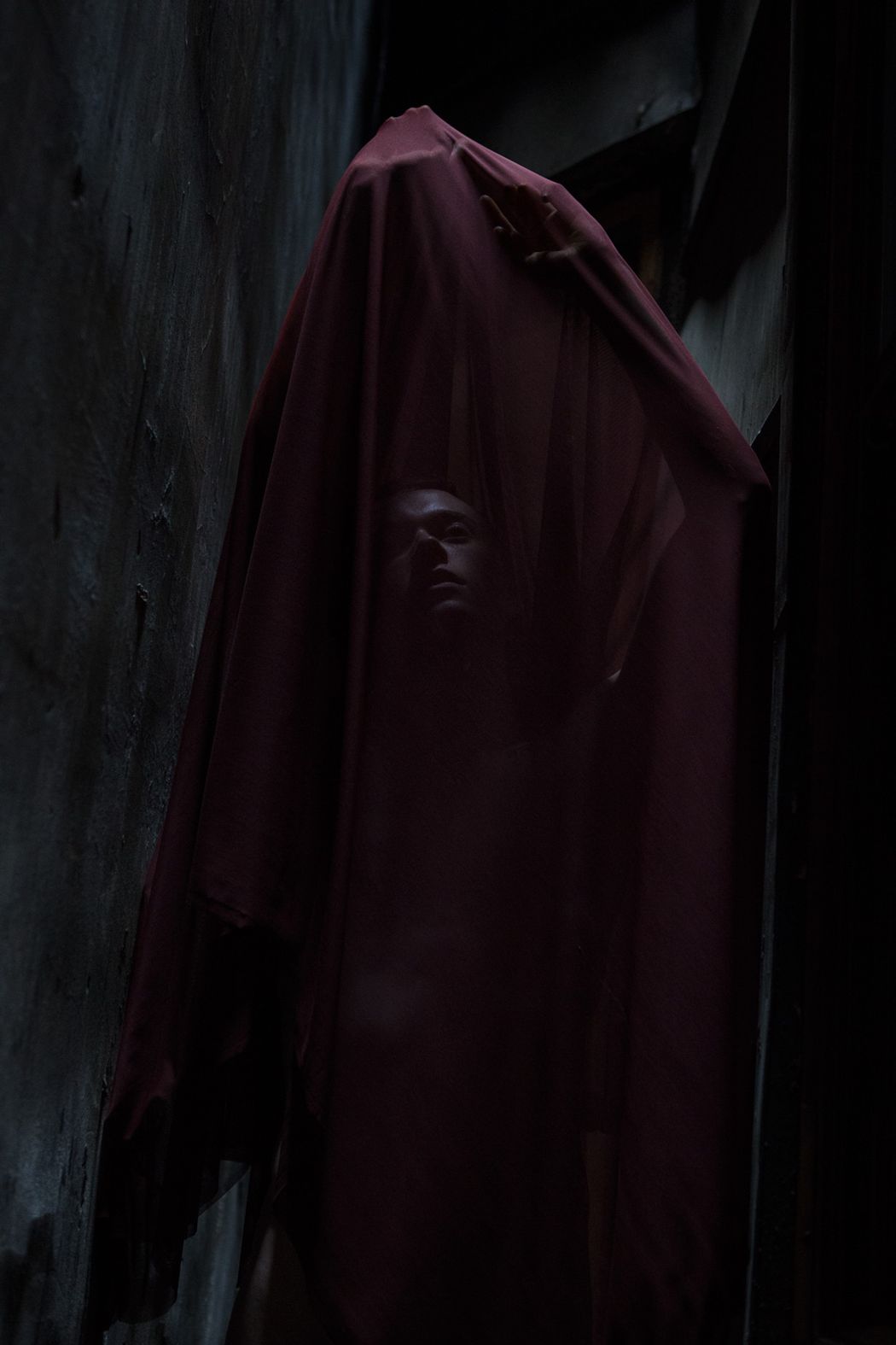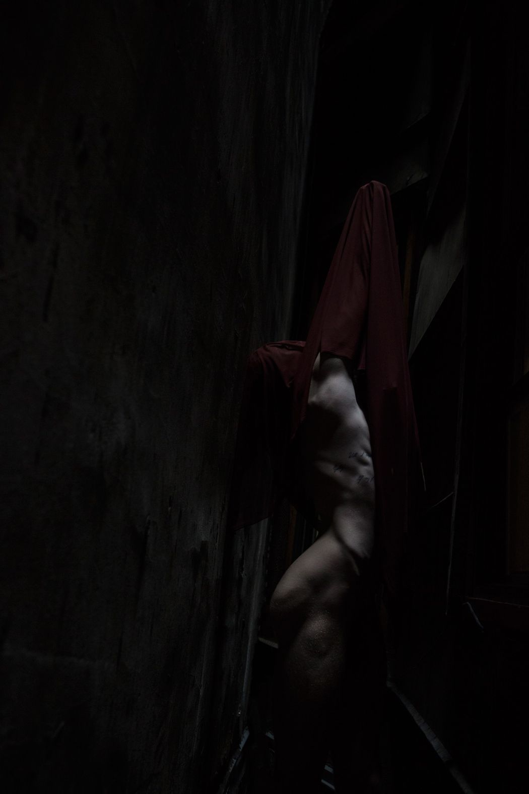 A KALTBLUT exclusive male model feature. Photography by Ross Collab. Model is Ty. “I’m a Brooklyn-based artist. Photography is my main sauce right now. I’m also currently exploring performance art, drawing, painting, and clothing design. All of my work is an extension of myself, unapologetic and free. I create to inspire others, to shape culture, and to voice all that is going on inside of my mind and my heart. I was at my subject’s home, where I was to capture a simple portrait for an upcoming project I’m working on. After we nailed the portrait we were talking about playing in some fashions. He said to me, “You’re welcome to look in my closet for clothes.” I turned toward the closet and reached out my hand to move the red piece of fabric that was hanging between me and the clothing-filled shelves. Within seconds my fingers had sent a message to my brain, I had found “it.” The curtain that hung, separating all of his beautiful clothes from the rest of his room, was in itself, beautiful. It was a deep, rich, red. It was neither too thin nor too thick, and could stretch just slightly. You could see through it at times. It was mesmerizing, my hands drawn towards it.” says Ross!
