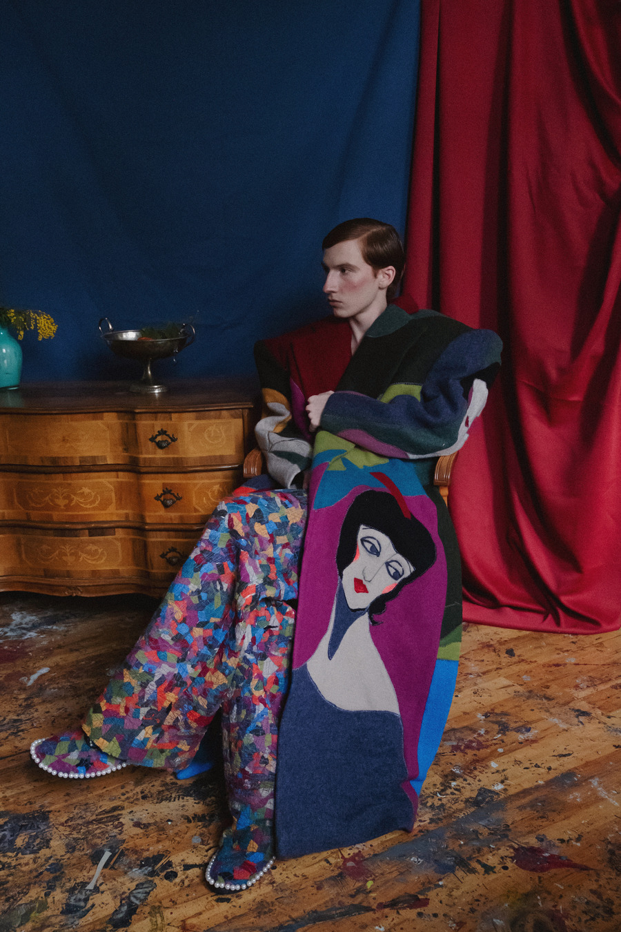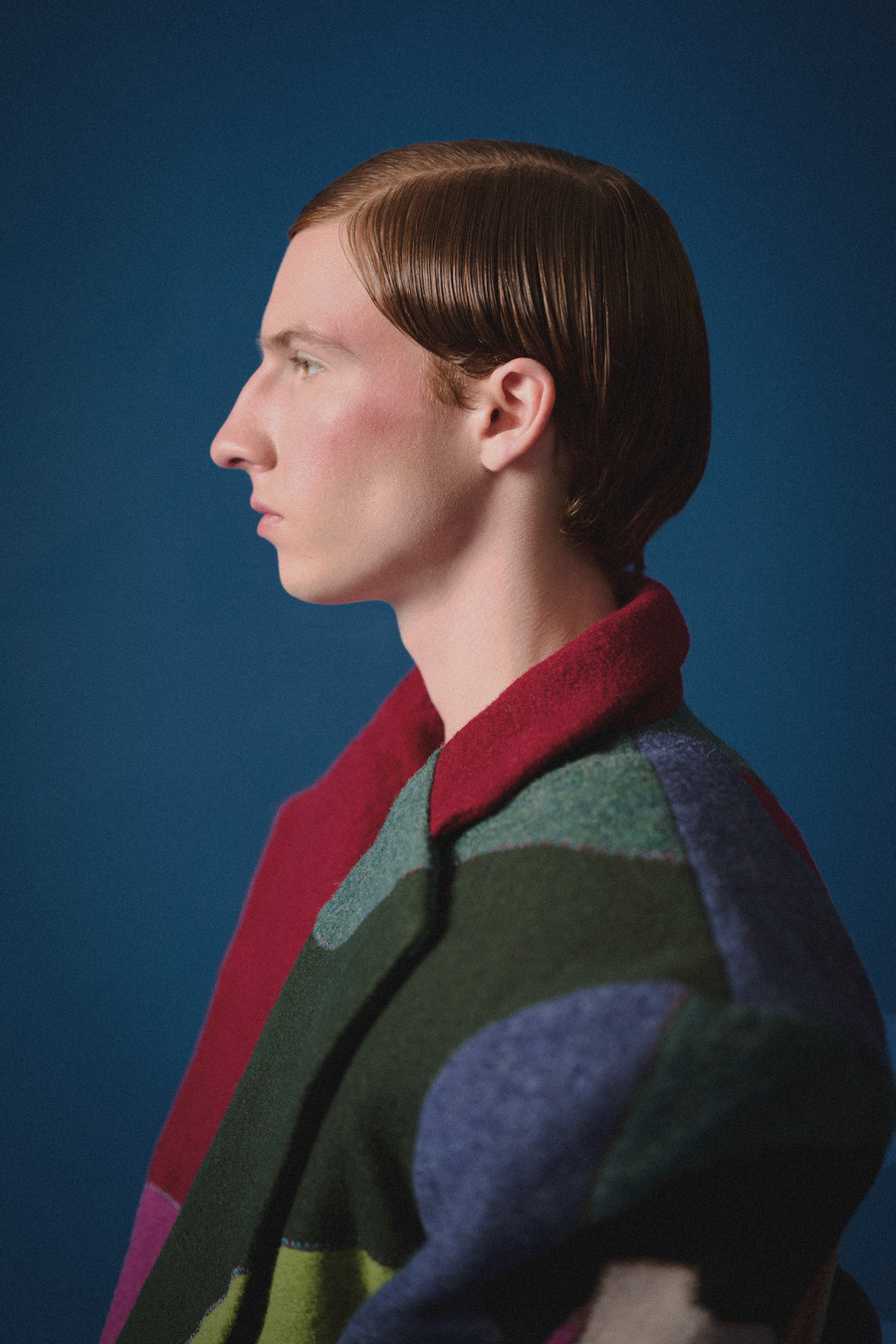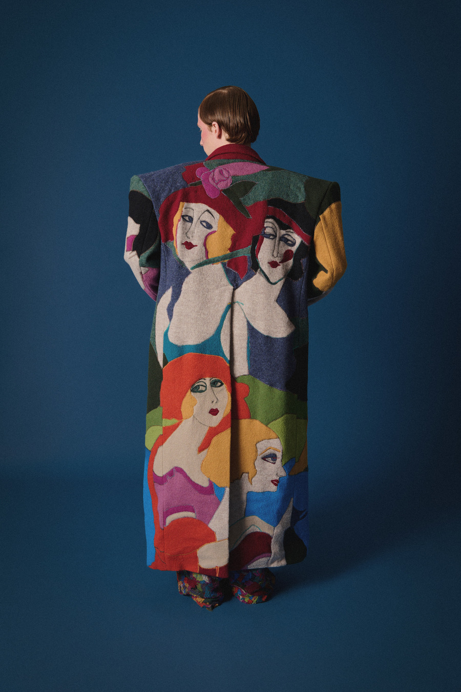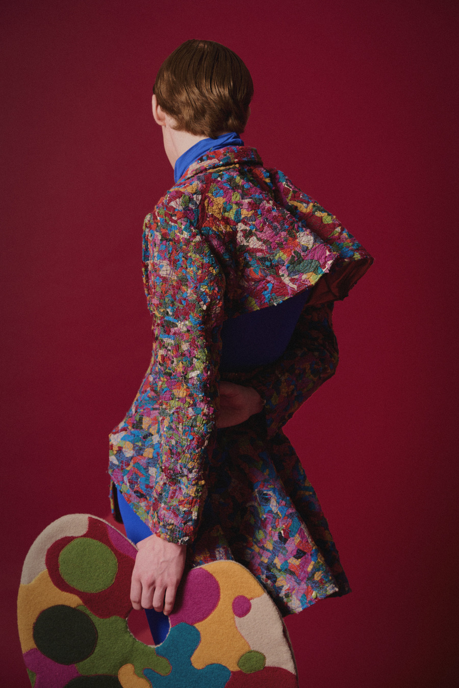 What makes Enkhbat’s collection extraordinarily captivating is her commitment to sustainability — a principle she integrates into every stitch and seam of her designs. “My collection is 100% sustainable, with no waste,” she states with pride. By leveraging Woolmark-certified materials for her intricate patchwork designs and repurposing every scrap of fabric and thread into her second looks, she infuses life into the very essence of upcycling.