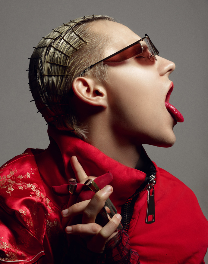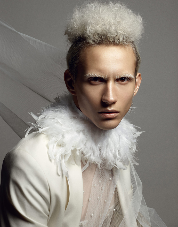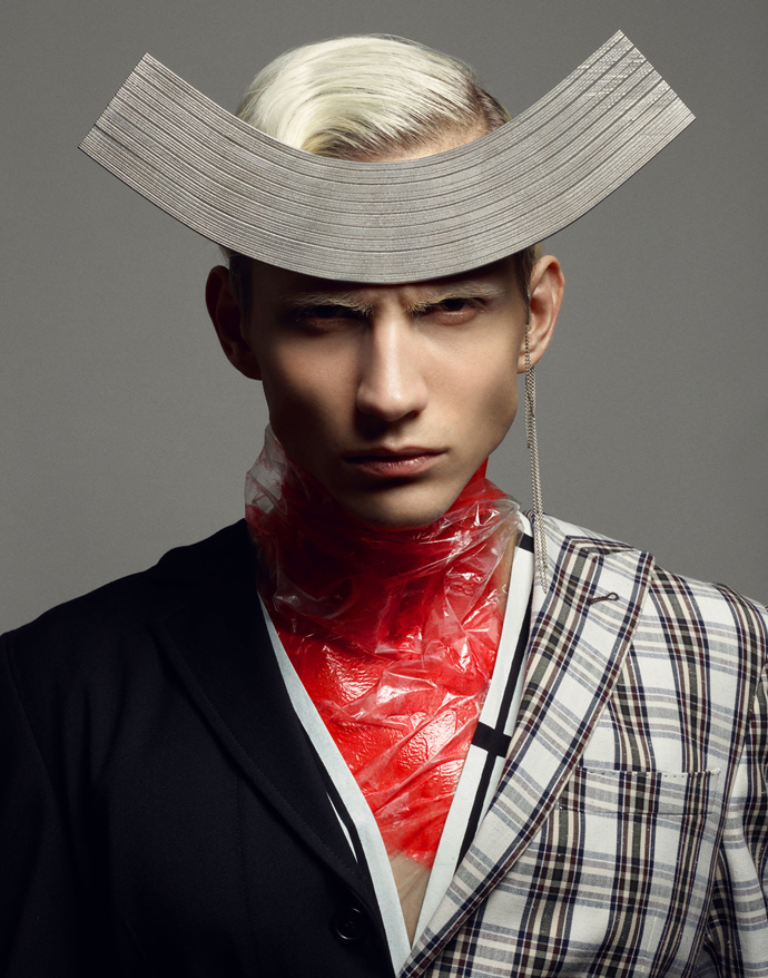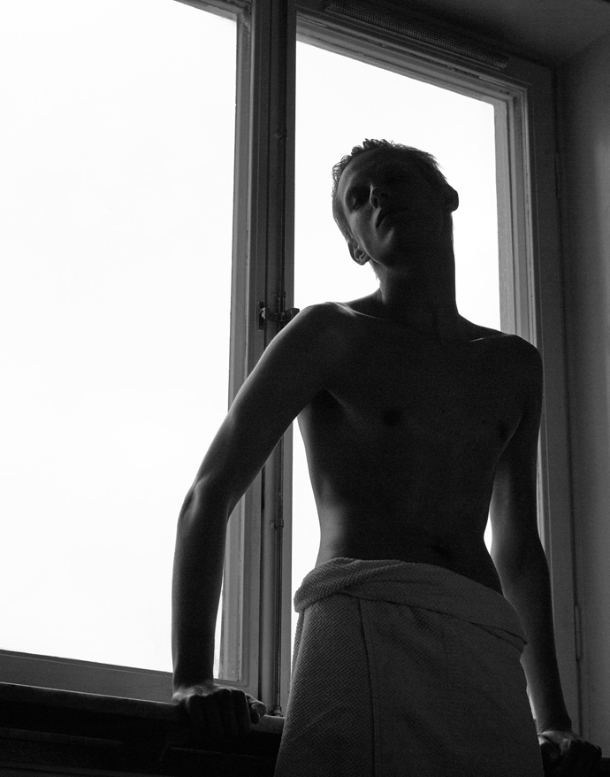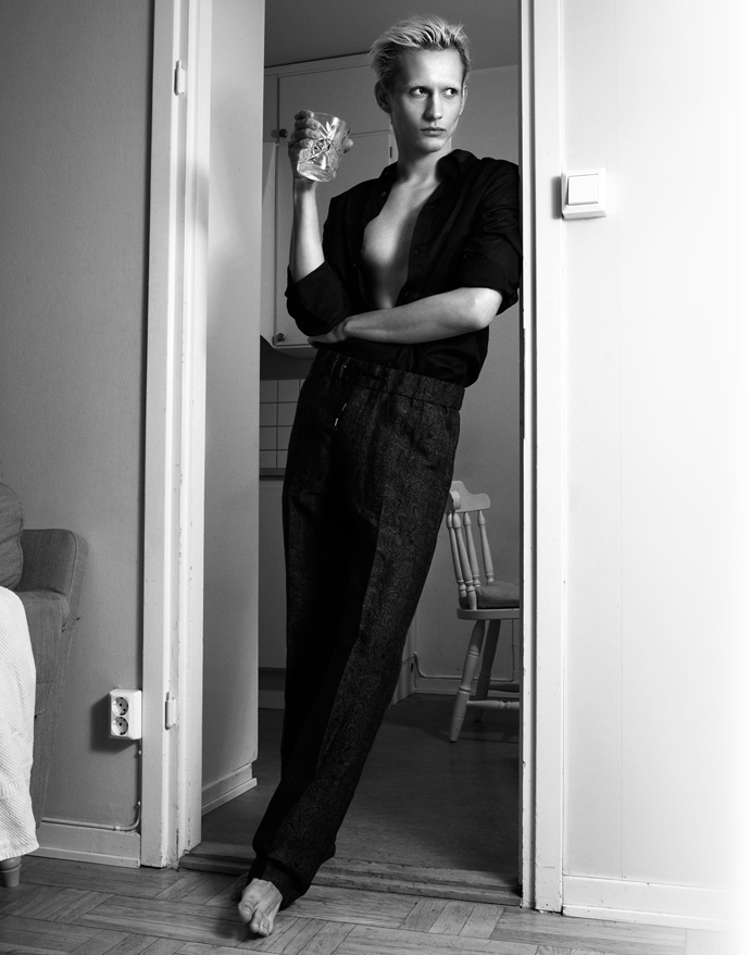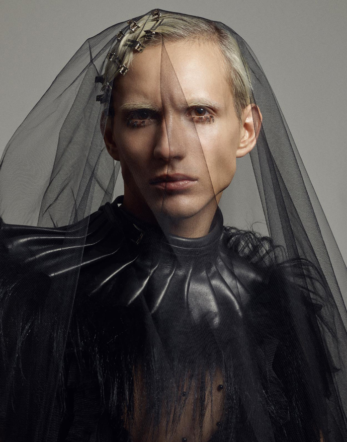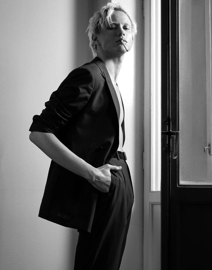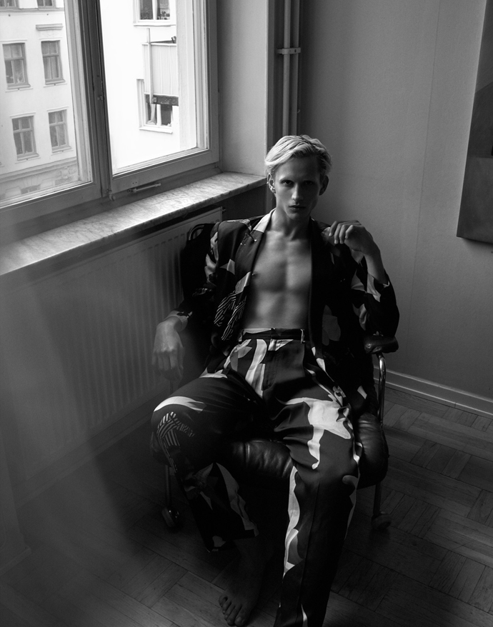 A KALTBLUT exclusive menswear editorial. Photography by Kari Jay, a photographer based in Stockholm, Sweden. Model is Dani Kurdyavtsev @Stockholmsgruppen. Styled by Sandra Ekenstam and make-up and hair by Elvira Brandt. The clothing and accessories used are from spring and summer collections of mostly Scandinavian designers. “The story behind the pictures is about a ‘day after’ a party and it’s split into two visual styles – location black and white fashion photos and studio hair /makeup/accessory photos that are more theatrical. This is meant to illustrate how he is seen on the outside (part 1) and how he feels on the inside (part 2). We’d like to illustrate feelings such of confusion, disintegration, ache, anger, and whatever happens after your mind just goes wild of lack of sleep and too much of everything.” says Kari Jay.
