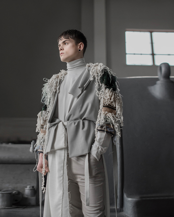 Styled by former creative head of menswear label AXY, Dora Adomaviciute, the editorial outfits pluck inspiration out of various sources that range from Saint-Exupéry’s The Little Prince to badass attitudes of Die Antwoord, to a simple and raw street style. The unusual Sunday’s photo-shoot at the museum brings 5 disheveled yet classy outfits by fresh Lithuanian creative forces: designers Liucija Kvasyte, Mantas Bartkus Lukas Juodis, Zivile Aleknaviciute, and a menswear label AXY Origin.