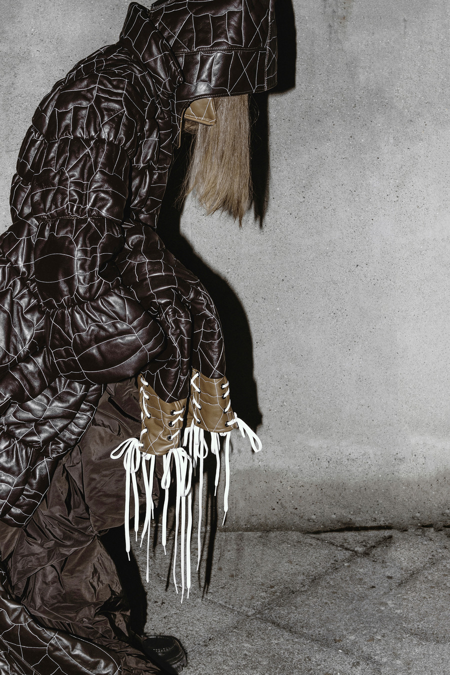 Like a hero of a dystopian world who escapes elsewhere. For the video and the sound of it, Thiella takes inspiration from the traditional Sardinian mask called MAMUTHONES, anthropomorphic figures dressed in skins (like the collection of DI GIULIO) who move in village processions ringing cowbells, used in the video.
