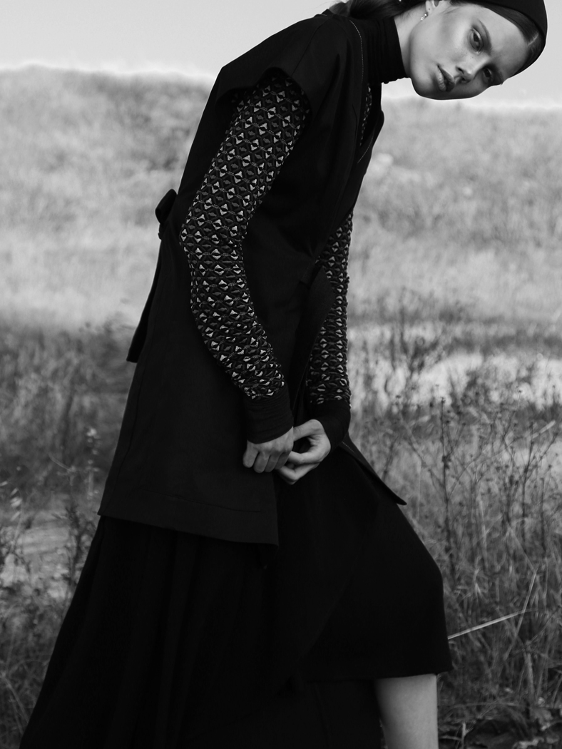 A KALTBLUT exclusive womenswear editorial. Photography by Labros Tyrlis. Clothes by Yiorgos Eleftheriades. Model is Miida signed at VN Model Management. Makeup by Zacharenia Kanataki.