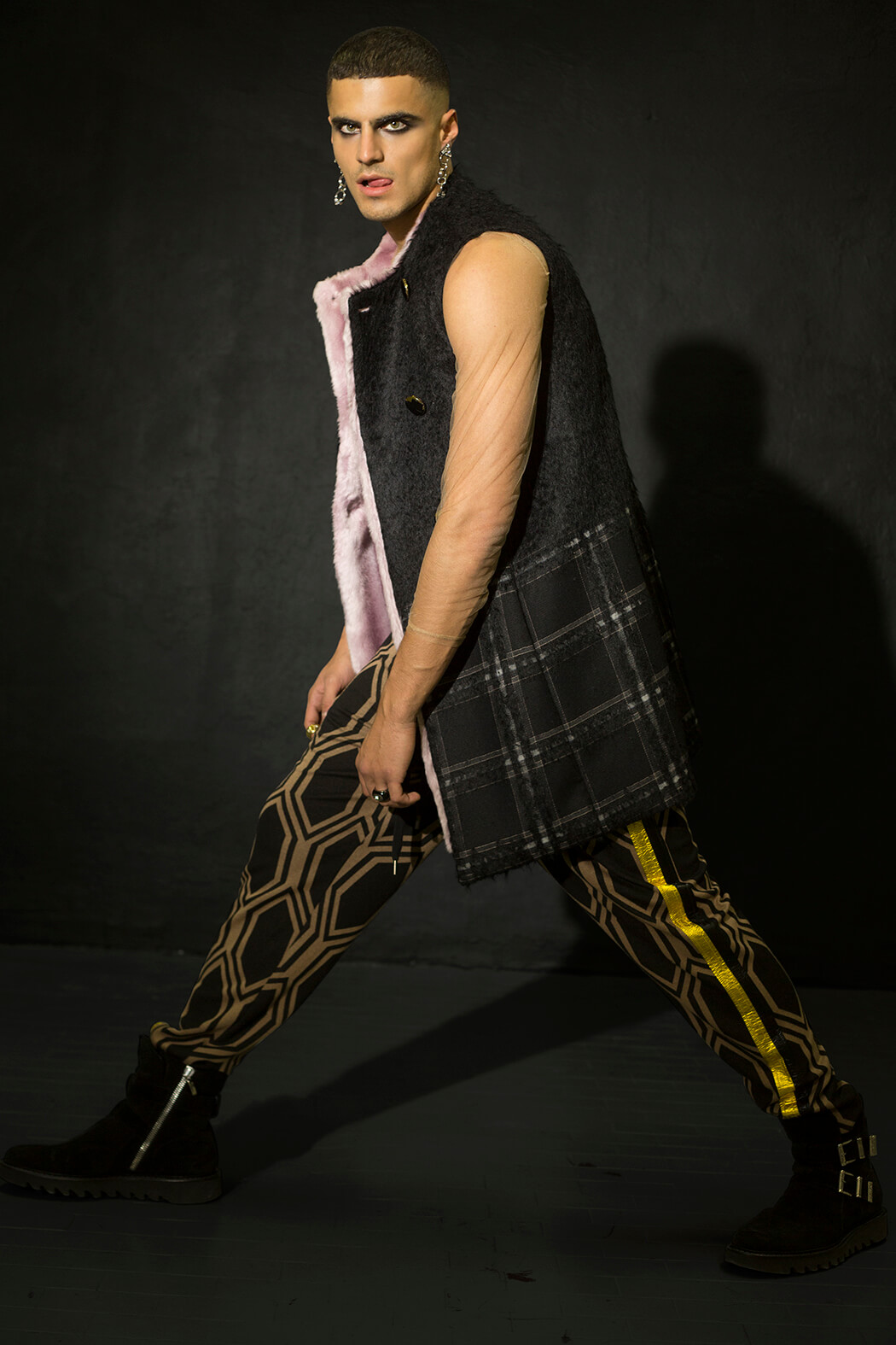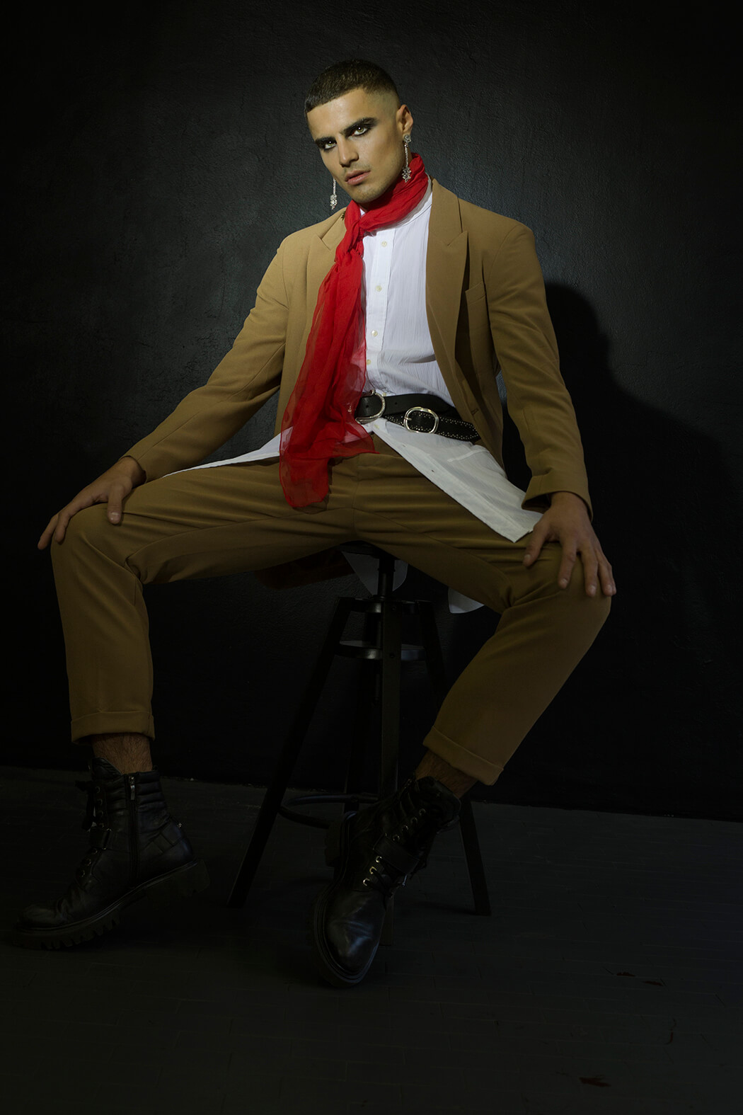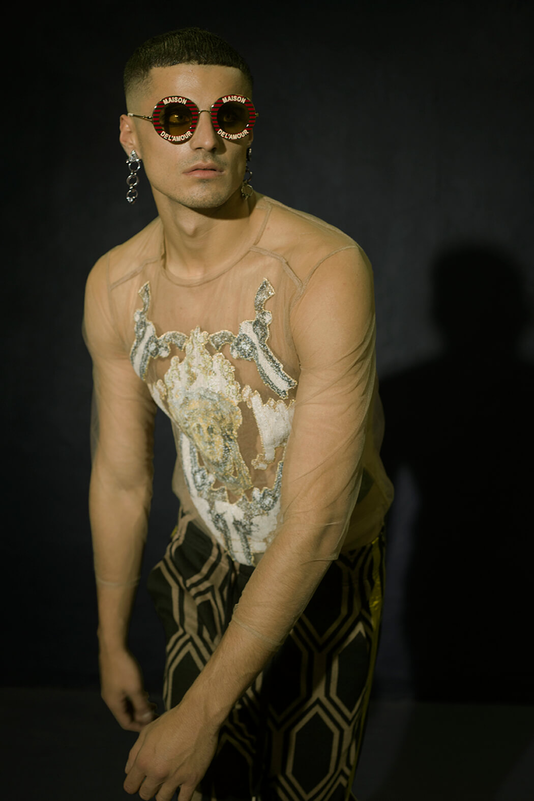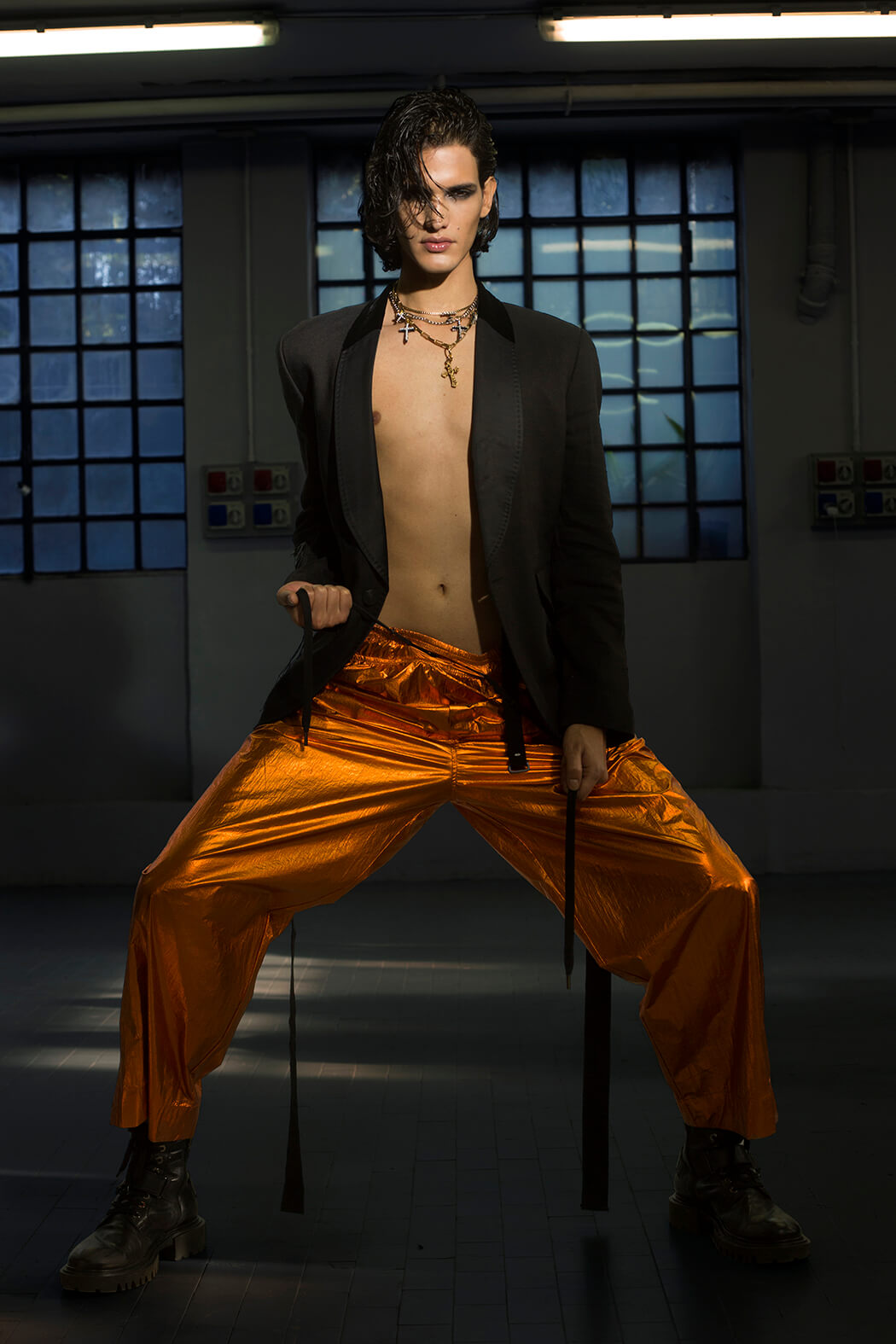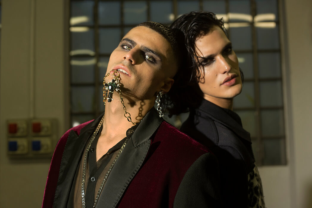 A KALTBLUT exclusive menswear editorial. Photographer Paolo Rutigliano captured Tais Benatti, Mark Willis and Luca Corrado. Styled by Stefano Guerrini. Make up by Federica Pisu. Hair by Bruno Oliveira. Brands are Andrea Pompilio, A.N.G.E.LO. vintage, AntPitagora, Archivi Mazzini, Archivio Guerrini, Babylon, Bonfilio Hats, Calzedonia, Cape Robbin, Cartier, Christian Pellizzari, Collini Milano, Courrèges, Darin Hachem, Doppiaa, Duelle by Dolores Bacchi & Simonetta Martini, Ego, Gucci, HTC, Kyme, Luigi Veccia, Marsēm, Nicola Indelicato, Niky Demauro, Orciani, Paciotti, Radà, Seventy, Tom Rebl, Yezael by Angelo Cruciani, Wayeröb.