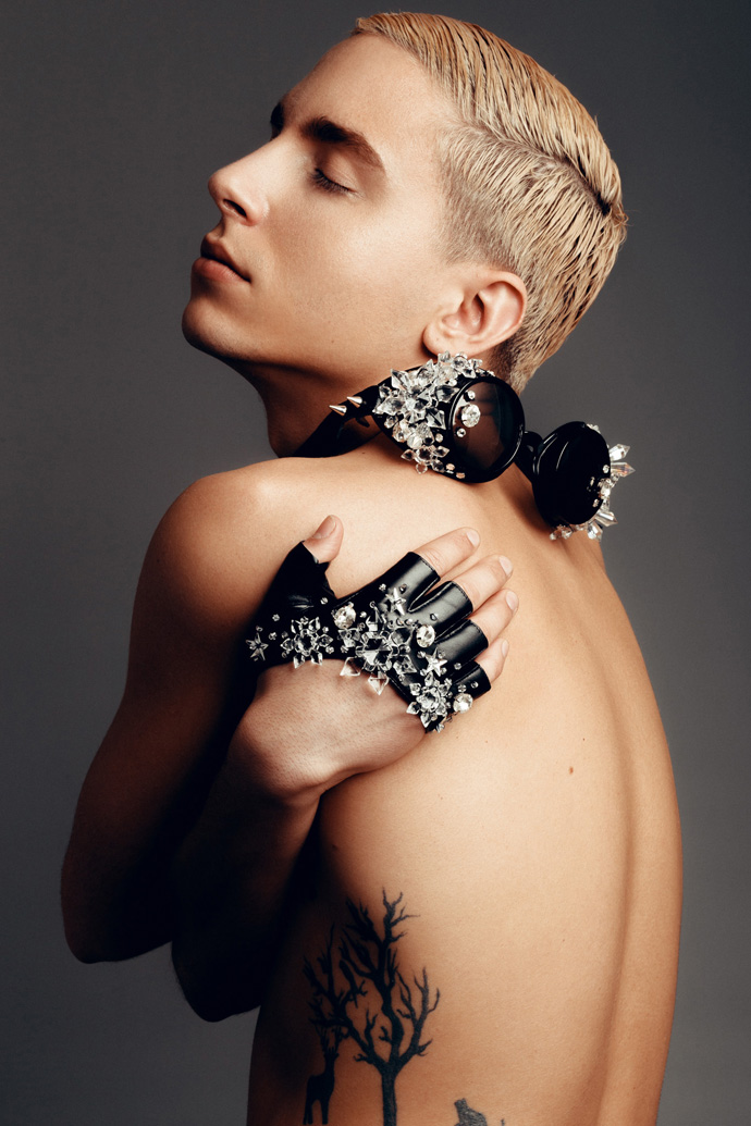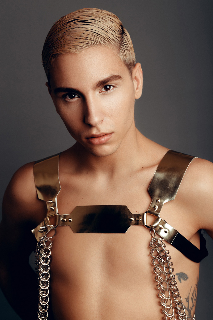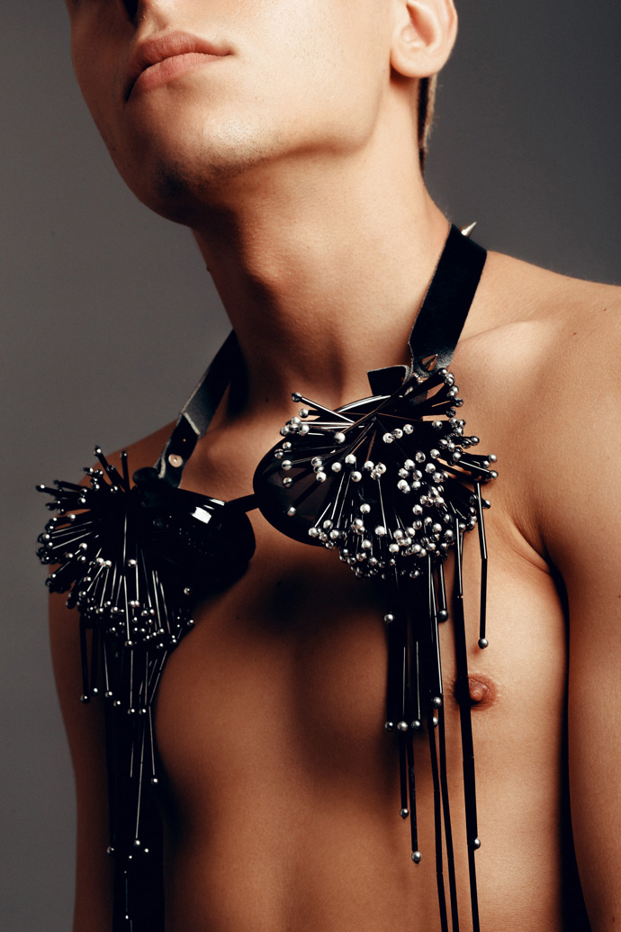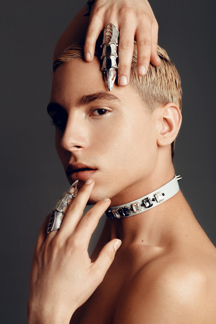 A KALTBLUT exclusive. Photography by Pierre Louis. Model is Antoine Fernandez signed at Agence Céline Paris. Make up by Azami Tissam. “I’m a Parisian photographer since 4 years. Usually, my photoshoots are more fashion and outdoor. But this time, I wanted to try to show accessories and jewelry with a man as model, wich is a friend of mine on the pictures. After this, We decided to contact a designer that we love : Romain Thevenin. A Parisian fashion designer who sometimes create clothes for celebrities. I wanted to create something darker than I usually create. ” says Pierre Louis about his editorial.