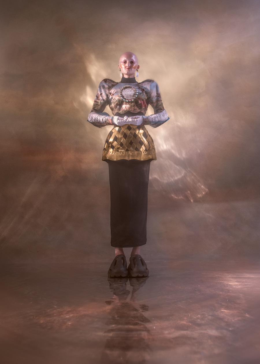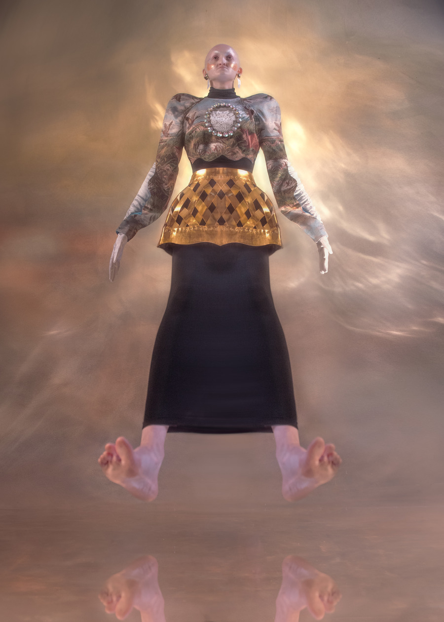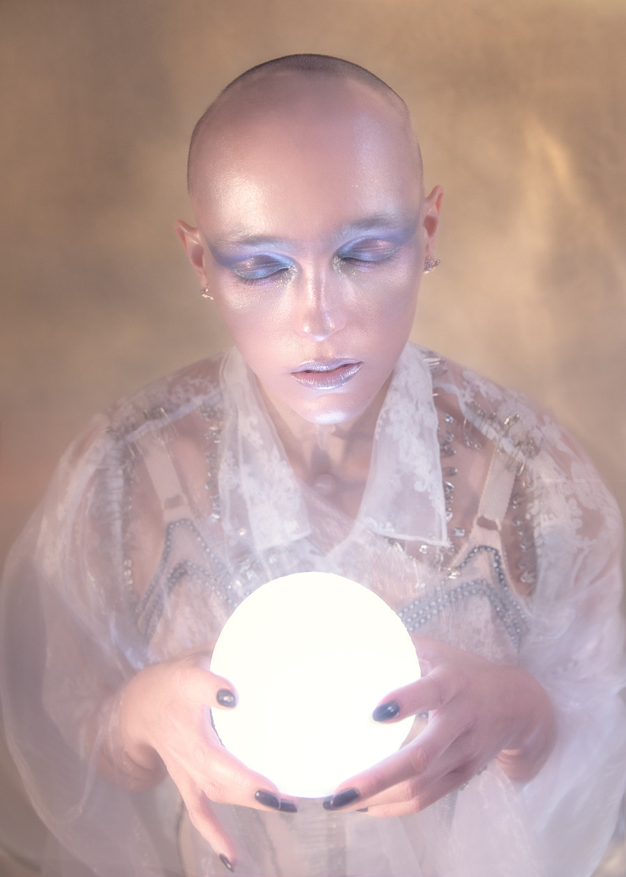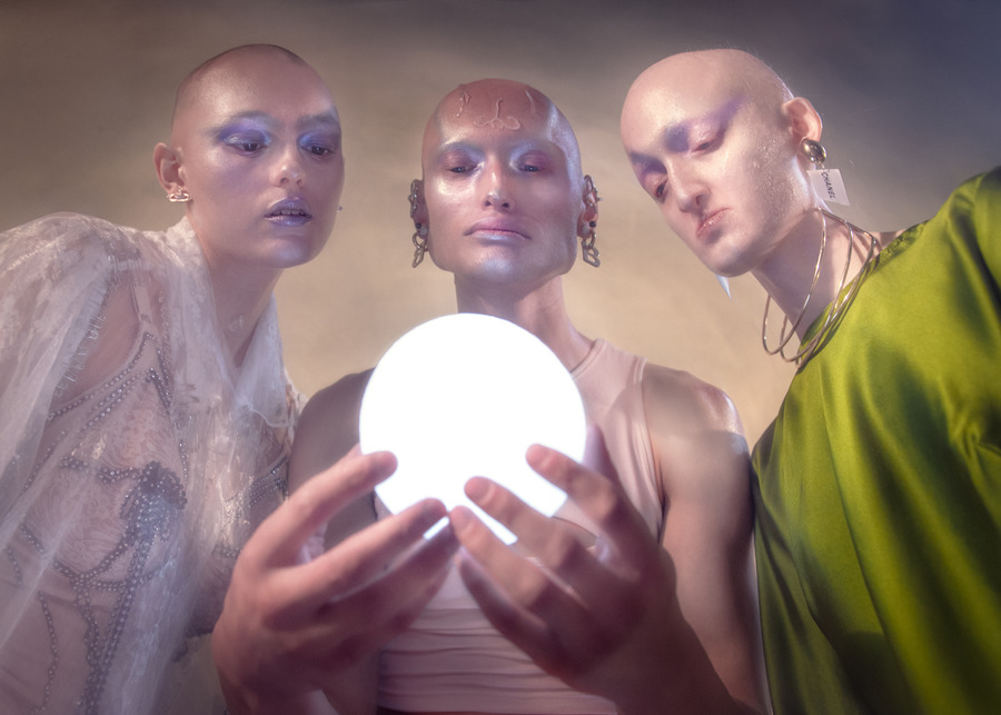 Ethereal beings wander a barren landscape at night in The Gloaming by fashion photographer Lucy Feng. A strange desolate landscape, somewhat martian in appearance with dry, dusty terrain and pools of water, crafted by set designer Matthew Lawrence. There’s a strange and “other” quality about the figures, portrayed through otherworldly styling by Lewis Robert Cameron alongside three-dimensional futurist beauty from make-up artist Yoko Minami and prosthetic artist Charle Ivey. A KALTBLUT exclusive.