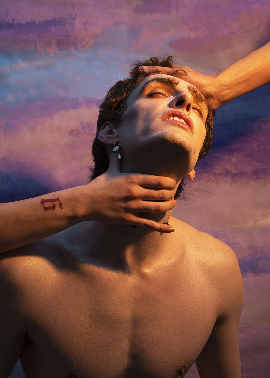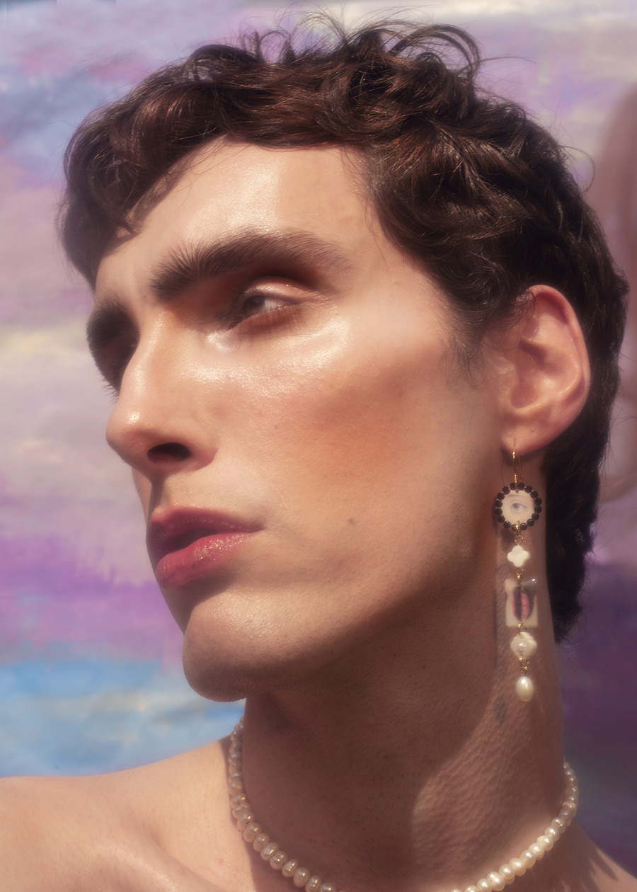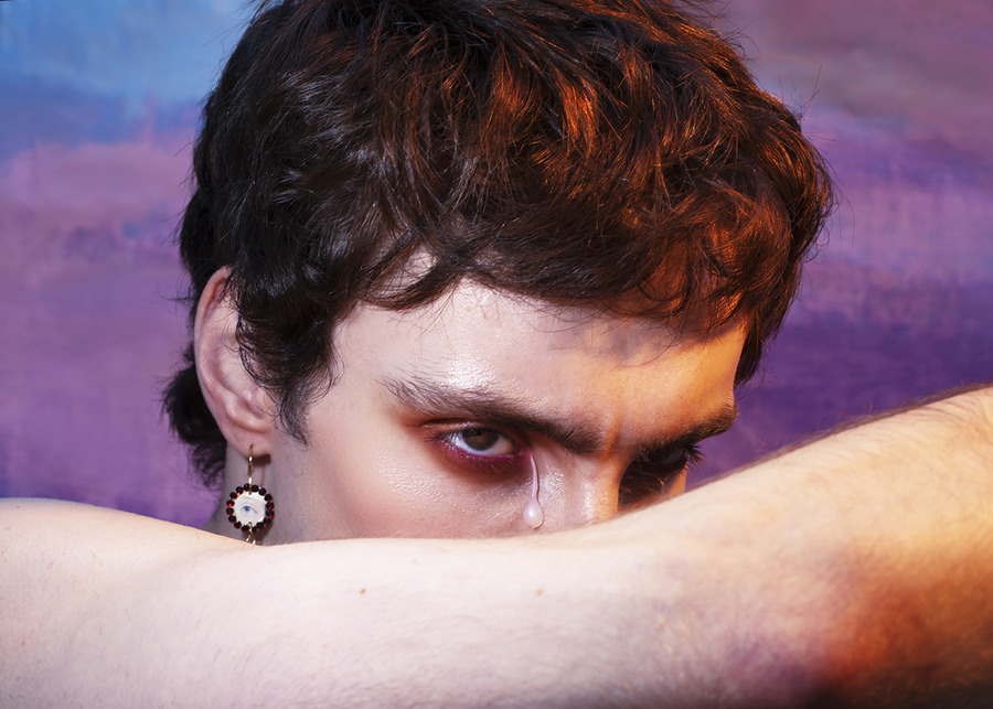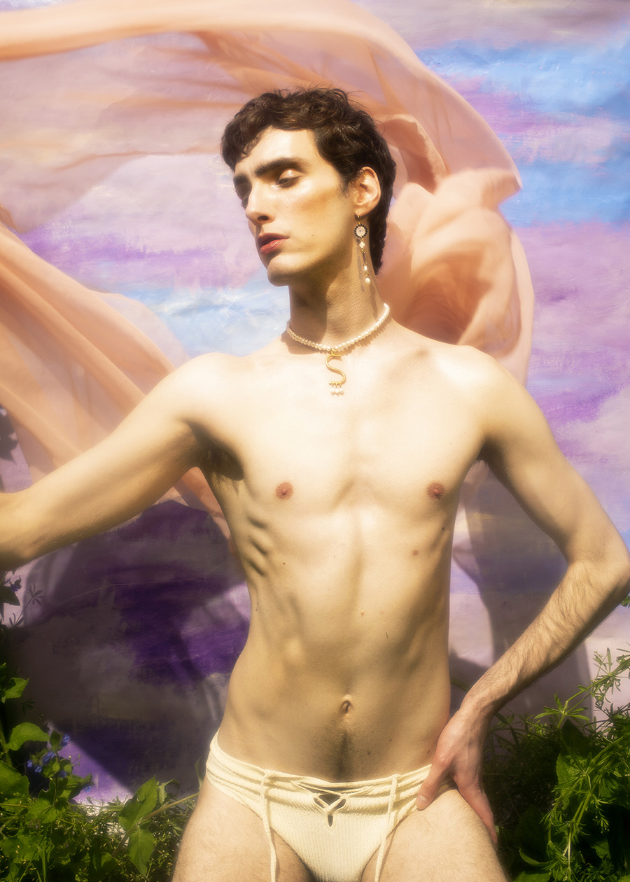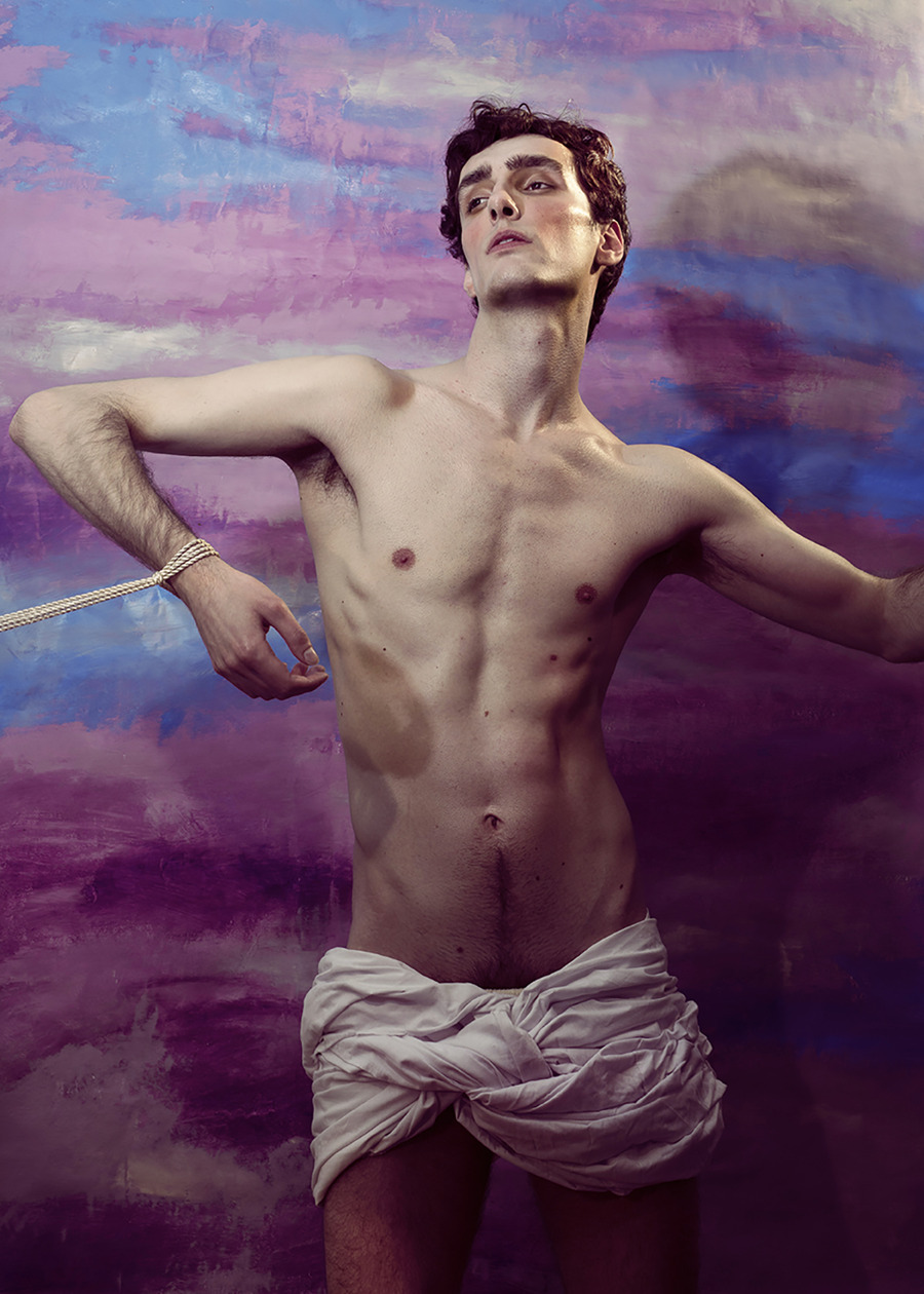 A KALTBLUT exclusive. Modelling, creative direction & concept by Matthew Scott, signed at AMCK Models London. Photography & set design by Aaron Bird. Styling & production by Sabrina Raso. Makeup by Czar Joshua Ventura. Fashion brands used are Sardanapalus, Ludovic De Saint Sernin, Sssilk666, Livia Wednesday, Dilara Findikoglu, and Matilda Little.