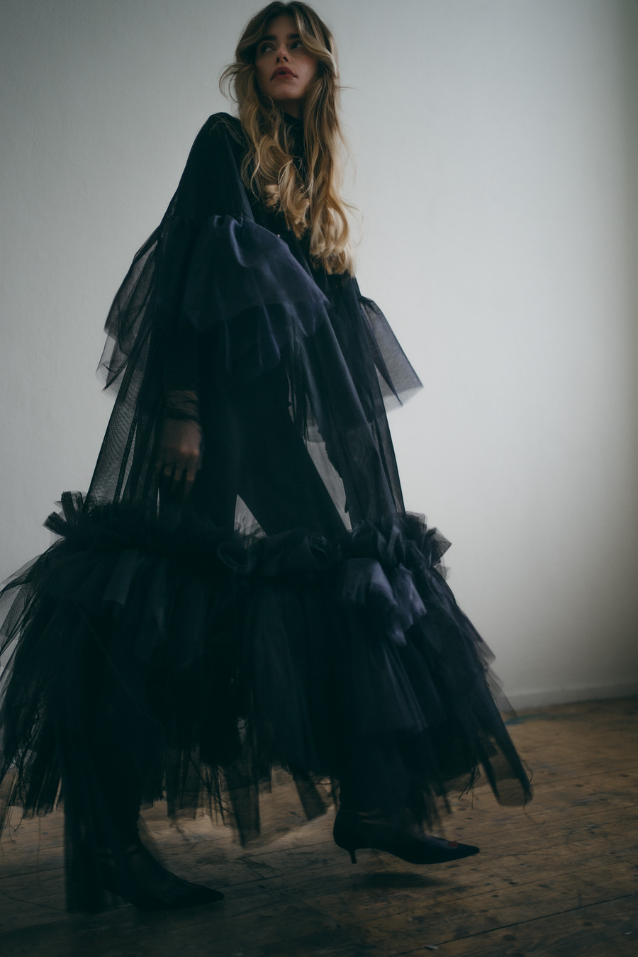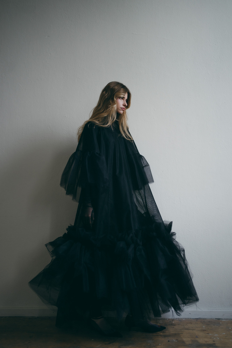 “Within the weathered halls of an old estate, she finds solace in solitude. Each room breathes the stories of bygone days, while the silence wraps around her like a heavy cloak, offering peace and escape. But slowly the emptiness starts to whisper – soft and unsettling. Memories turn into shadows, and the quiet begins to fracture. Solitude blurs the line between beauty and madness.”