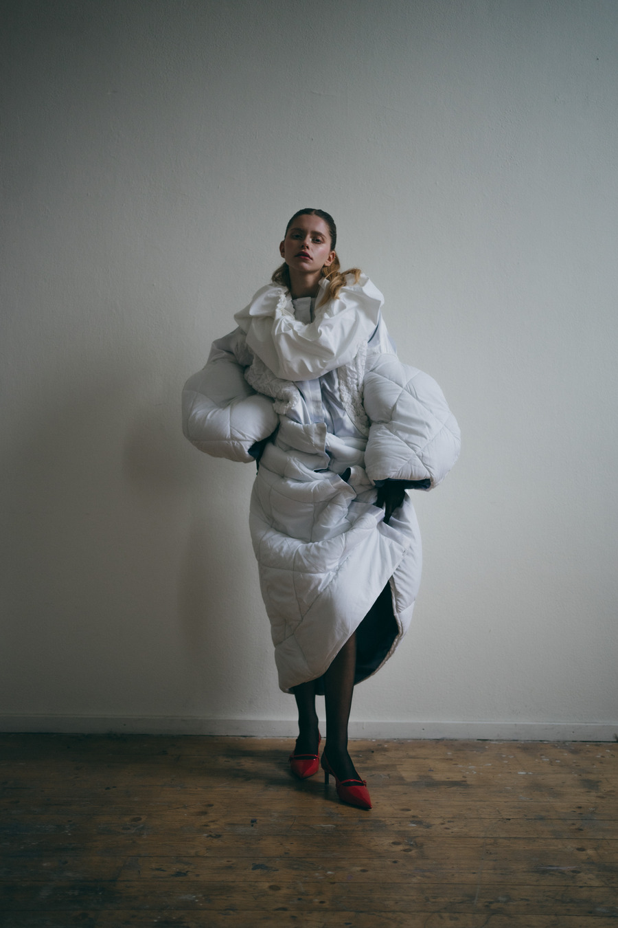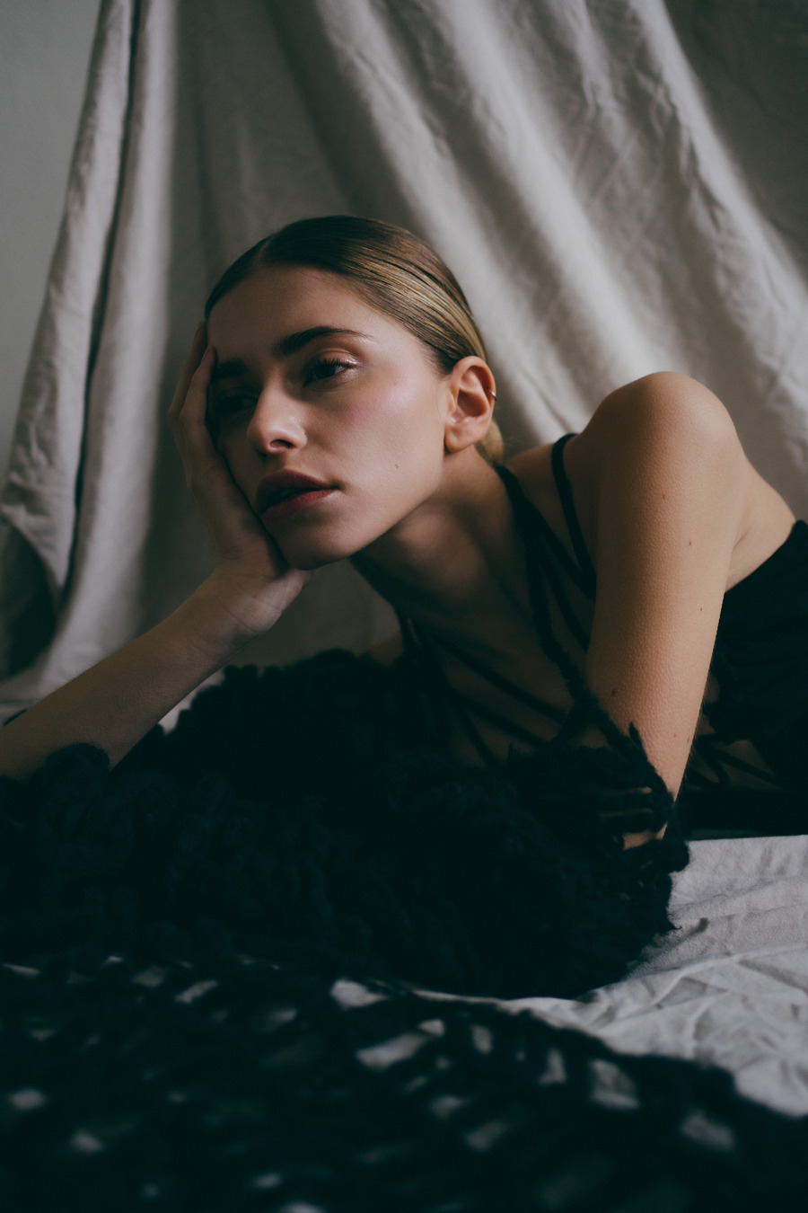 A KALTBLUT exclusive. Photography by Vy Pham. The model is Greta Miftaraj signed at agency Munich Models. Hair and Make-Up by Olga Kuznetsova. Styling by Daria Neubauer using Paulina Bongarzt, Alena Ryvkin, DE PRATO, Laura Obst, Bijou Brigitte, Michelle Bohnes, Dolce&Cabanna, Jasmin Anita Wottke, Calzedonia, Wolford, Emporio Armani, and SOHI.