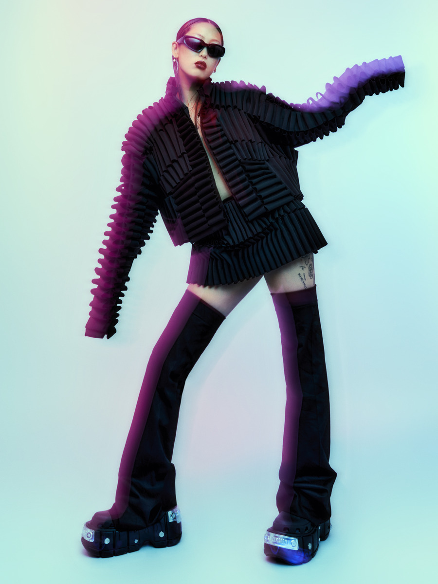 Wearing a piece from “The Future Club”, you could be dancing beneath the neon lights one moment and raising a toast at a soirée the next. This versatility isn’t just about adaptability; it’s about celebrating our multifaceted identities.