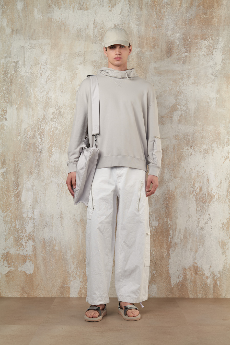 Adding to this innovation is the Shadow Dyed Spray technique, imparting unique colour nuances and trompe l’oeil effects that ensure each garment stands out. This technique is applied across T-shirts, bottoms, and sweatshirts, completing the Ten c total look while encapsulating the brand’s spirit.