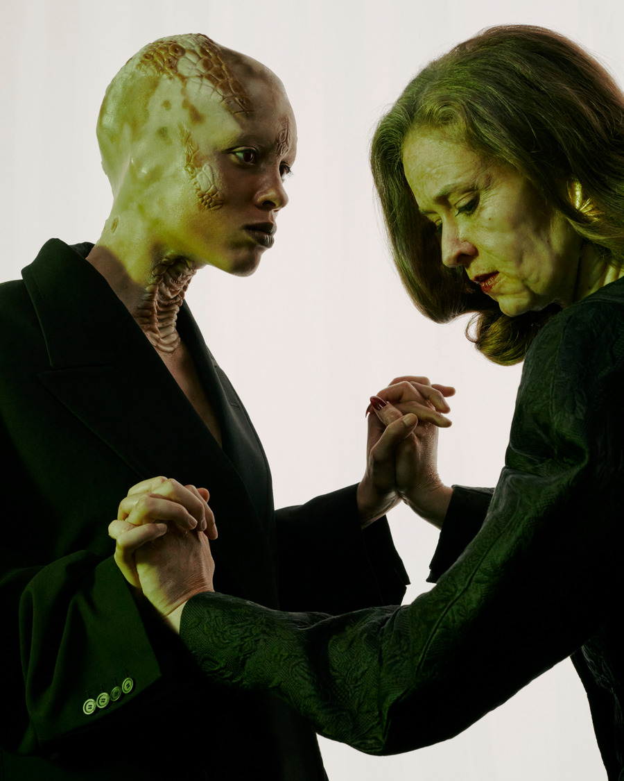 “This is a fresh look at a story written by Walter Tevis “The Man Who Fell to Earth”, which was so brilliantly presented in the film in 1976. The story of the unique relationship between an Alien, who pretended to be a Human and a woman from Earth, who was so lost in her life and desperate for love. In the 1976 movie, we can understand time passing by only by good ageing makeup, which was applied to actress Candy Clark. Alien played by David Bowie has not only this weird intriguing creature makeup but was also a rebellion, a representation of man who dared to be not masculine and athletic, but rather feminine and weak and had no sex in his natural form. Androgyny was a hot topic at that time.