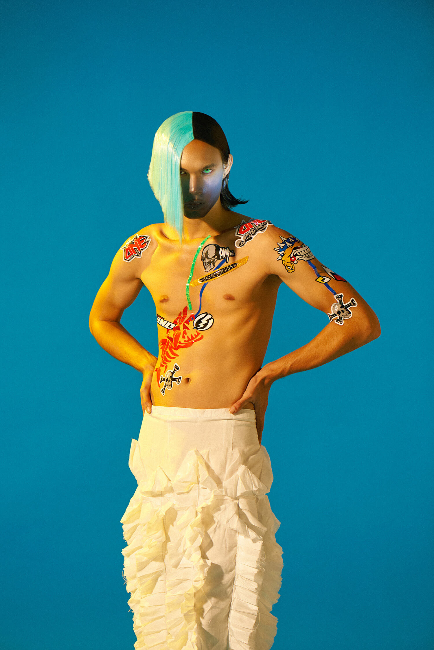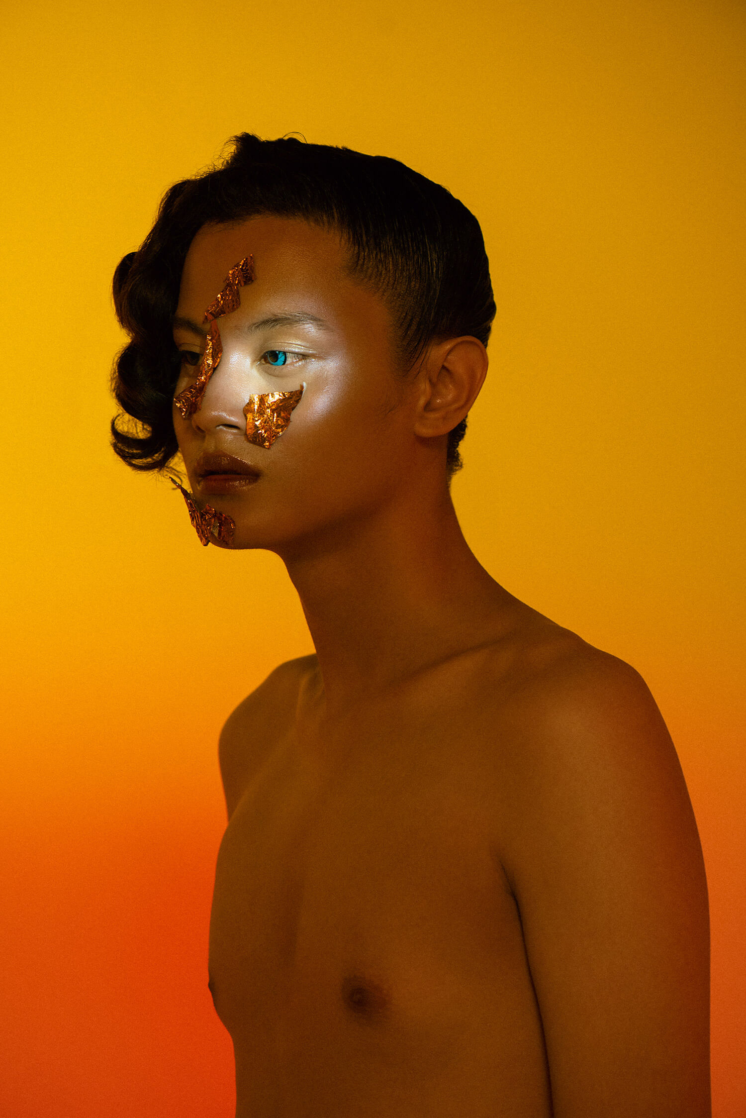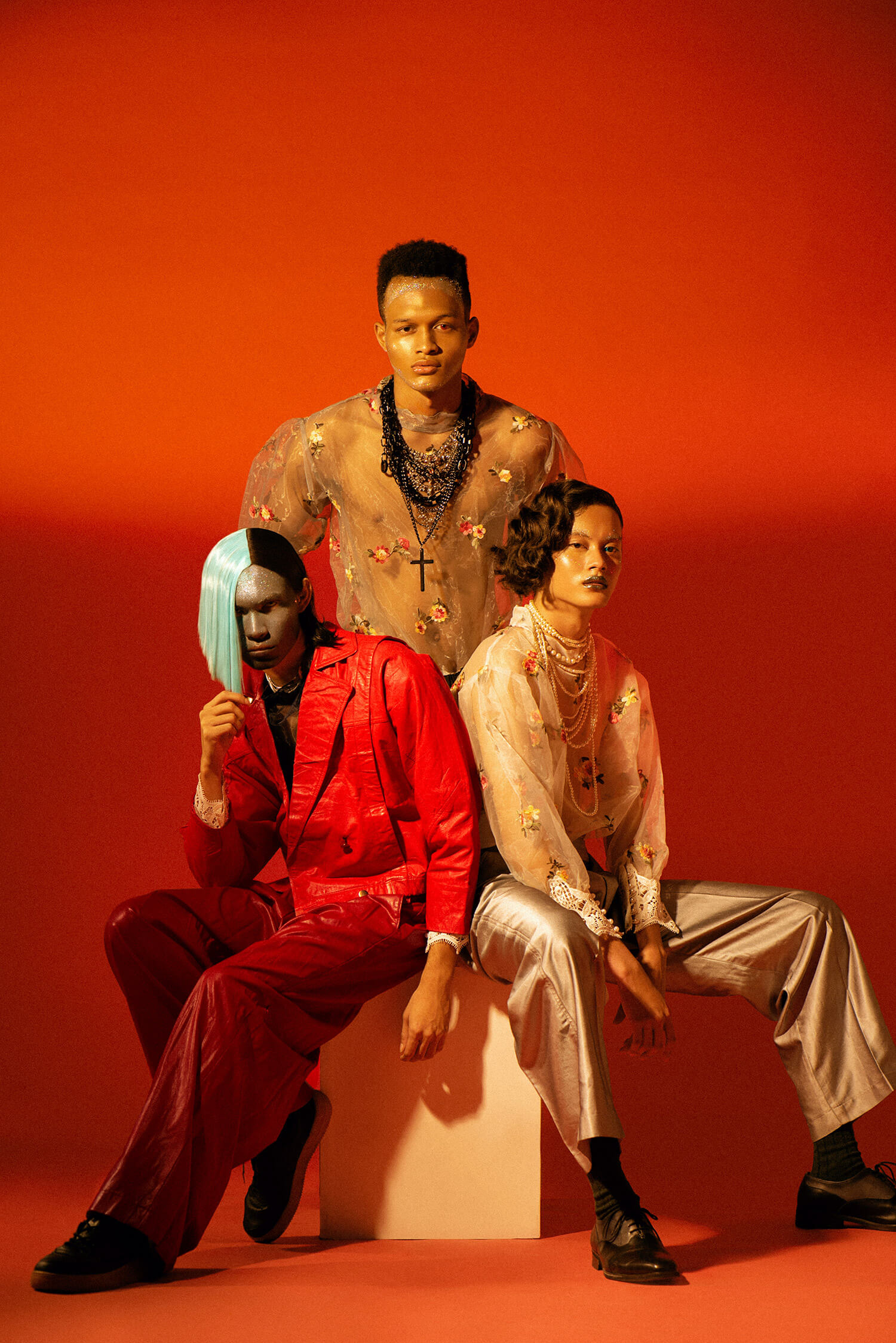 A KALTBLUT exclusive. Photography by Prabowo Prajogio. Models are AXEL and OBIN signed at Future Models , RIZAL signed at Persona Management. Styling by Gisela Febrina Juwono. Make-up by Claudya Christiani Purba. Hair by Eka Sari Wahyuni. Retouching by Christine K Siregar. Brands are LA DOUCHEVITA, HOMME PLISSÉ ISSEY MIYAKE, Jizeeru, KRATON World, L.O.C. Bowo, a true kid at heart, is naturally curious about the depth of beauty in the human nature. This interest was first shown in his love for drawing, but it eventually shifted to photography. His works are mainly influenced by Japanese & Korean Pop Culture. Expect eclectic fashion, little quirky gestures, vibrant colors, and everything else in between.