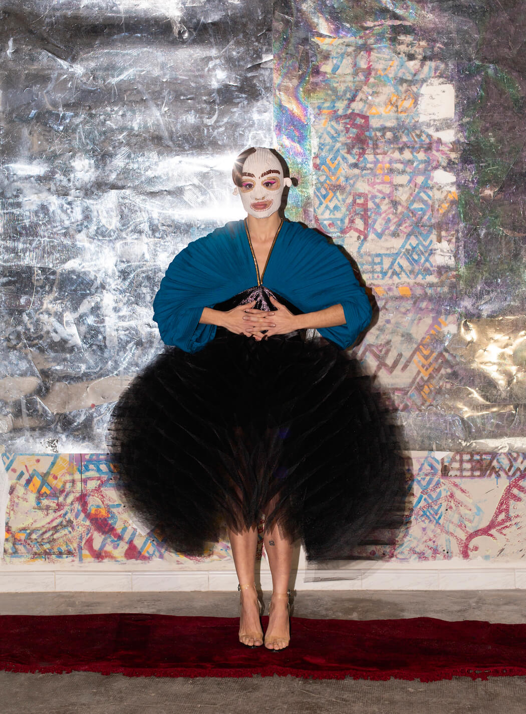 Arden, photographer, and Woolman Family, performance artists, join forces to weave a new concept where art serves as a support for fashion, thus generating the double art-fashion mask, the absurdity of the image elevated to artistic parody.