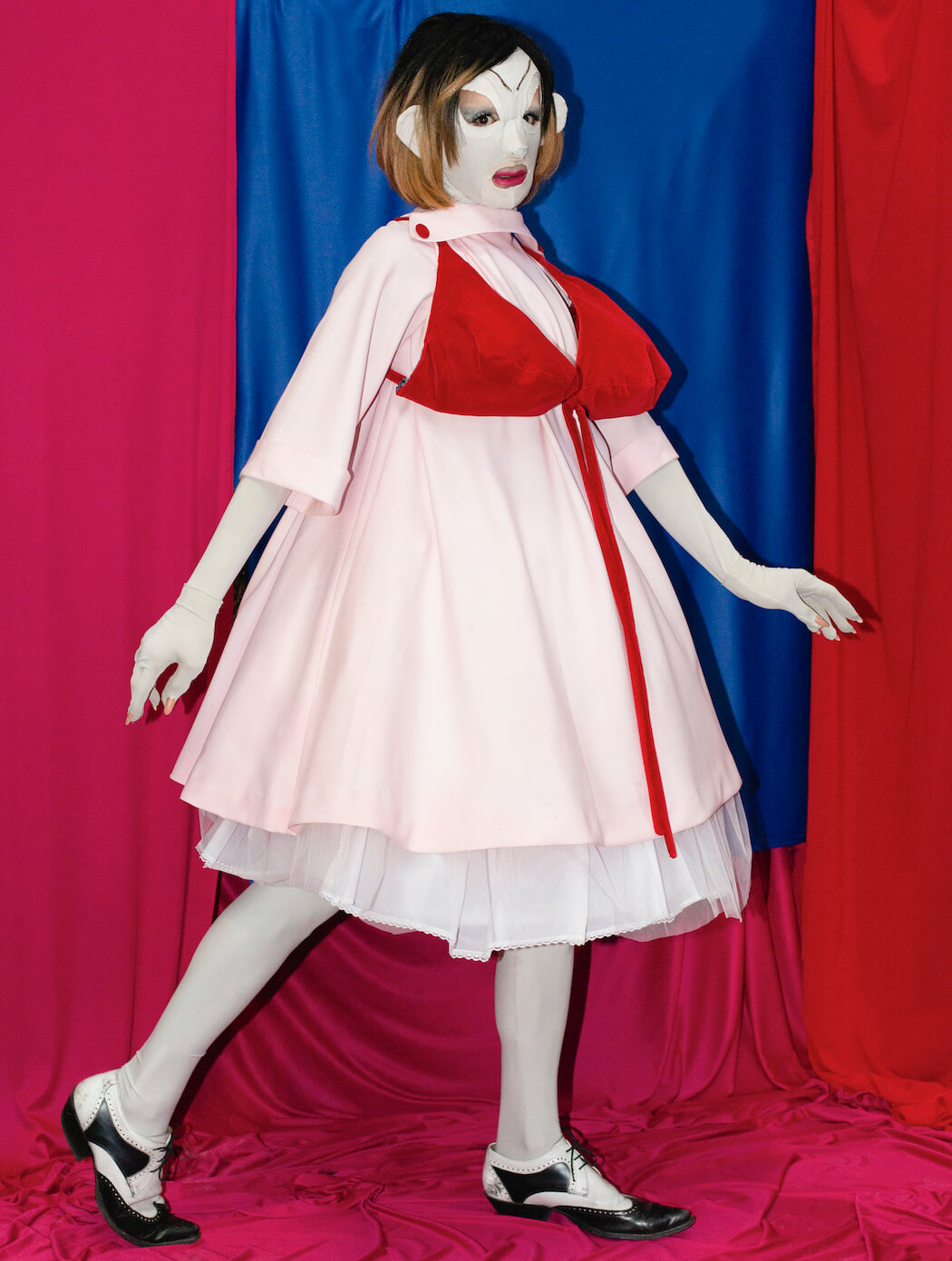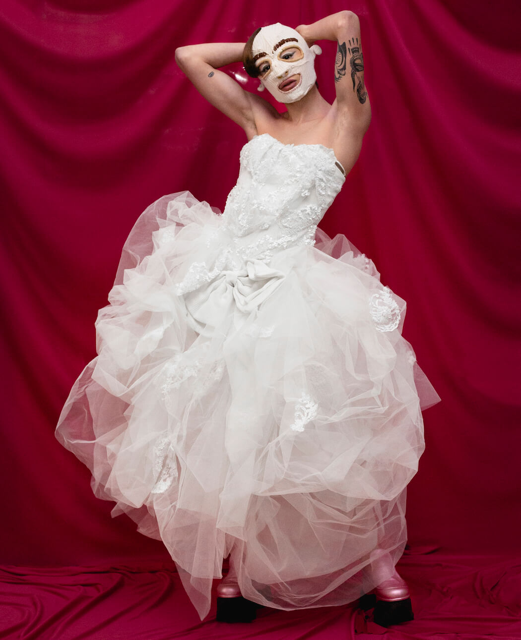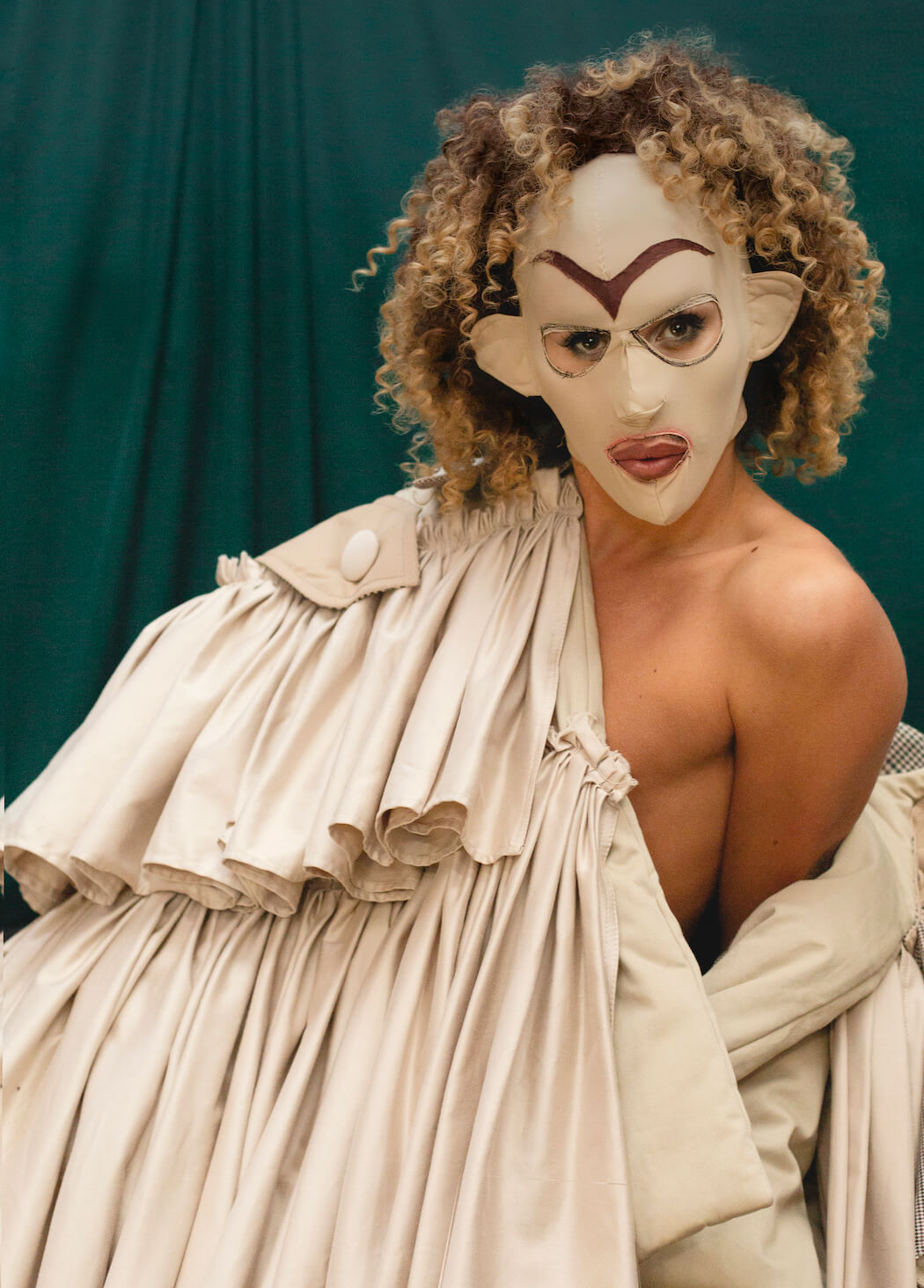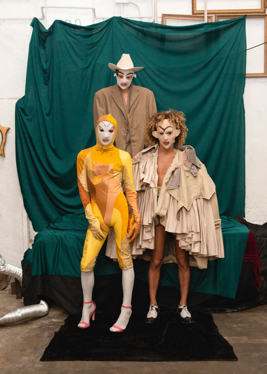 Arden, photographer, and Woolman Family, performance artists, join forces to weave a new concept where art serves as a support for fashion, thus generating the double art-fashion mask, the absurdity of the image elevated to artistic parody.