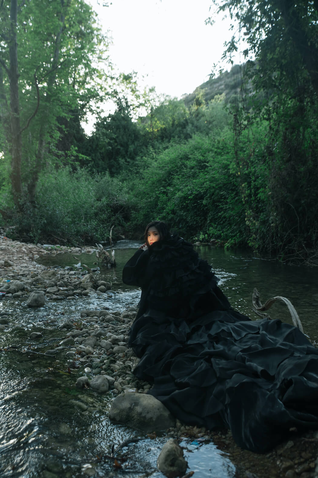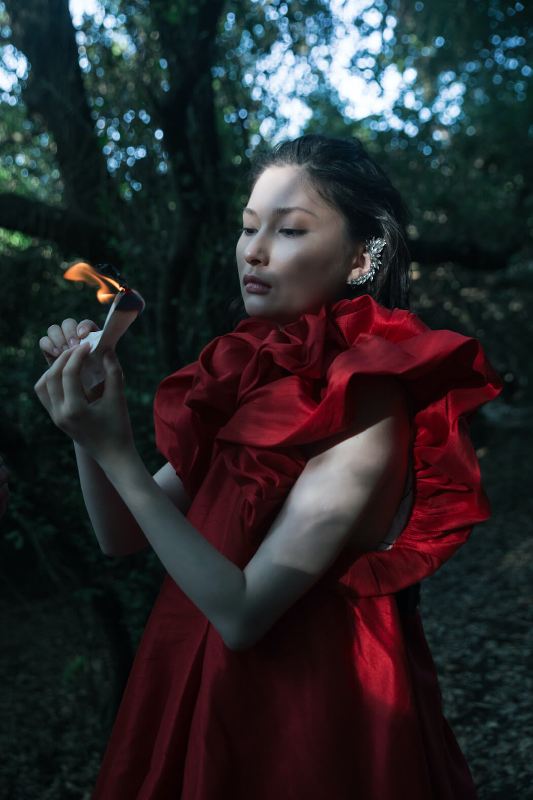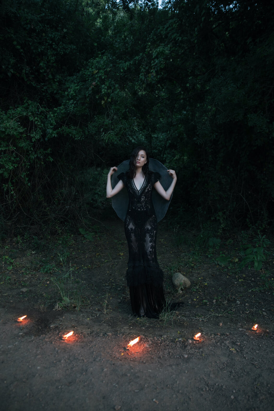 An editorial inspired by the question of what seems to trap a woman between this life and the beyond is the anguish of being hurt by those closest to her. Yama Uba is an ancient Japanese witch who lives and hunts in the mountains and eats anyone who is unfortunate enough to cross her path. She will often pose as a young woman who will offer shelter to lost travellers. Once the traveller falls asleep, she will eat them. It is said that the Yama Uba was a normal woman when the area where she was living experienced a famine. Her family couldn’t feed her, driving her out into the woods to starve. She eventually found shelter in a cave, although she was driven insane and started to feed off people, turning into the Yama Uba from desperation or rage.