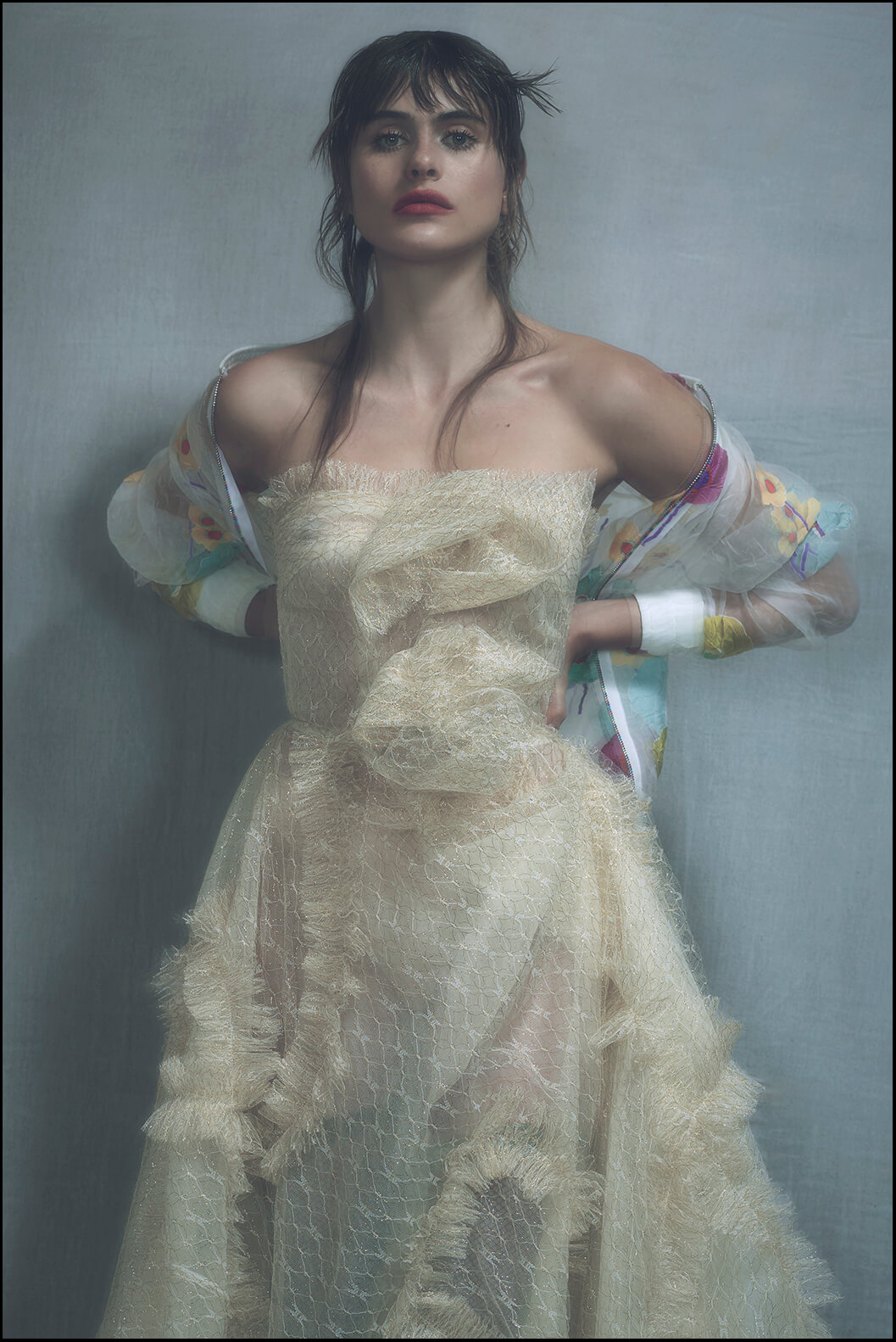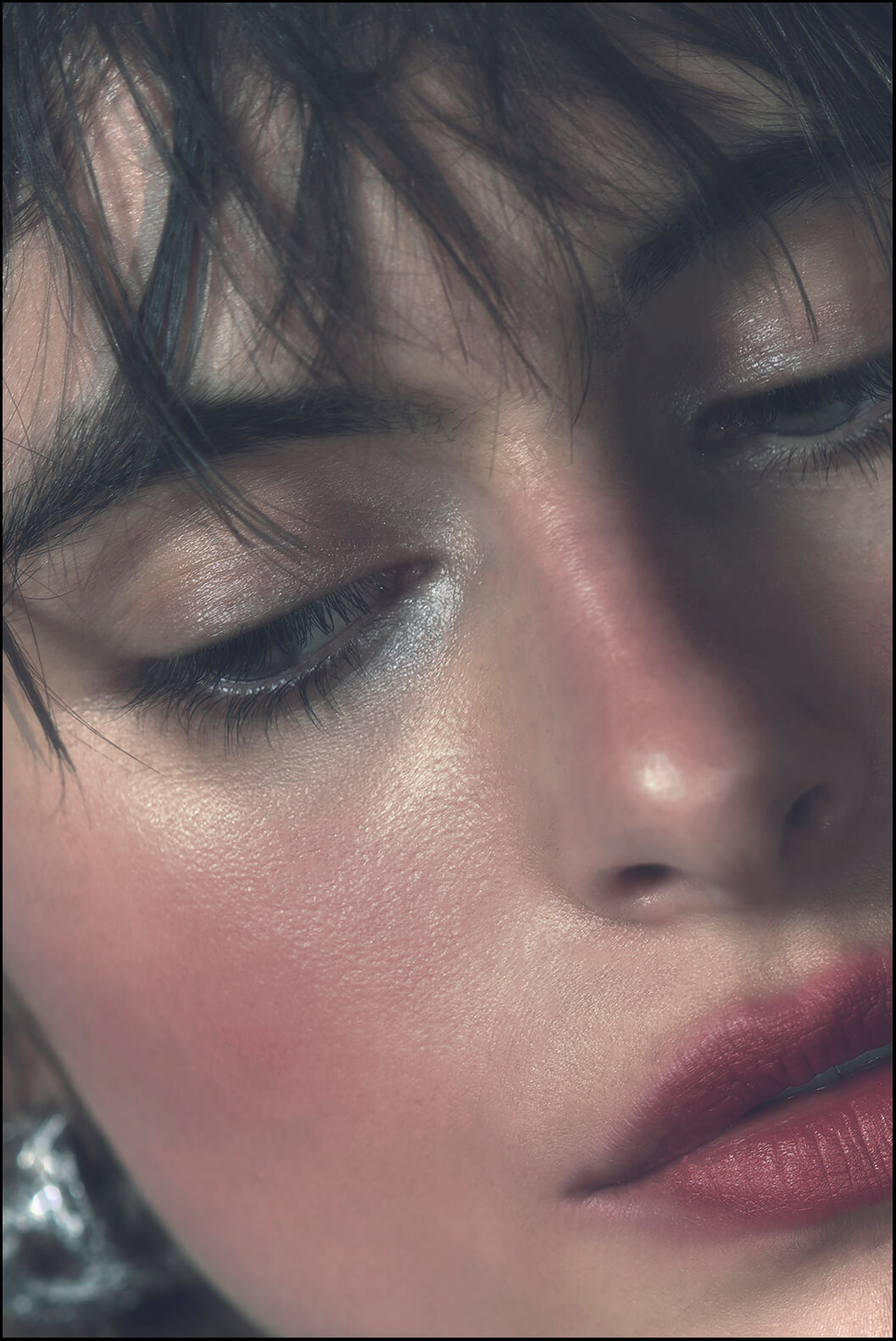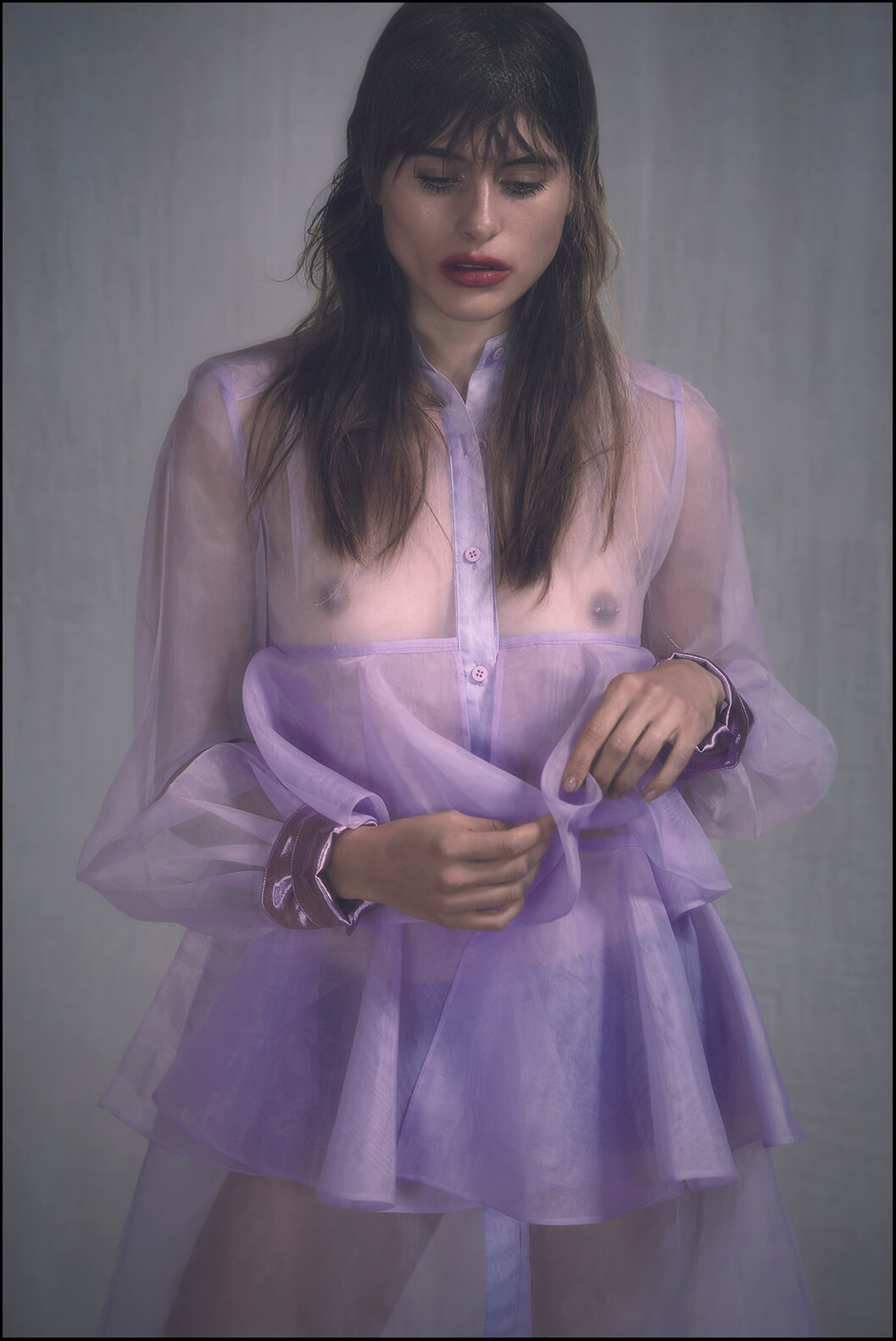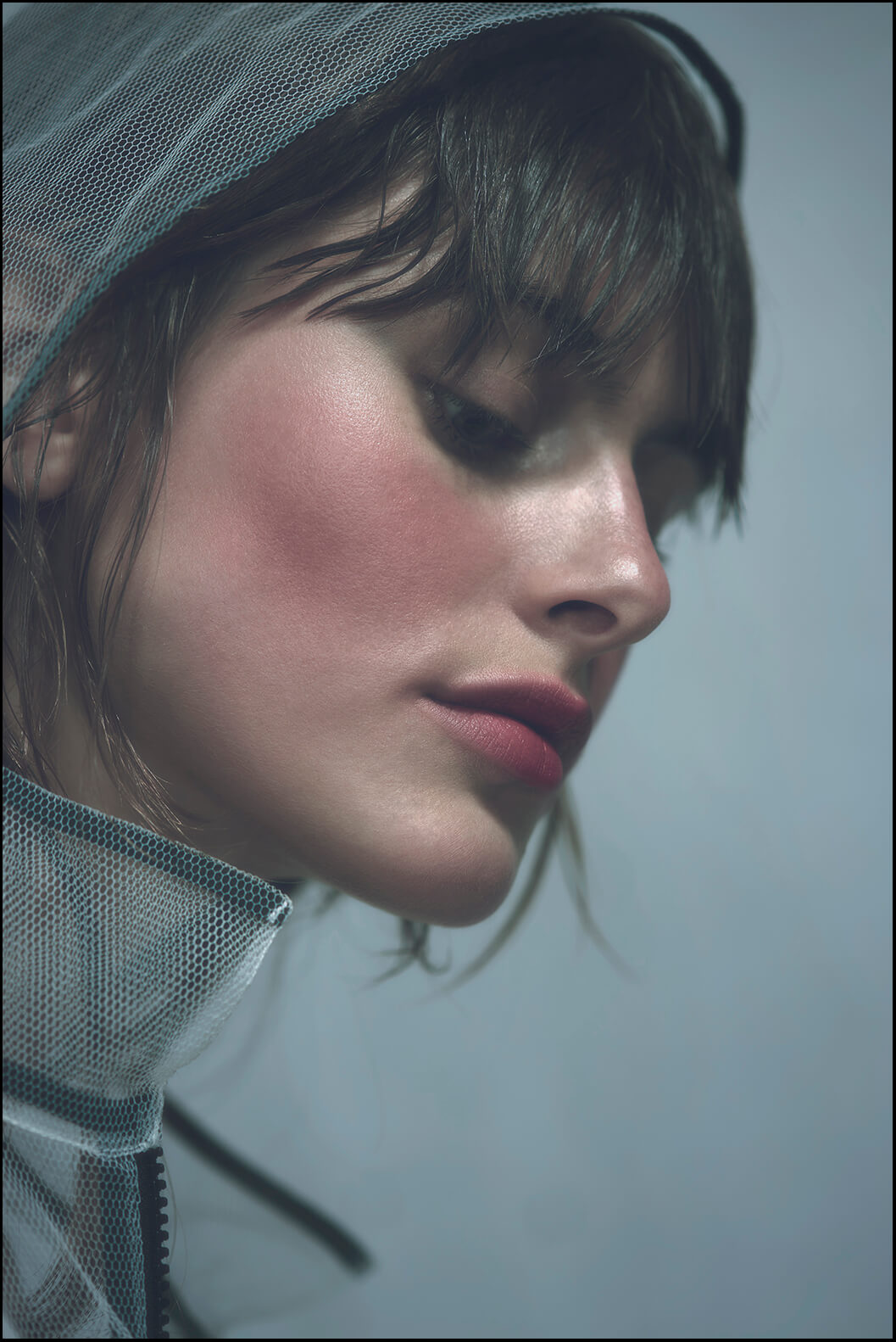 This shoot was an exploration of the myriad iterations of sheer fabrics in play in clothing at the moment, chiffons, tulle, plastics, lace, fishenet and lurex all feature. This translucence is mirrored in the sheer washes of pigment used on the face.