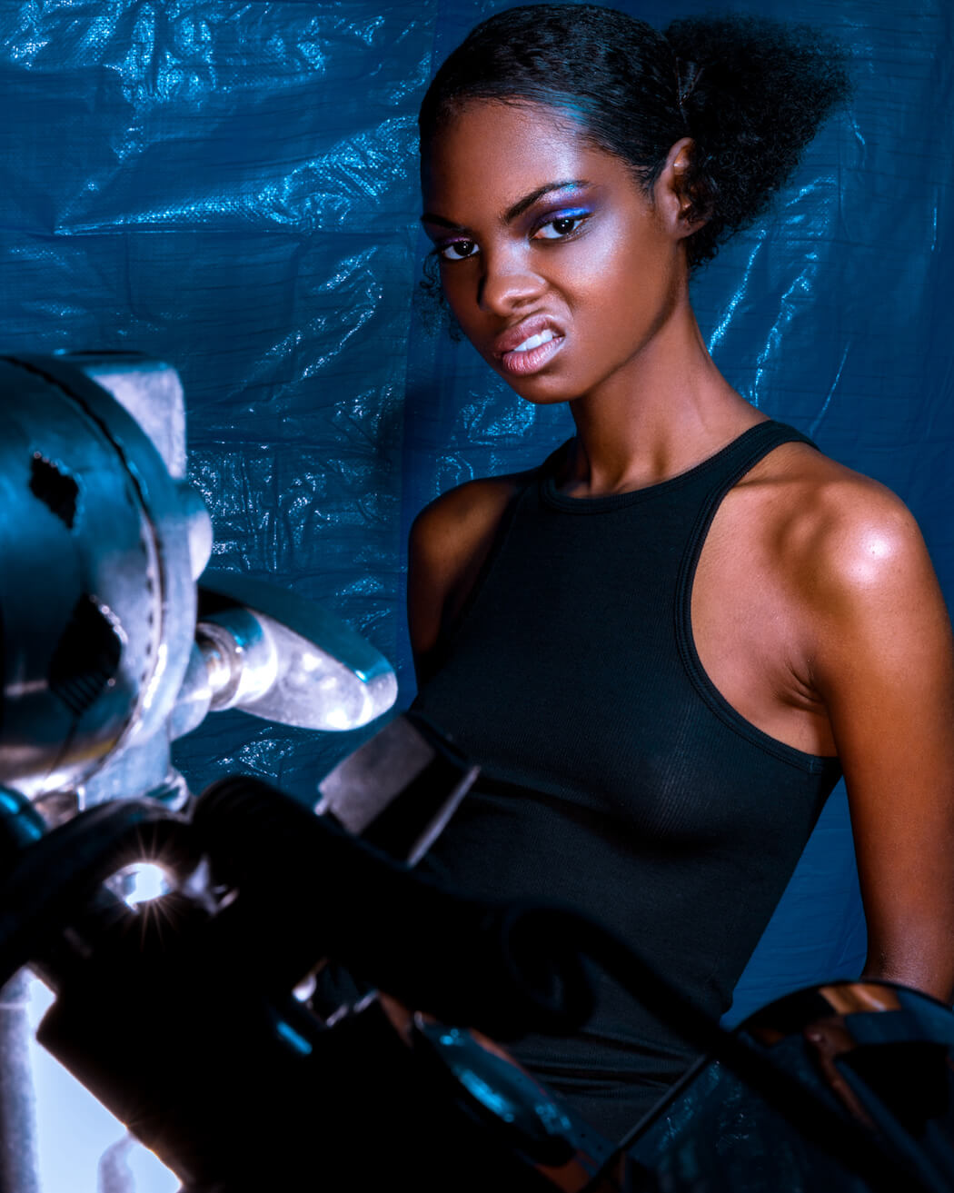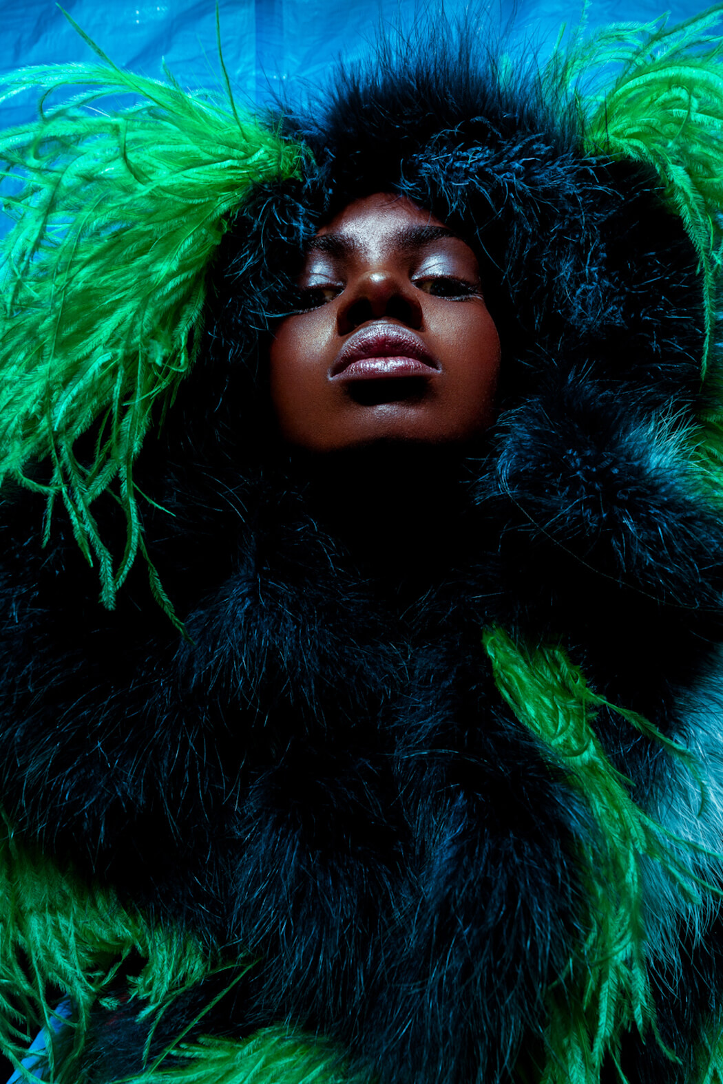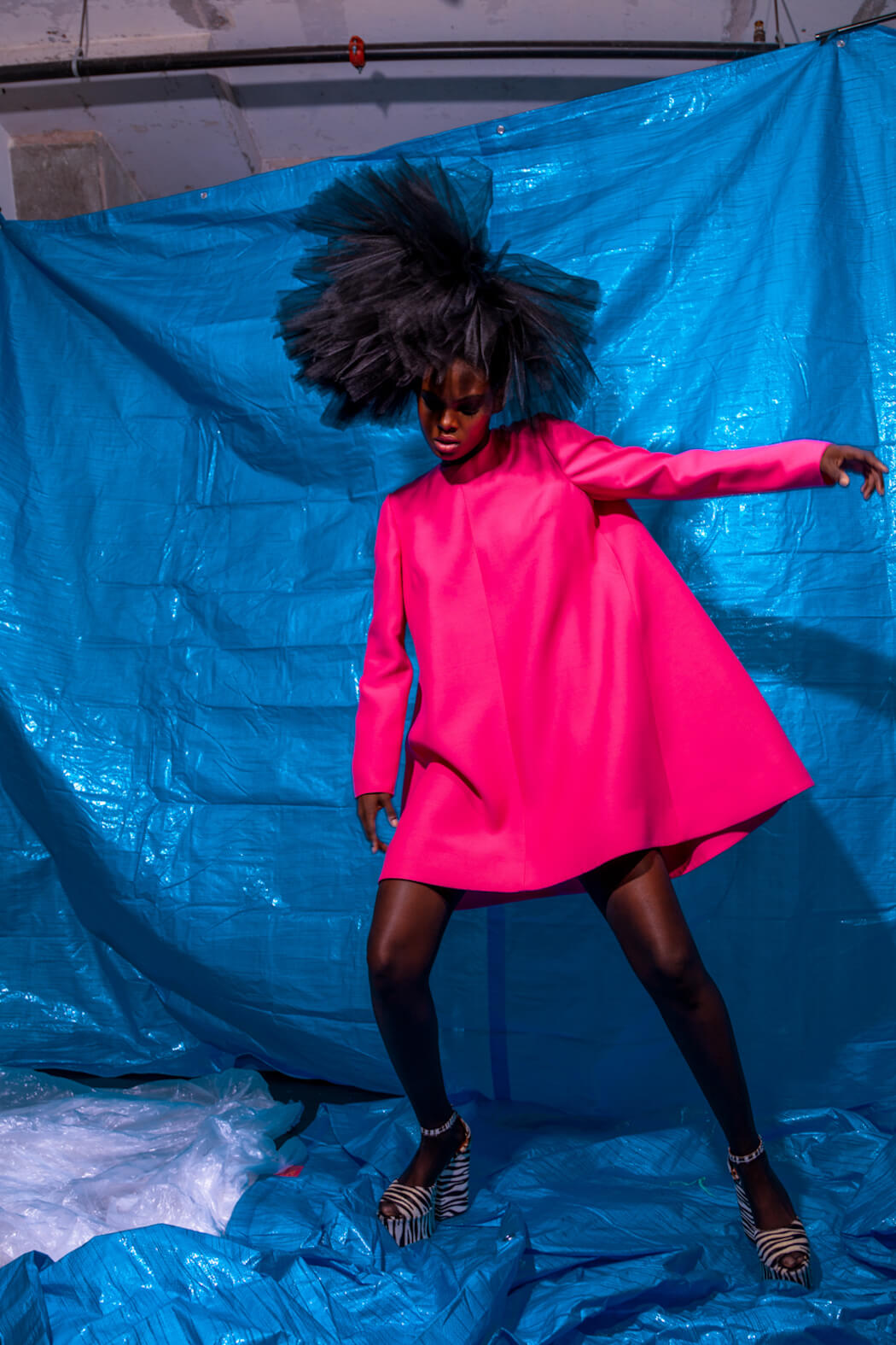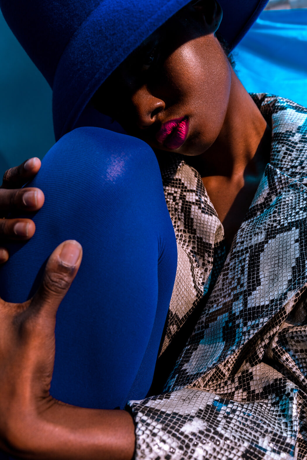 A KALTBLUT exclusive. Photography by The O.X. Project. Model is Delar Gaston of Select Model Management. Wardrobe Stylist is Kimmi Ade of Distinct Artists. Make-up by Konstantine Mironychev of Distinct Artists. Hair by Igor Shashkin of Distinct Artists. Skin Retouching by Andrea Corsei. Brands are The Attico, K.Adé, Tony Bianco, Stand Studio, Nina Ricci, ATM, Kwaidan Editions, McQ, Dolce & Gabbana, Ikram, Coperni, Ikram, Toga, Ikram, Balenciaga, Valentino, Katie Farnan, Osman.