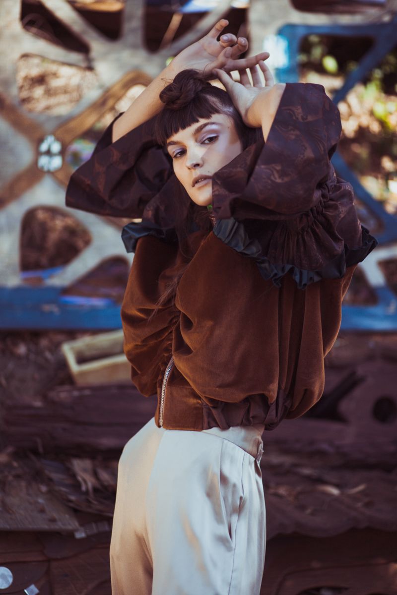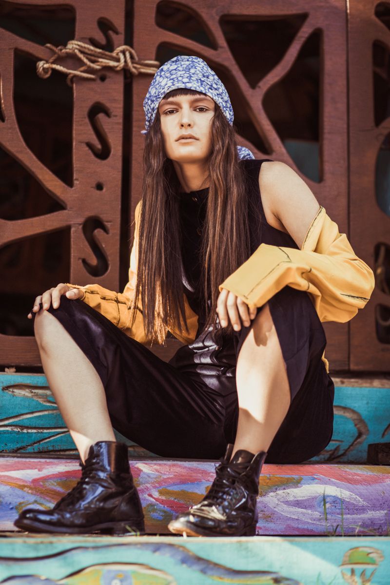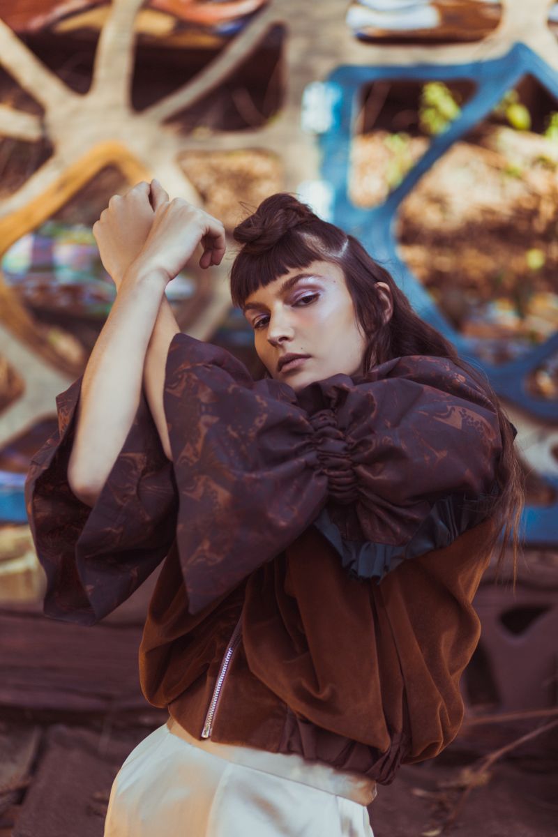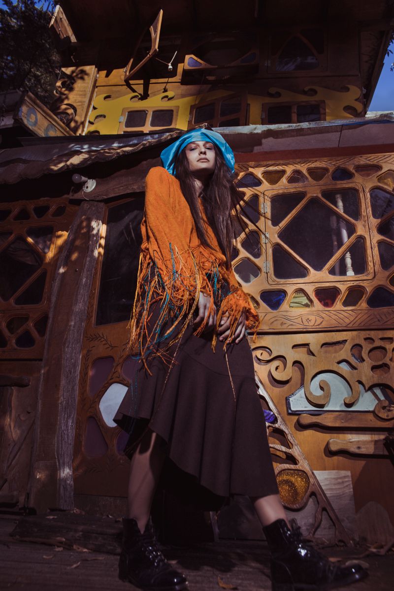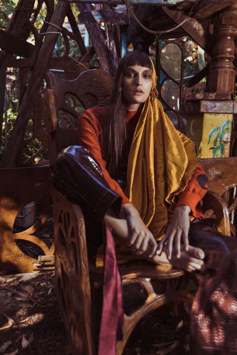 Witnessing Bob’s beautiful home and artworks inside it was a deeply emotional and creatively inspiring experience, for the lack of better words. It was as though a high pressure valve had been opened in this meeting and I felt a strong and overwhelming sense of love and gratitude by simply being in the space, and Bob was there to guide me through it – and my already crazy head was flooding with creative possibilities. Scenes which I thought only existed in my dreams were flashing through my mind, and I knew I had to share this experience by doing a collaboration with Bob, showcasing other Australian creative talent. So I hesitate to call it a fashion editorial.. For me, it was more like creating scenes from dreams… Bob understood and responded warmly to the intensity of my creative intent which I was very open with him about that first day we met. With little time left before going back to India, I am forever grateful to Bob and a team of extremely talented creatives who came together to help me bring this idea to life. Please enjoy “The Outsider” – a collaboration featuring the artwork of Boinga Bob.