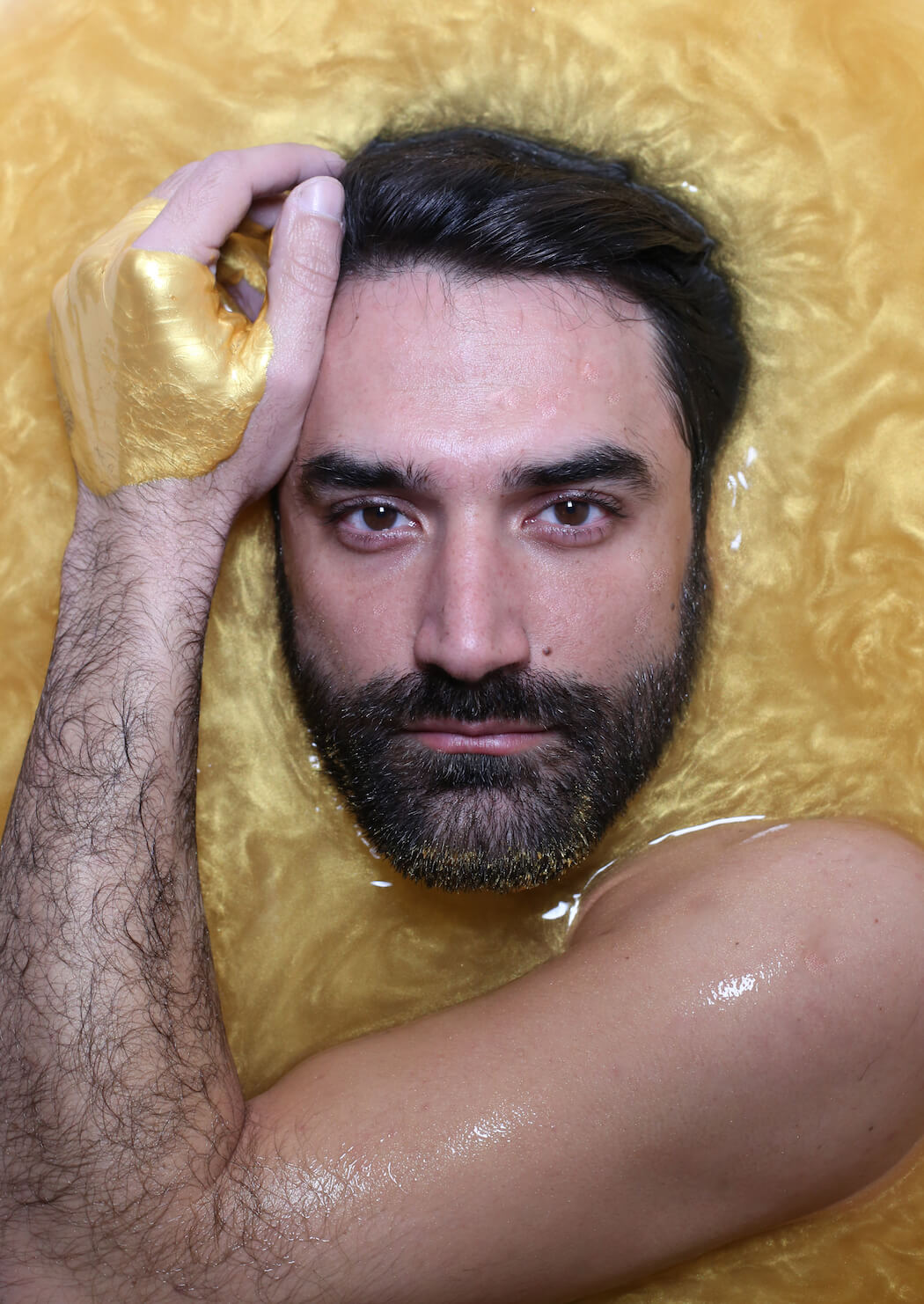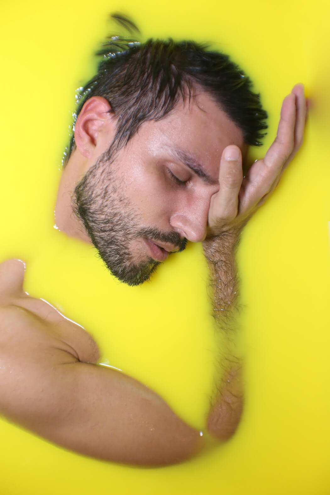 The “paradox of you” is a photography project that Yiannis Ampatziadis developed in 2019. The main idea is to use coloured water to detach the body from the head, thus creating a fragmented image of the whole. Together with curator Ioannis Argyris, they developed a conceptional world of the men that they photographed.