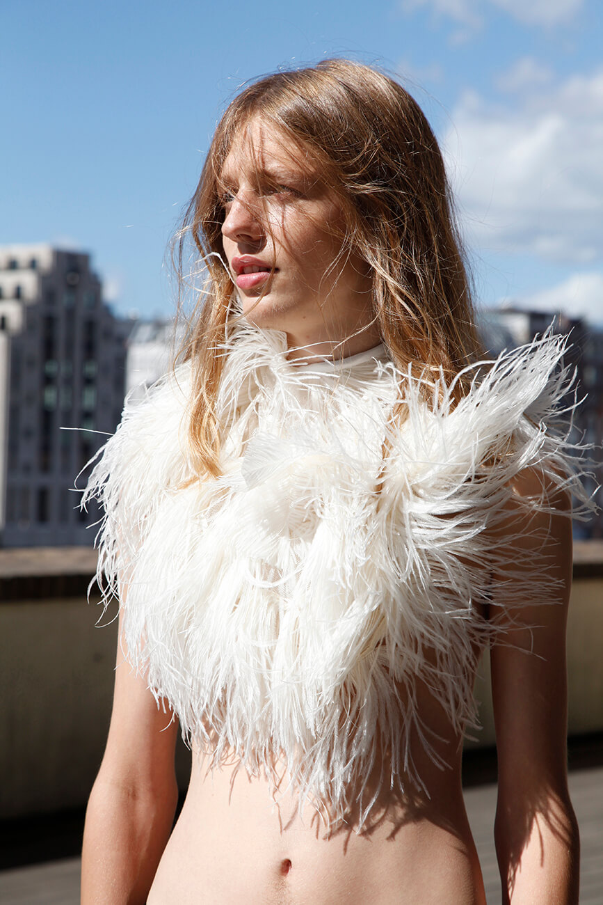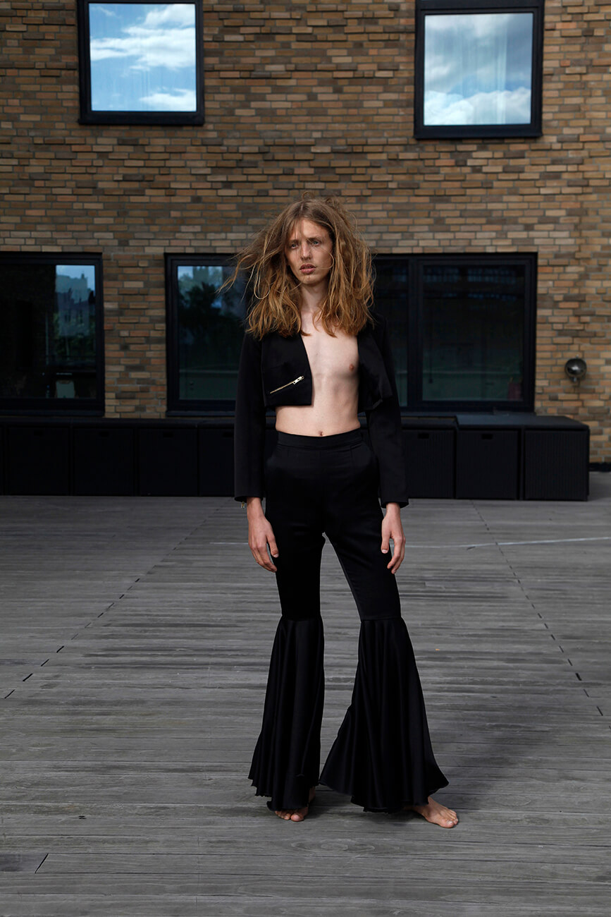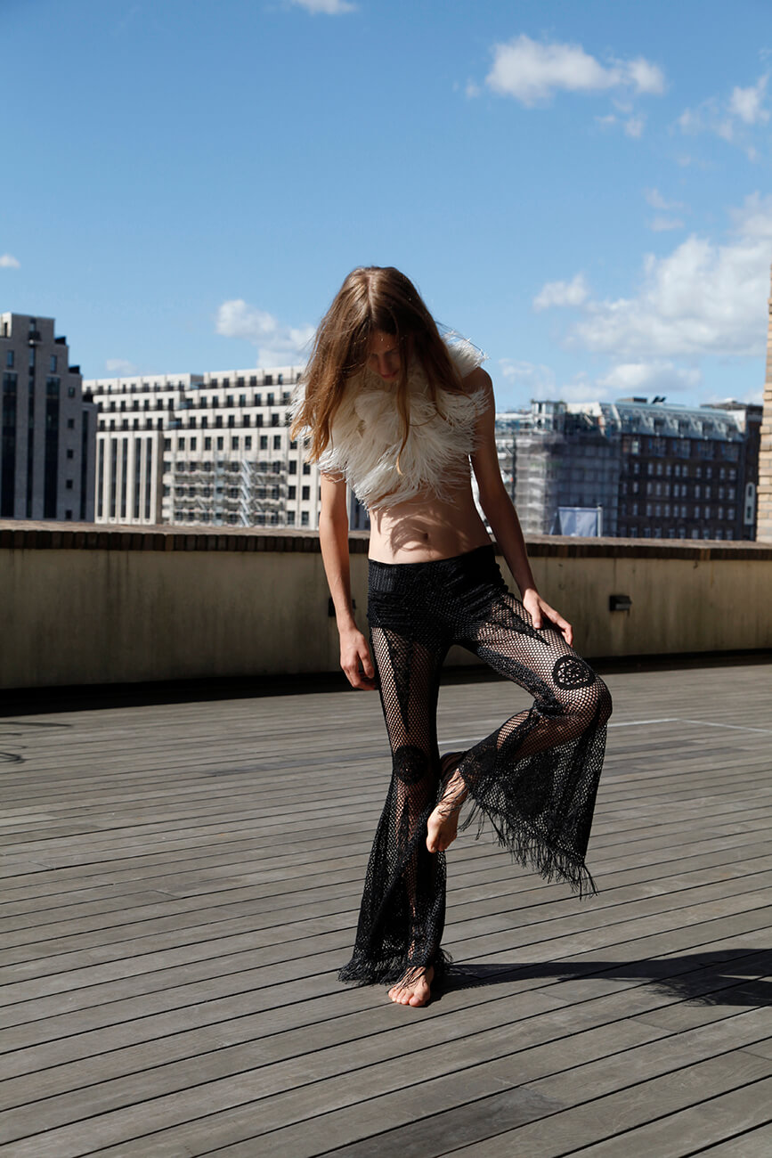 A KALTBLUT exclusive. Photography by Marion Schult. Production Tarek Noor. Models are Sascha @ Izaio Models and Model Jennifer @ M4 Models. Styling Krzysztof Komorowski. Makeup by Lony Rell and Miriam Guenther. Hair by Lukasz Michalak. Location nhow Hotel Berlin. Brands are All Balushe Couture Basic´s, Maisonnoée, Thomas Hanisch, Diligent , Quadrat Shop, Konstantin Starke, Andrea Puccini.