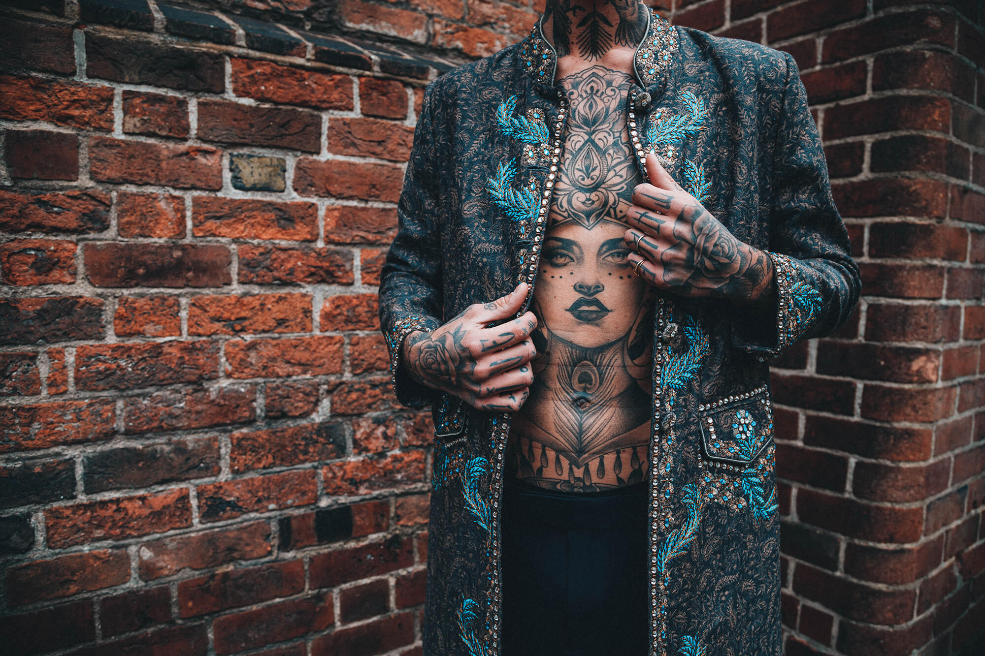 A KALTBLUT exclusive male model feature. Photography & Styling by Tina Dubrovsky. Model is Til signed at Izaio Model Management. Embroidered jacket by Beatrice Von Tresckow.