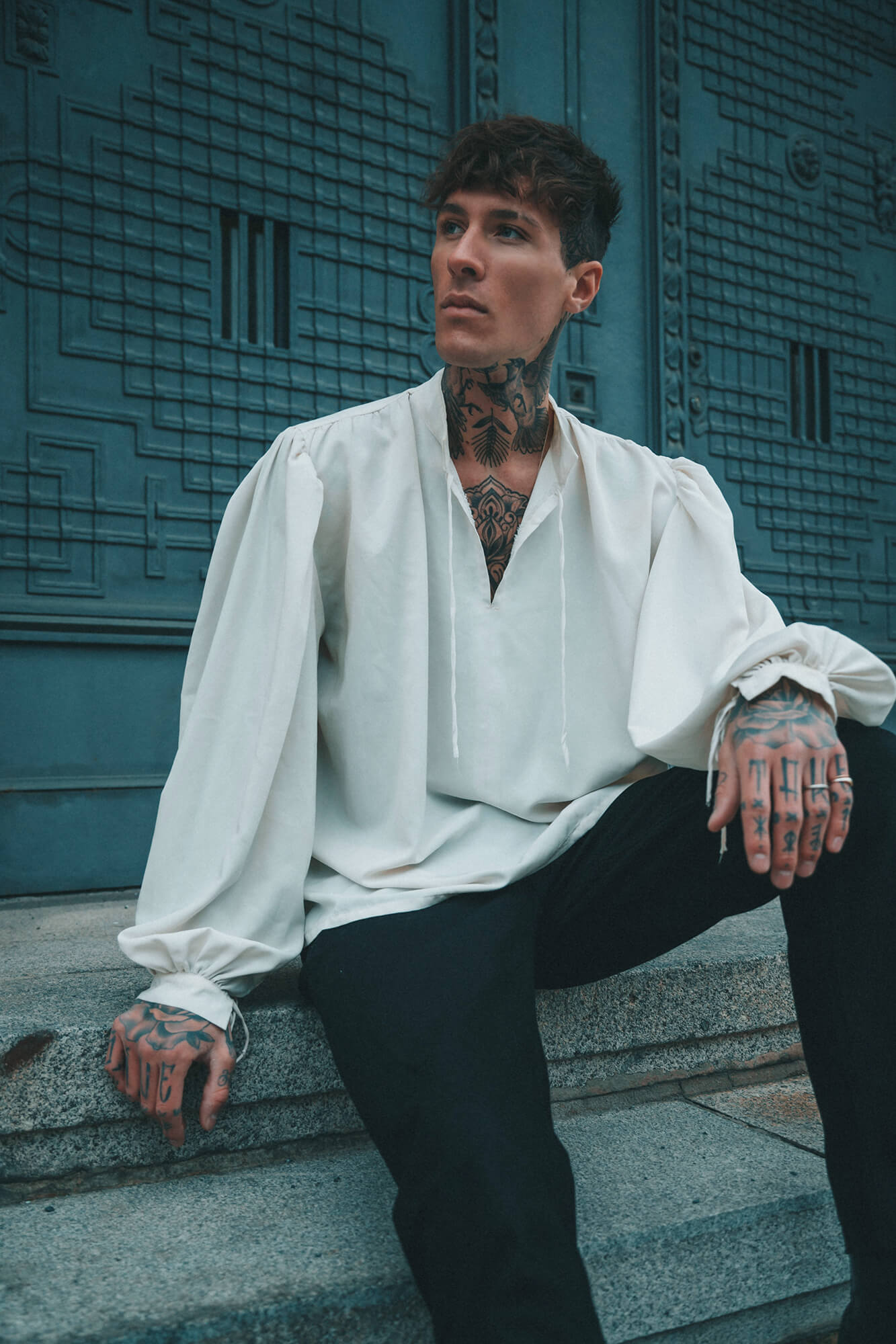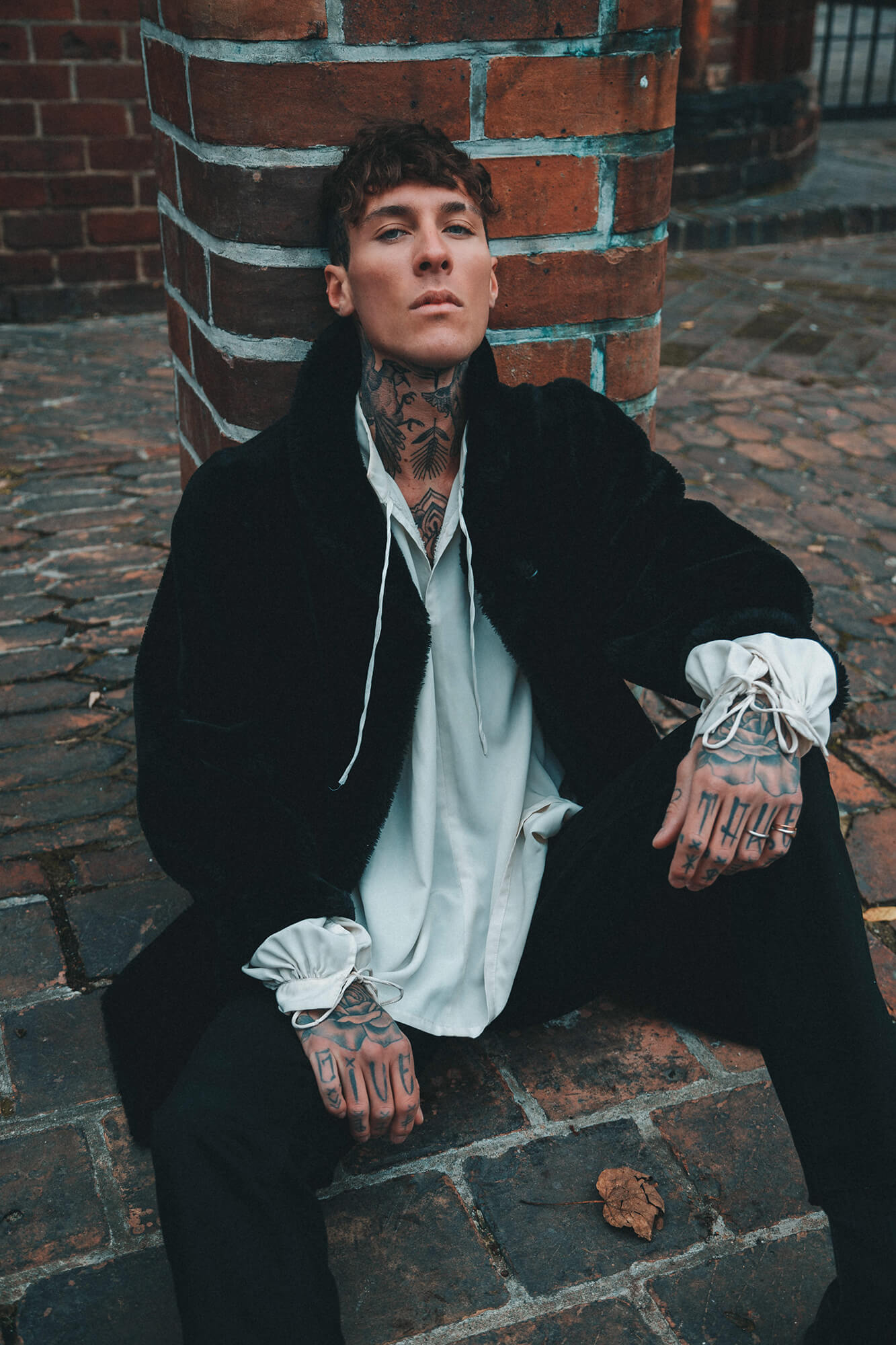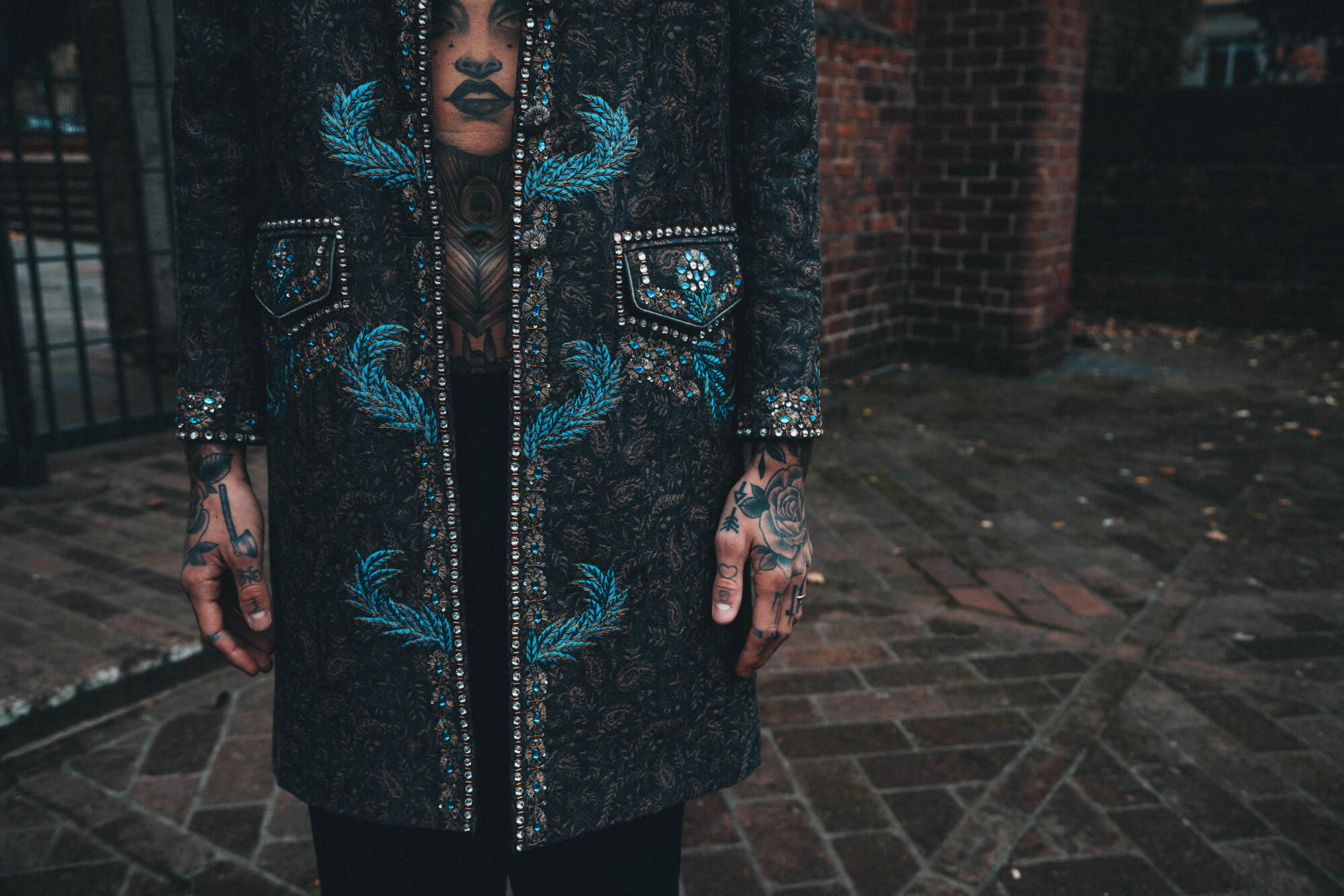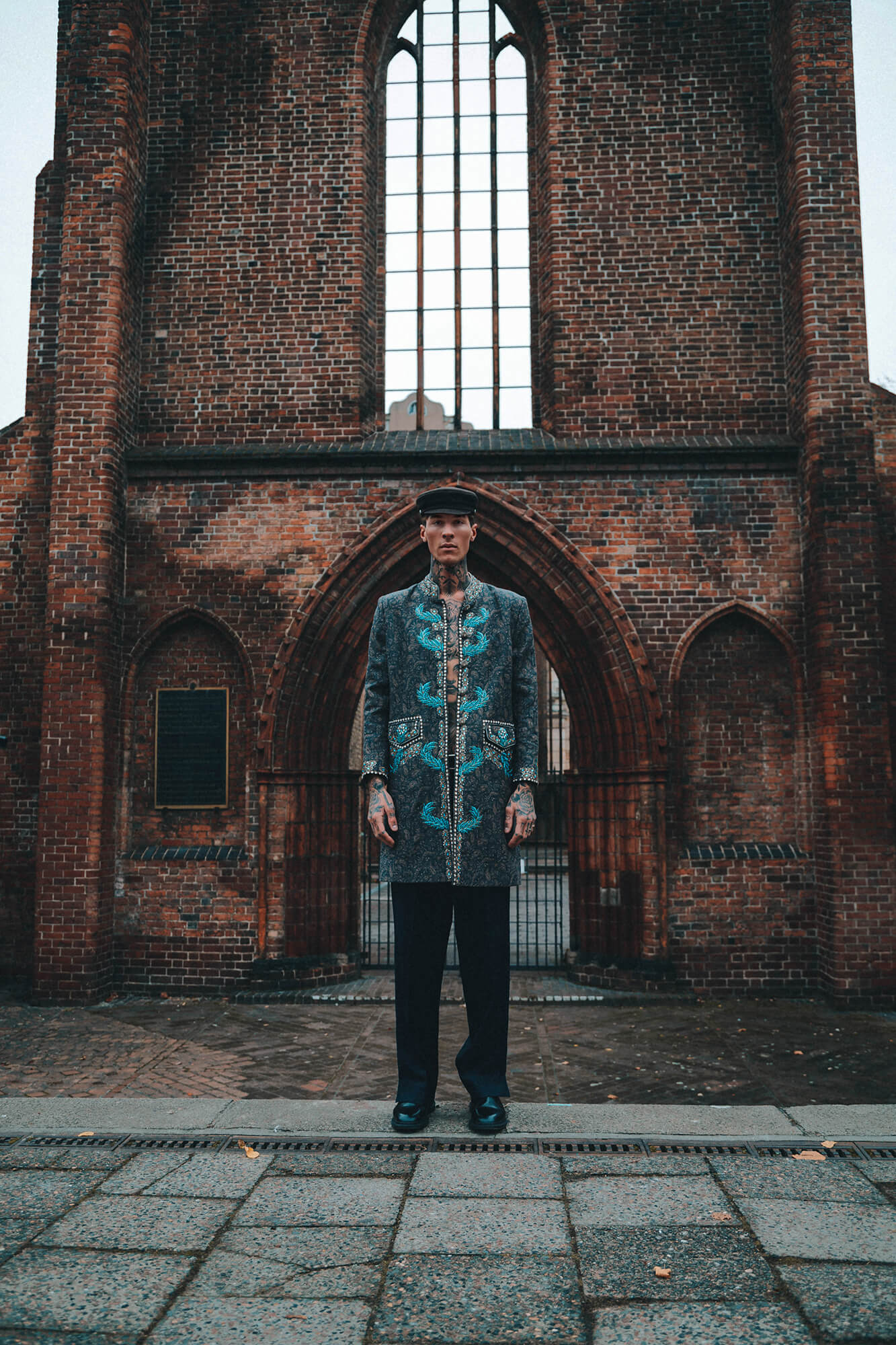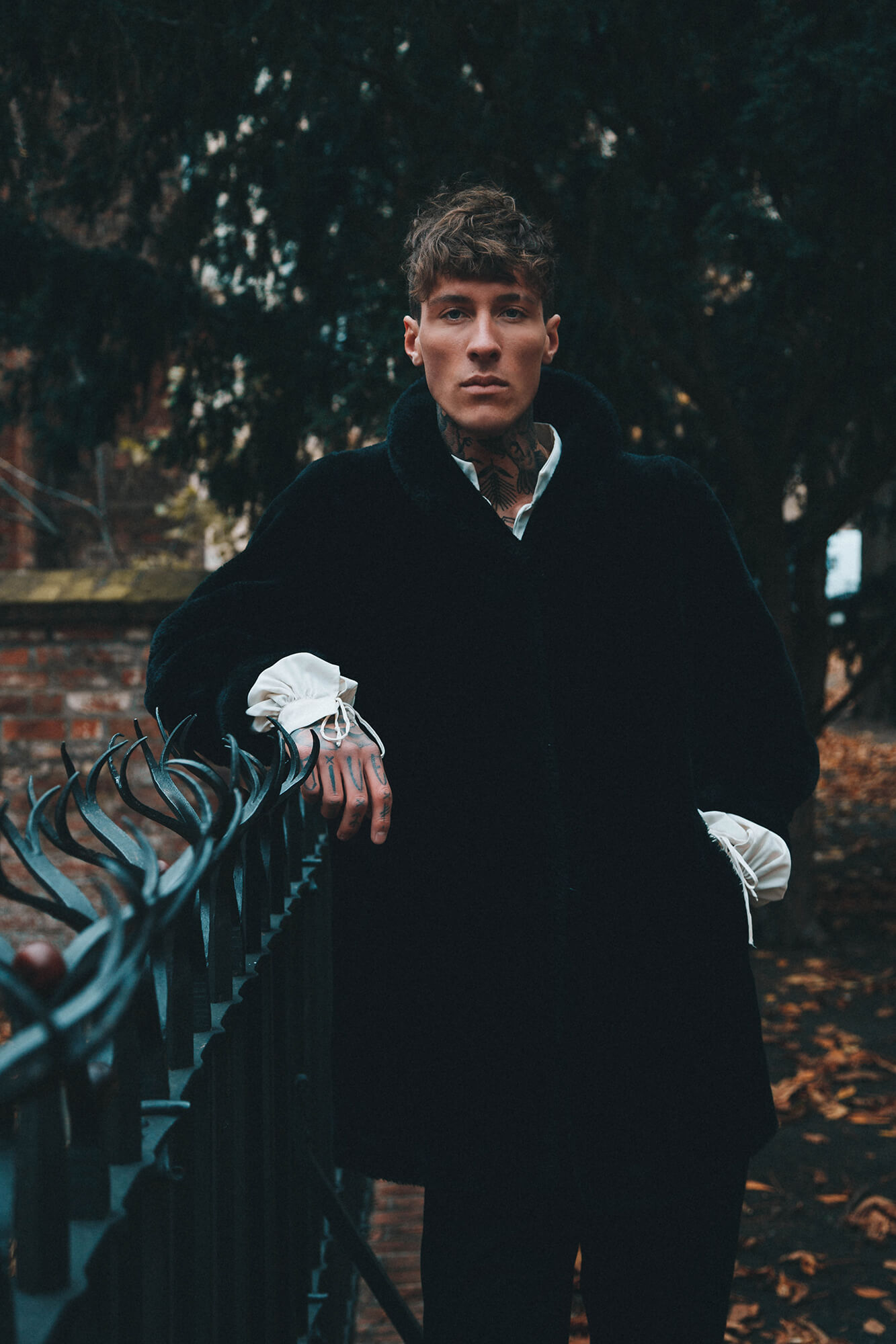 A KALTBLUT exclusive male model feature. Photography & Styling by Tina Dubrovsky. Model is Til signed at Izaio Model Management. Embroidered jacket by Beatrice Von Tresckow.