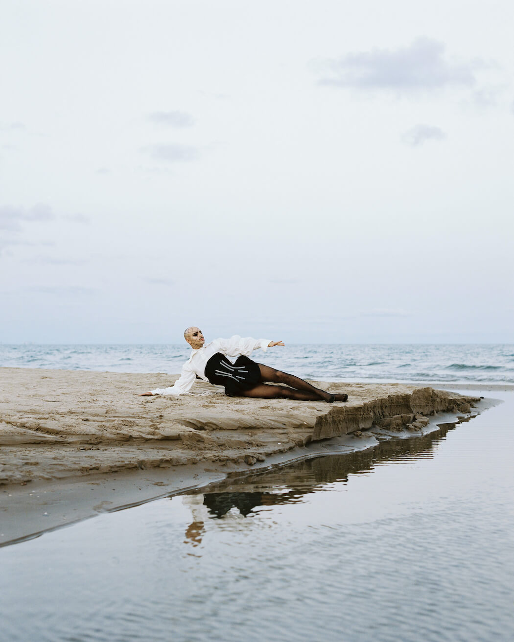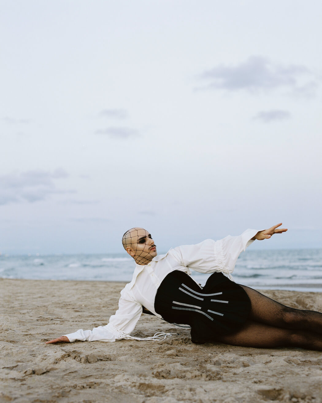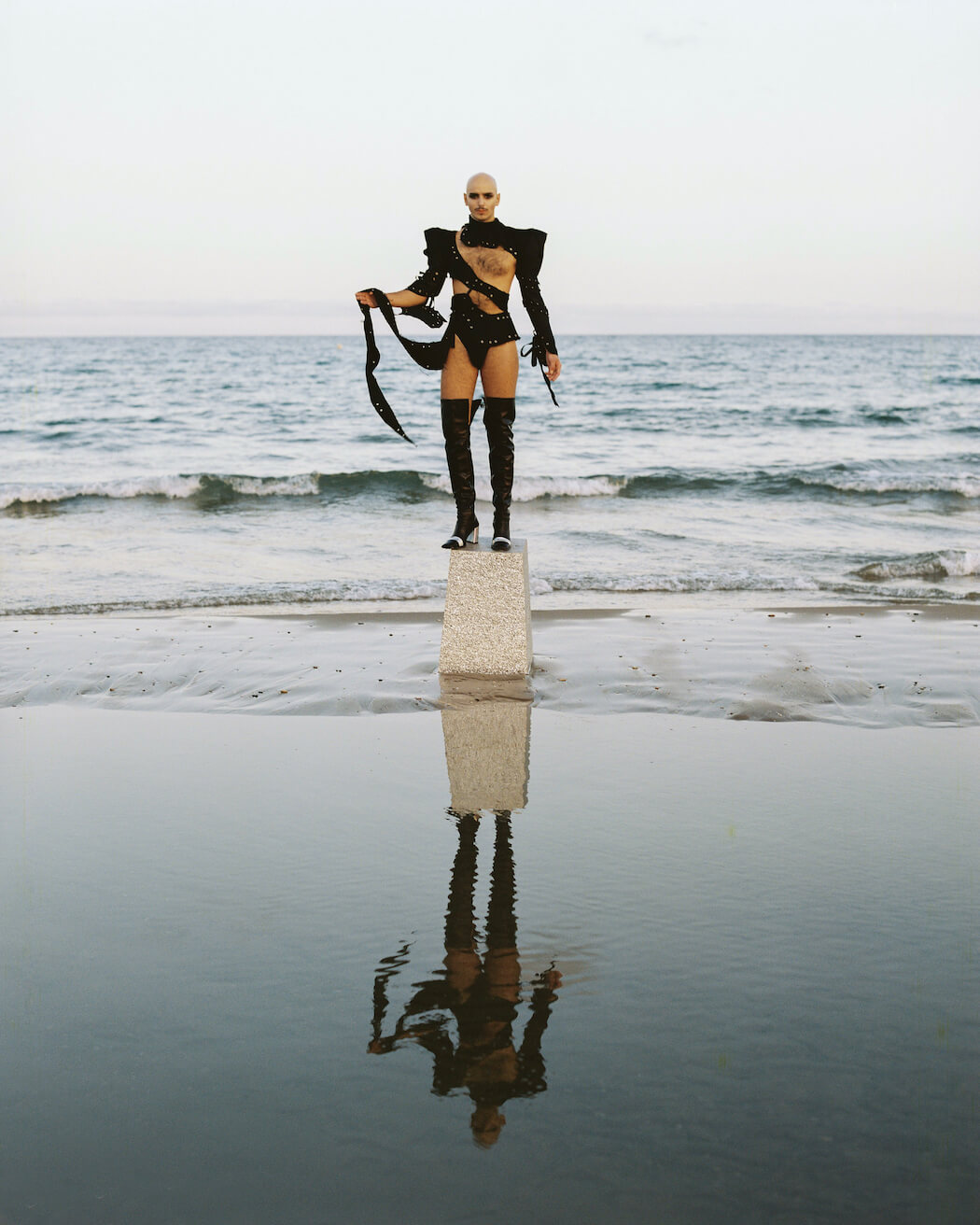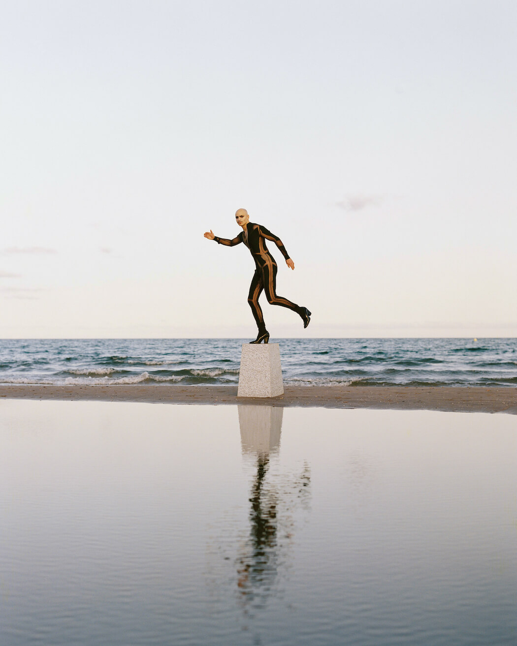 The reflection of the sculpture is an editorial project that combines the mind and figure of the creative director and multidisciplinary artist Eduardo Jairycovich with the analogical vision of the French photographer Moonkiid. Inspired by mythological figures like Pygmalion and Galatea, the story behind these pictures talks about how an inanimate sculpture comes alive and starts moving until it finally meets the sea and nature. Eduardo and Moonkiid use the reflection of Valencia’s waters, in Spain, almost as if it was a mirror where a young Narcissus would look into to end up falling in love with himself. All this synergy reflects on crucial aspects such as overcoming shyness, acceptance and self-esteem.