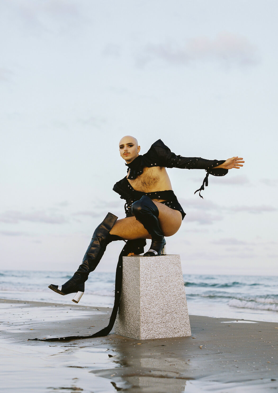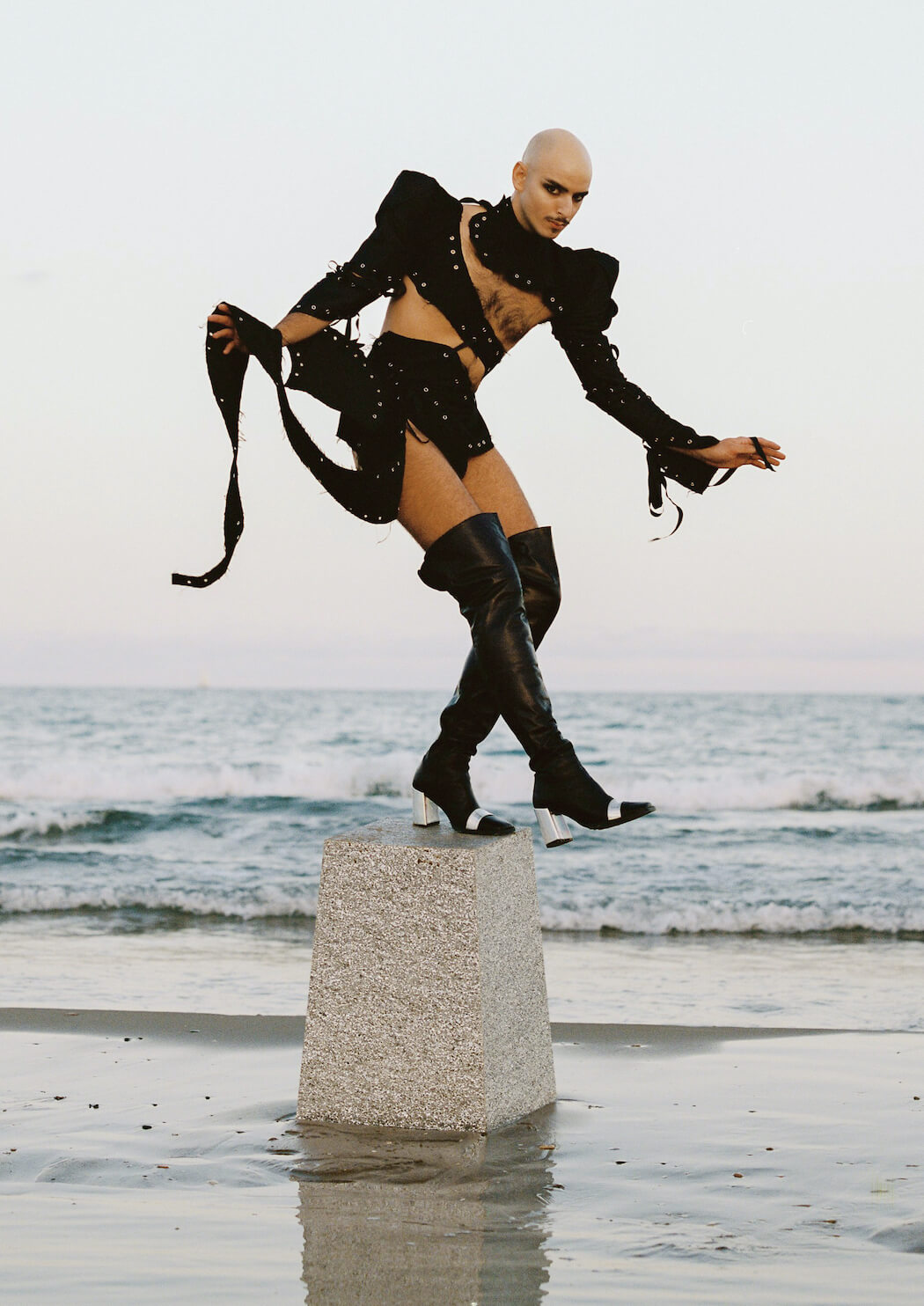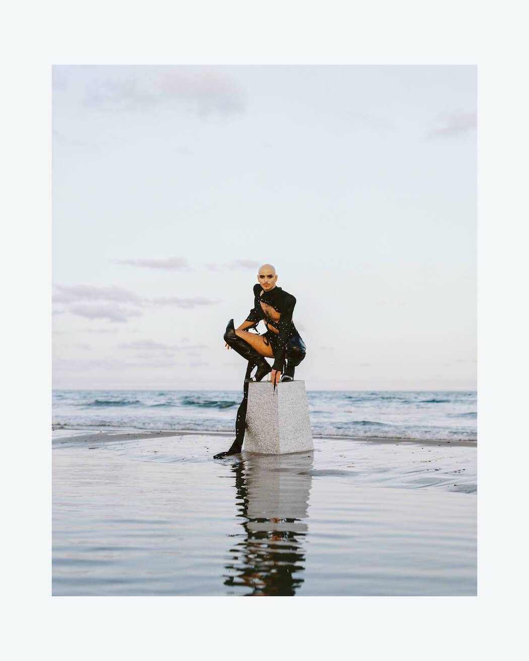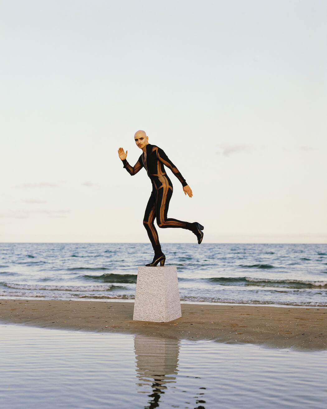 The reflection of the sculpture is an editorial project that combines the mind and figure of the creative director and multidisciplinary artist Eduardo Jairycovich with the analogical vision of the French photographer Moonkiid. Inspired by mythological figures like Pygmalion and Galatea, the story behind these pictures talks about how an inanimate sculpture comes alive and starts moving until it finally meets the sea and nature. Eduardo and Moonkiid use the reflection of Valencia’s waters, in Spain, almost as if it was a mirror where a young Narcissus would look into to end up falling in love with himself. All this synergy reflects on crucial aspects such as overcoming shyness, acceptance and self-esteem.