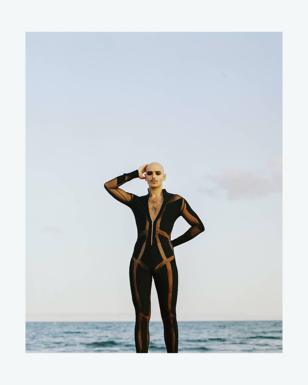 A KALTBLUT exclusive. Photography by Moonkiid. Model, art direction and styling by Eduardo Jairycovich. Make up by Almudena Traver. Fashion Brands are Yvan Andreu, Judith Casasús, Garhés Studio.
