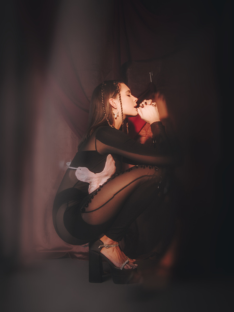 “Party with a Monster” is her femme fatale comeback as a recording artist and the song encompasses this powerful feeling. It is a story of a girl wanting to party with a monster. The duality of the monster is interesting because not only is the monster representing the dark side of herself, the temptation, seduction, and toxicity, which everyone holds within them yet doesn’t wish to admit…
