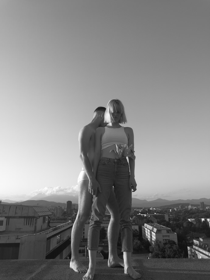 Zupanov is fashion and portrait photographer based in Ljubljana. The following photo serie was made with two friends of his, Lin and Nina, on friend’s rooftop below Ljubljana’s castle. They all got cosy and close to each other so there was no hesitation when going nude and turning the spectacular view of the city into the youthful careless summer story with it’s touch of erotica.